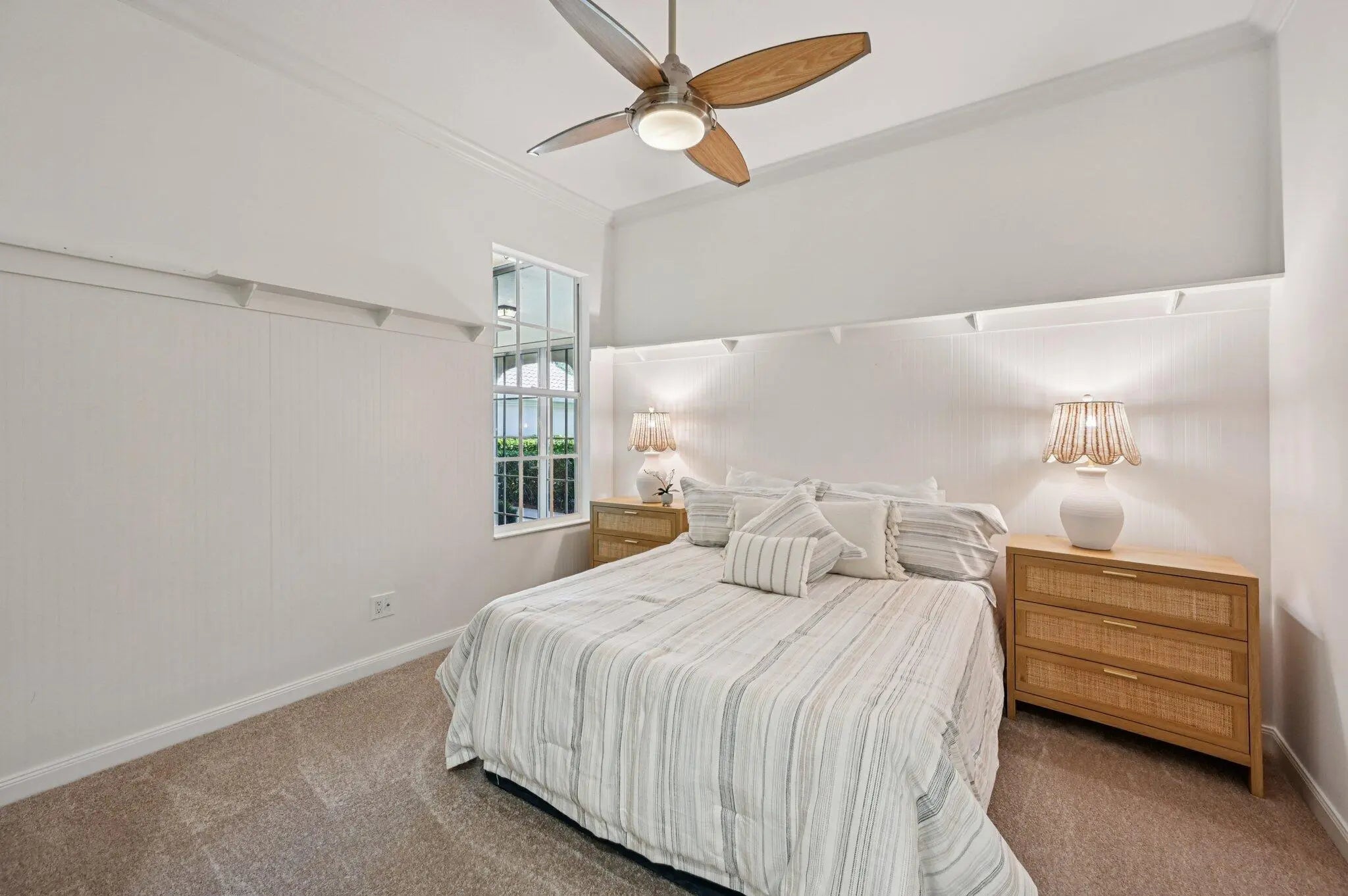 Single-story DiVosta-built CBS home in the gated Carleton Oaks community, Palm Beach Gardens. Offering 4 bedrooms, 3.5 baths, just under 2,500 sq ft on a premium lot directly across from community amenities, no neighboring home on one side for added privacy. Highlights include full accordion shutters, split floor plan with 12-foot ceilings, fireplace, remodeled kitchen (2021) stainless steel appliances, his-and-her bathroom with primary bath renovated (2024), HVAC system (2025), new lighting, paint, and carpet (2026). Outdoor living features a screened, heated pool with southwest exposure, covered lanai, partial impact, accordion hurricane protection, & two-car garage with built-in storage. Community amenities include a resort-style pool, pickleball, tennis, basketball, and shuffleboard.