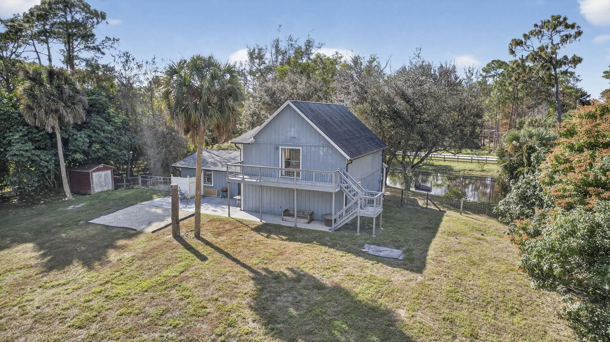 Versatile two-story home on a beautiful, fully fenced lot just minutes from town and located off a paved road. Features include a 2021 roof, less than 2-year-old A/C and water heater, upgraded well system, and upgraded range. The main home offers a great layout with 2 bedrooms and 1 bath downstairs, plus an upstairs primary suite, bath, and loft with closet ideal as a 4th bedroom or flex space. The detached garage is set up as an additional 1 bedroom plus 1-car garage and could easily convert to a 2/1 in-law suite, rental, or man cave. Enjoy a private pond on entry, an amazing yard with room for a pool, and endless potential. Perfect blank slate to remodel and make your own...won't last at this price.