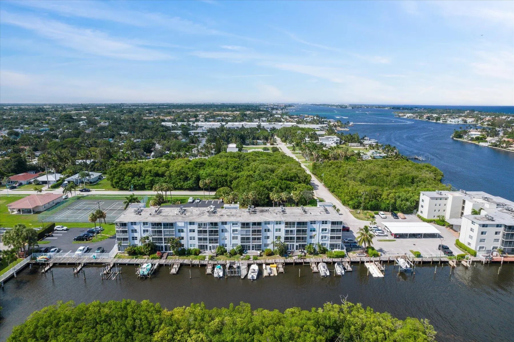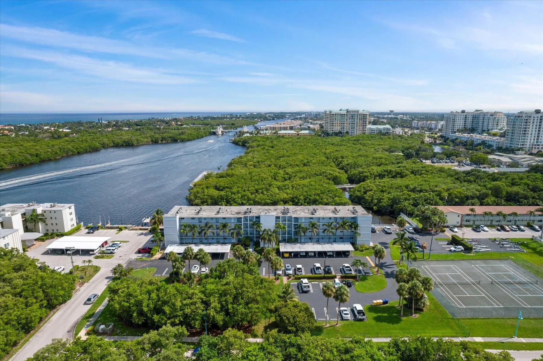 Indulge in luxurious penthouse living with mesmerizing views of the intracoastal in this sophisticated 2 bed, 2 bath condo. This exclusive residence offers a rare 36.7 FT BOAT SLIP! Nestled on the top floor of the Harbour Hall building in East Boynton Beach, this corner unit boasts an open-concept layout, meticulously updated kitchen and bathrooms, chic tile floors, a spacious walk-in closet, and the convenience of a washer and dryer within the unit. Enjoy proximity to the beach, waterfront dining, and just a short drive to the vibrant Atlantic Ave in Delray Beach. Experience the thrill of a quick boat ride to the Boynton Inlet with no fixed bridges. The condo also includes a covered carport space for your convenience. Enhance your daily routine with community amenities such as an elevator, boat dock, inviting pool, and tennis courts. Water is included in the rent, offering you a worry-free lifestyle. Elevate your living experience - this is waterfront living at its finest!