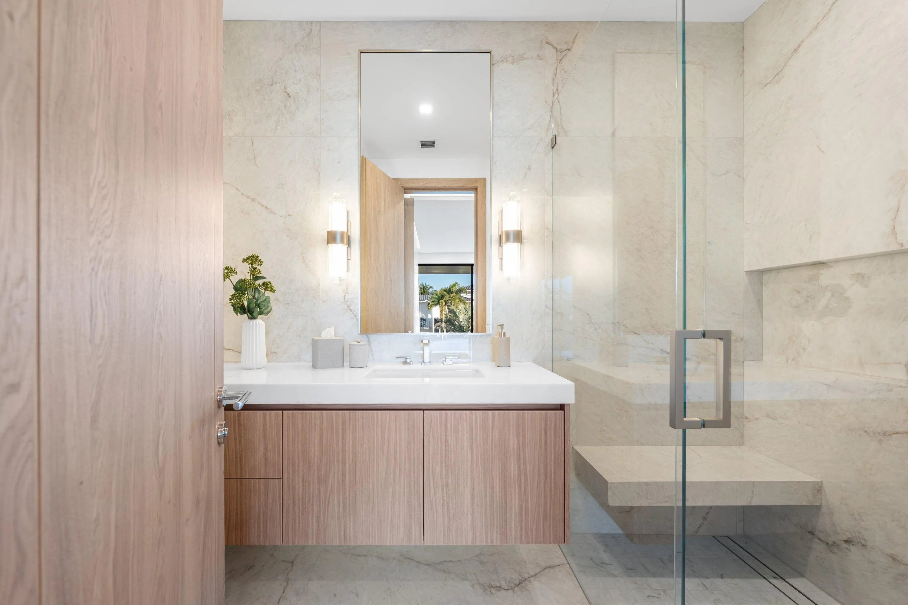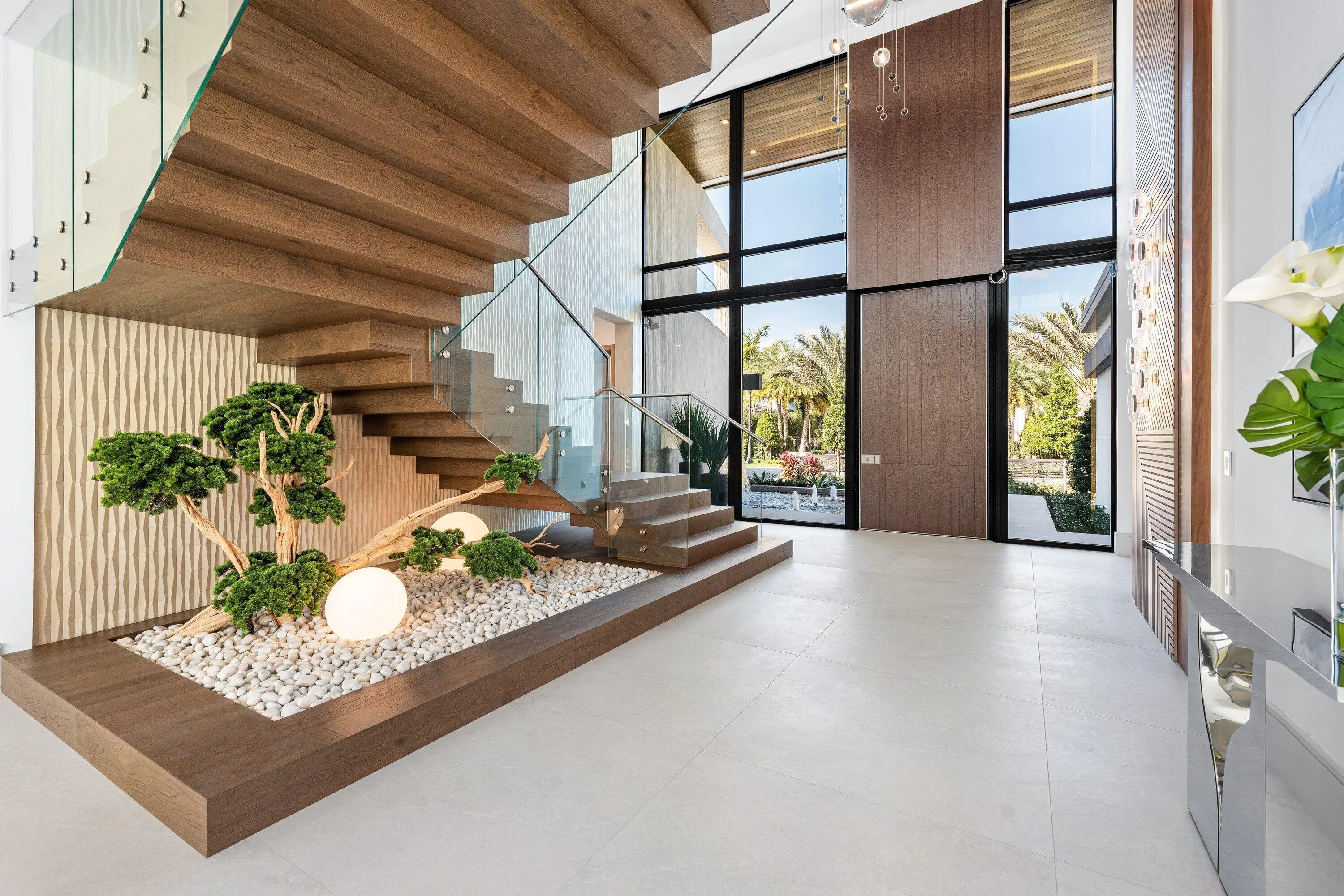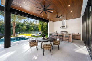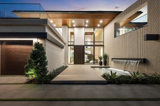 Set along 100 feet of pristine waterfront in Royal Palm Yacht & Country Club, this extraordinary residence is perfectly positioned across from the preserved natural sanctuary of Capone Island—an undeveloped mangrove island that provides enduring privacy, lush green vistas, and a rare sense of calm. The setting is remarkably serene, offering a waterfront perspective defined by nature rather than neighboring homes. Constructed by Albanese Builders and exquisitely designed and furnished by BE Designs, the home reflects a level of craftsmanship and intention seldom achieved. Spanning 8,993.70 square feet under air and 11,633.04 total square feet, the residence is introduced by soaring ceilings and a grand, wide staircase that immediately establishes architectural presence. The fully concrete second level underscores the home's structural integrity and enduring quality. Seven bedrooms and nine-and-a-half baths are arranged with equal attention to scale and intimacy. A refined club room with custom bar and pool table transitions seamlessly into a glass-enclosed office, creating a dramatic yet functional environment. At the heart of the home, a double-island chef's kitchen is appointed with top-of-the-line Miele appliances and complemented by a discreet butler's pantry, designed for both elevated entertaining and everyday living. Two laundry rooms provide thoughtful convenience. Materiality defines the interiors. Italian porcelain accent walls, a striking marble fireplace, and decorative fireplaces throughout elevate the architectural language, while sculptural water featuresboth at the entry and cascading beside the resort-style poolcreate a sense of movement and tranquility. An outdoor firepit anchors the exterior living spaces, while electric shades throughout the home ensure effortless comfort and privacy. The residence is further distinguished by bespoke furnishings from Covet House, curated to harmonize with the home's architecture and elevate each space. A four-car garage with a separate golf cart entry completes the offering. Rare in its setting, exceptional in its execution, and uncompromising in its finishes, this is a truly one-of-a-kind waterfront estatedefined by serenity, sophistication, and architectural distinction. Square footage, room sizes, and dimensions are approximate and derived from builder plans, architectural drawings, or estimates. Actual measurements may differ due to construction variances. Buyers must verify all information, measurements, and specifications to their satisfaction.