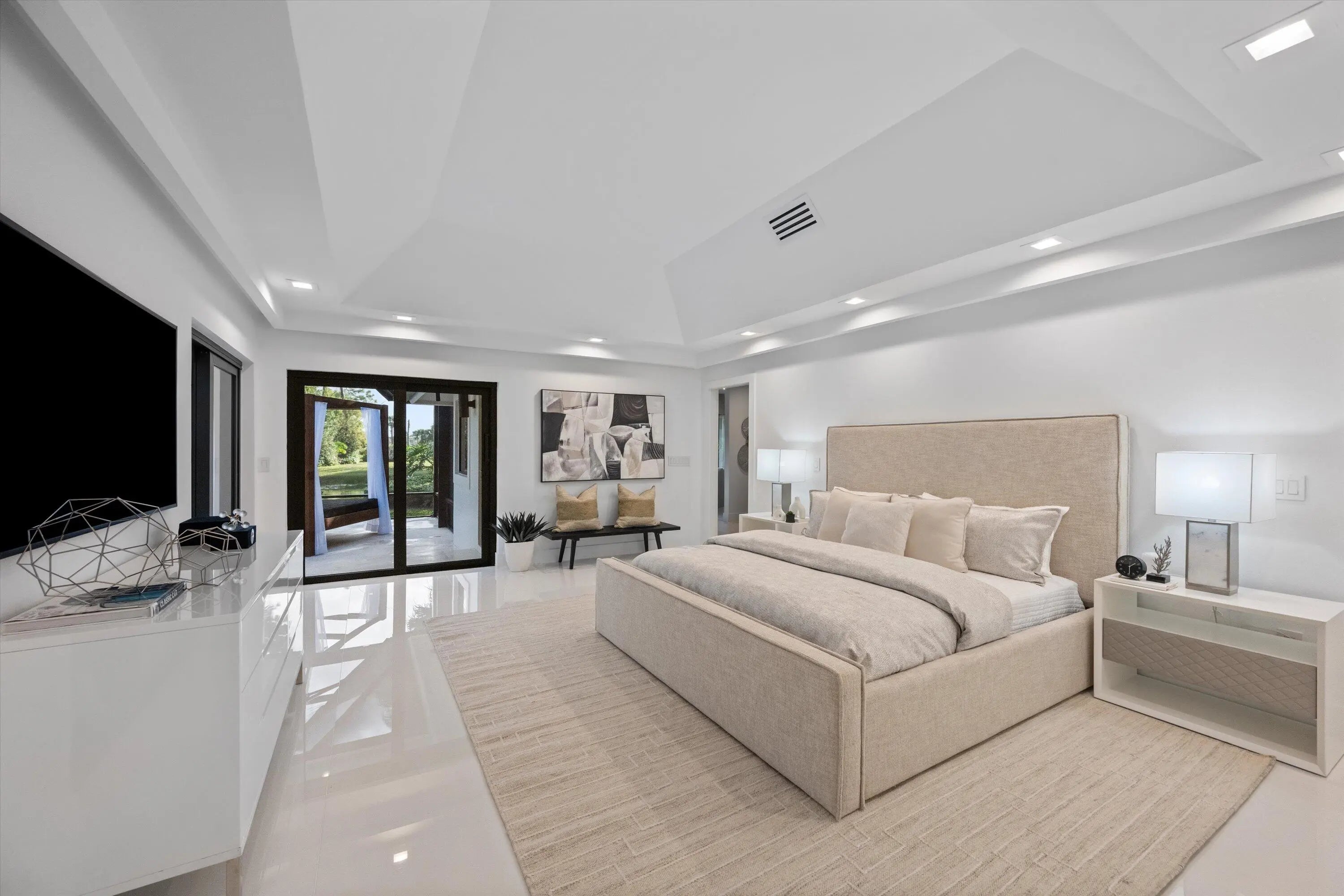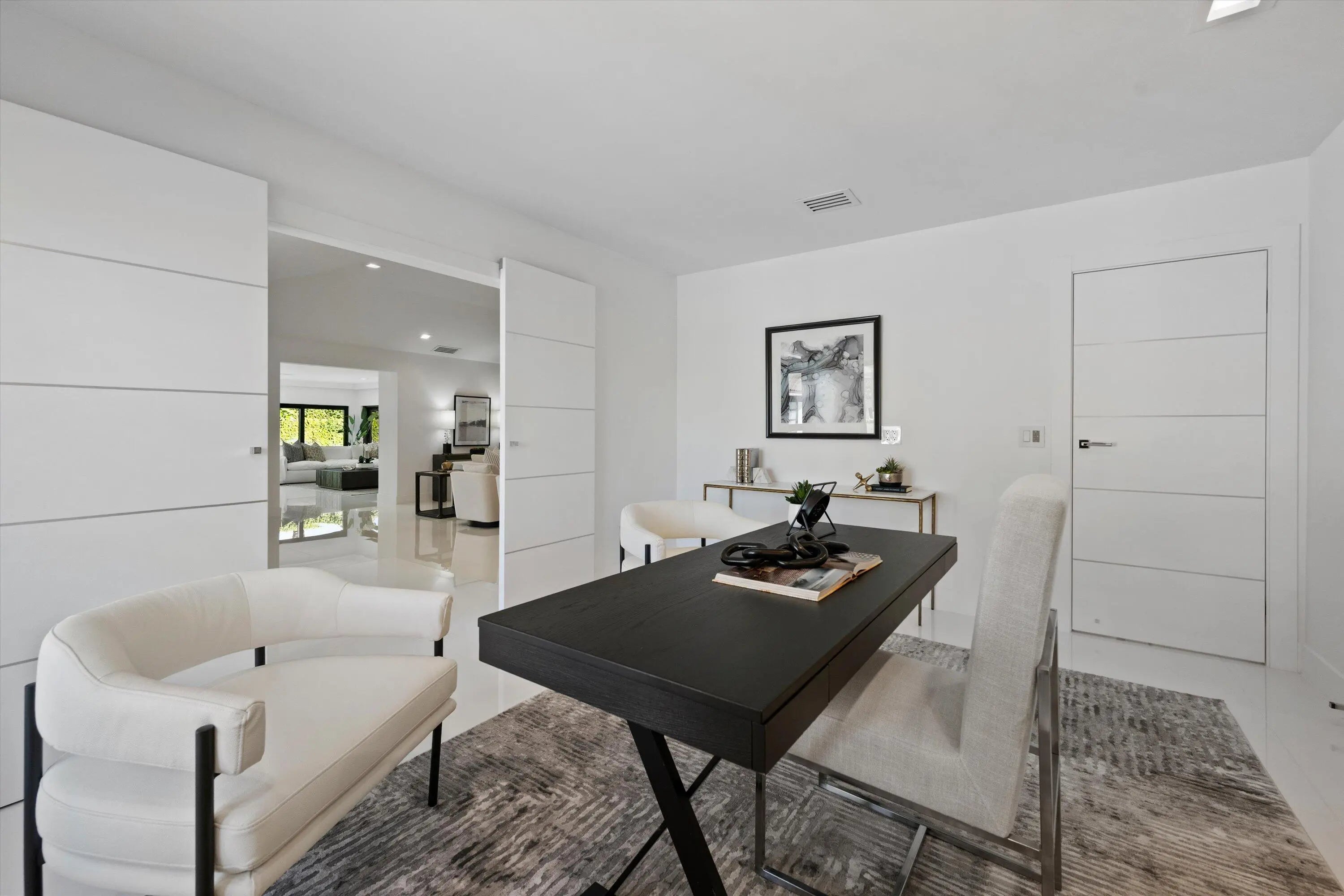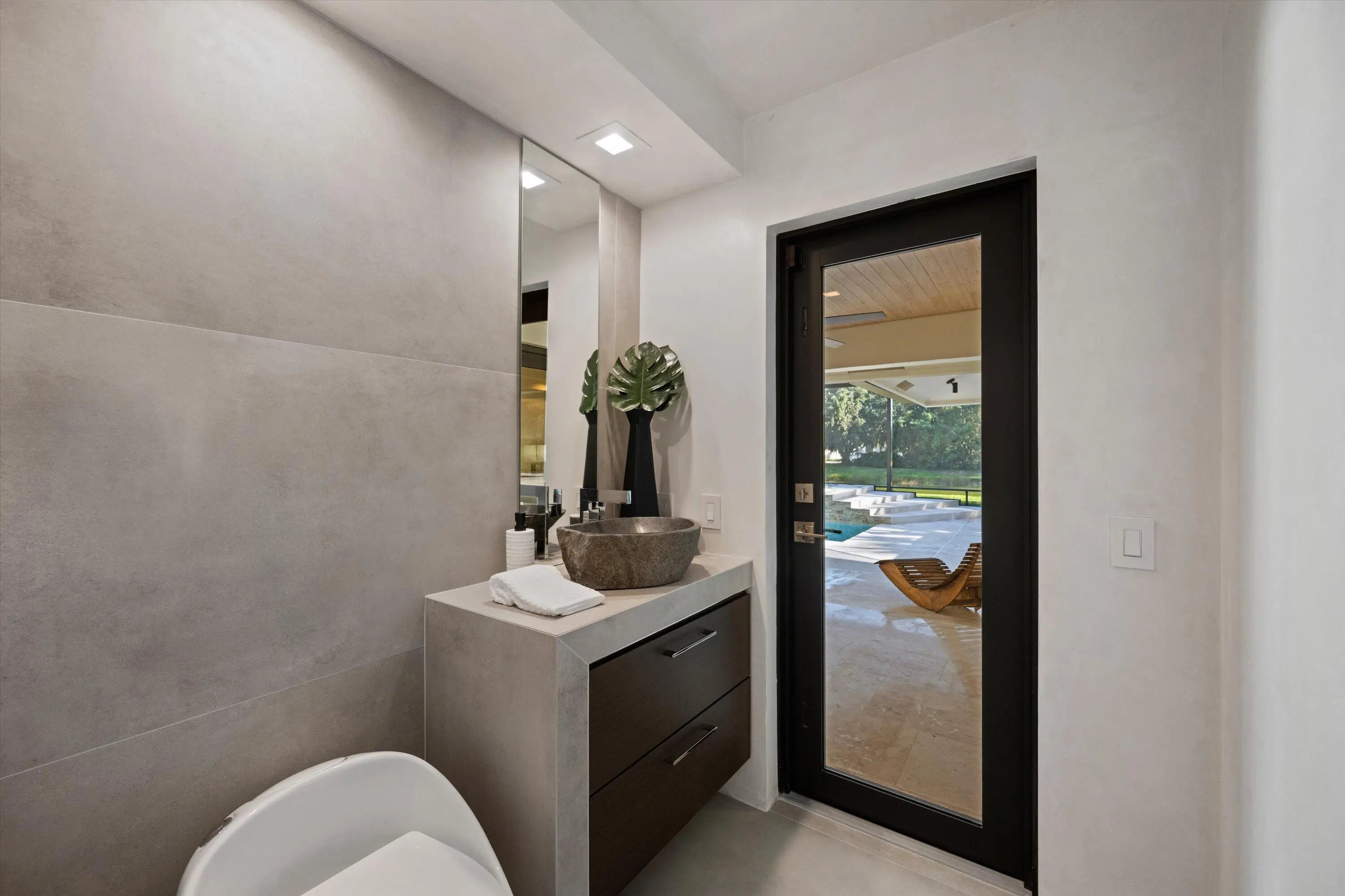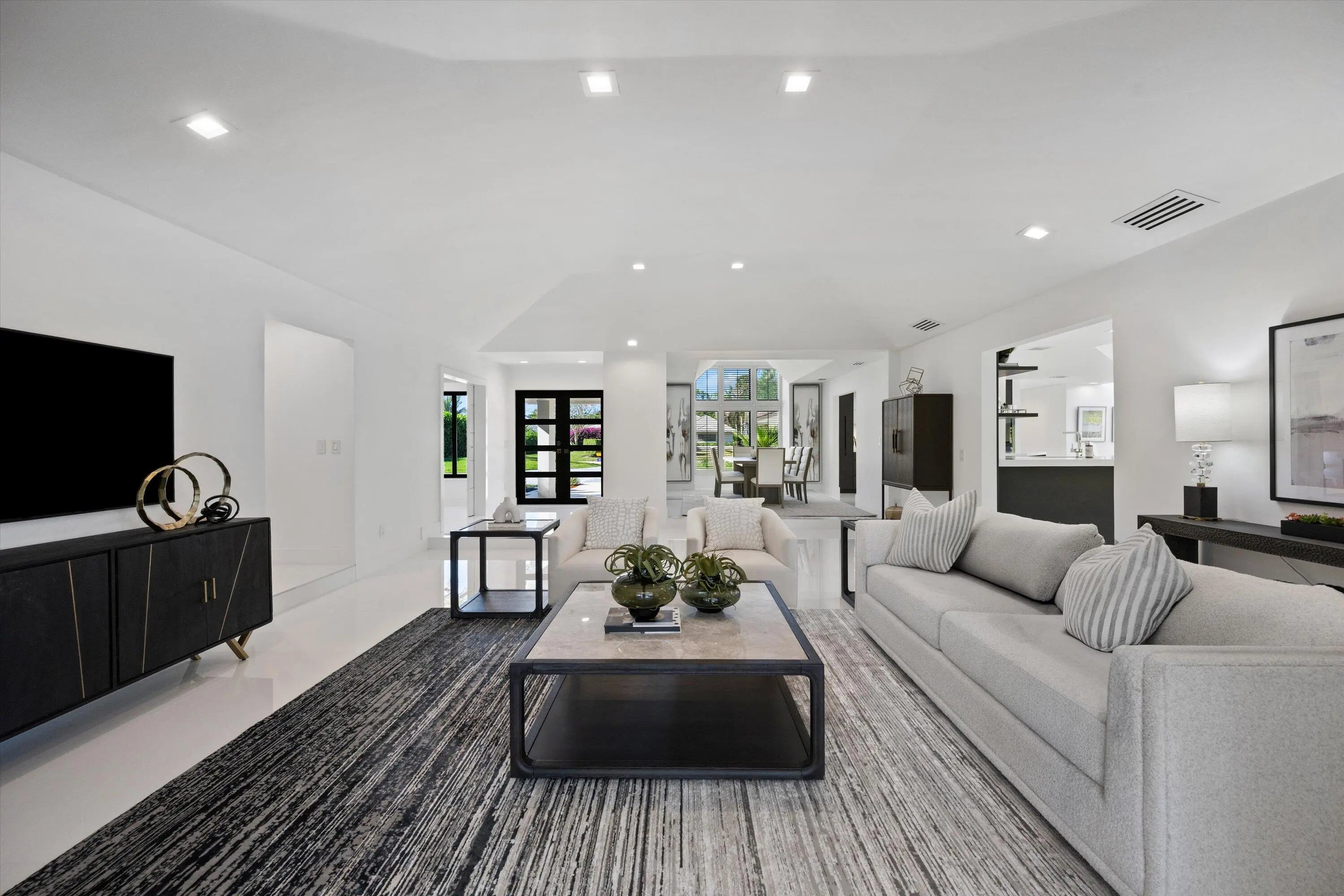 This one of a kind custom estate home in Breakers West Country Club in West Palm Beach is perfect blend of clean architectural lines, premium finishes and exceptional craftsmanship. This immaculate home boasts 4 Bedrooms + separate Office, 4 Full Baths and 2-Car + Golf Cart garage. Situated 0.55 acre lot, the design takes in the scenic lake and golf course views beyond. Thoughtfully renovated over the past 5 years this sophisticated, warm modern home features custom European cabinetry and Italian tile flooring throughout. The outdoor entertaining space reflects the same clean aesthetic with new Clear View screen enclosure, modern travertine patio deck, raised spa with waterfall overflowing into the pool and the tasteful Buddha sculpture as the focal point in your modern Florida retreat. Additional important features include: Commercial grade hurricane impact windows and doors (2021); New clay tile roof and new commercial grade flat roof, both with transferable warranty (2019); Pool/patio/screen remodel (2019-2021); Smart Home doorbell, smoke detectors and thermostats (2022); Water Heater (2023). And so much more!! Breakers West is a unique country club community where club memberships are NOT mandatory. Residents have the choice of Golf or Sport/Social memberships at Breakers West which includes golf at the Breakers West Rees Jones Course, tennis, pickleball, pool, gym, Kid's Club with playground as well as use of The Breakers Beach Club and Rees Jones Ocean Course in Palm Beach in the summer months. Also located within the community is Mayacoo Lakes Country Club with its renowned golf course, tennis facilities, pool and clubhouse dining with memberships available for separate purchase. Breakers West offers an unparalleled lifestyle within its 670 acres of wooded landscapes, manicured lawns, and two manned guard gates. Is conveniently located to PBI Airport, downtown West Palm Beach's new "financial district" and over the bridge to Palm Beach with its fabulous dining options and Worth Avenue shopping. Also convenient to Wellington's world-class equestrian amenities. Great private schools in West Palm Beach are nearby such as Oxbridge Academy, The King's Academy, and Rosarian Academy.