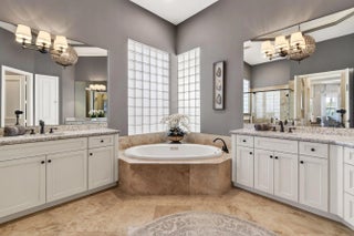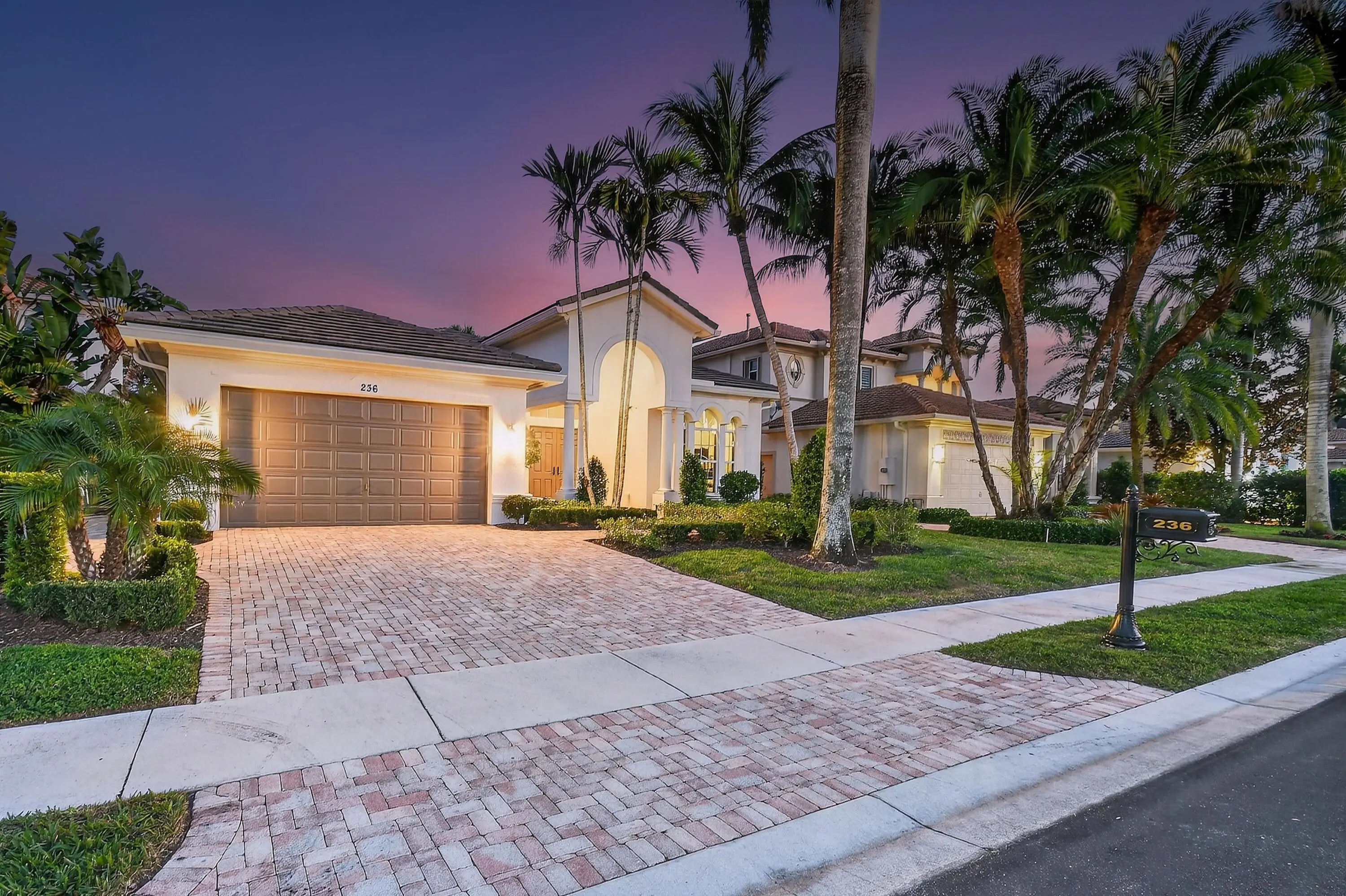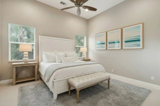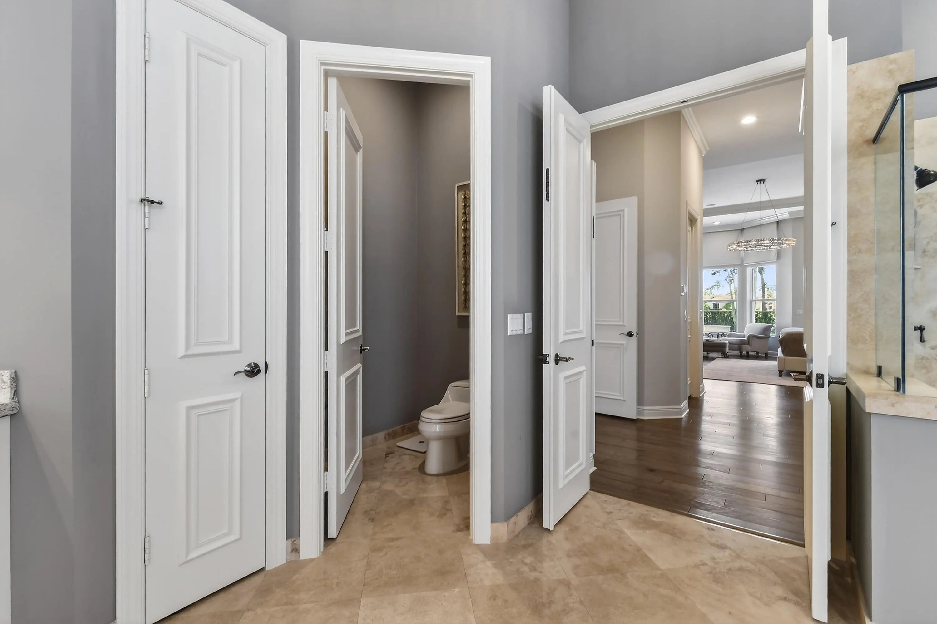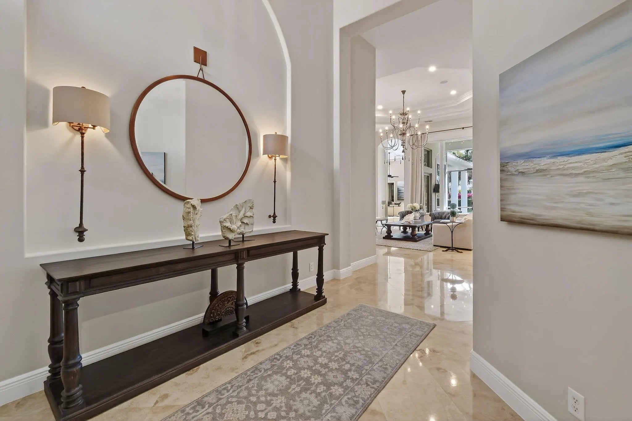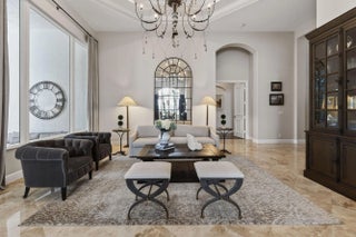 Within the prestigious, guard-gated community of Frenchman's Reserve, this elegantly reimagined single-story residence offers refined luxury, privacy, and timeless architectural appeal. Situated at the beginning of a quiet cul-de-sac on an oversized pie-shaped lot, the home enjoys expanded backyard space and tranquil golf and partial lake views across the 7th and 8th fairways, framed by mature landscaping and soft morning light. Offering more than 3,400 square feet of living space, the residence features three ensuite bedrooms, a dedicated office, and four full baths, all thoughtfully designed for both gracious entertaining and effortless everyday living. A grand foyer opens to expansive living and dining areas with soaring ceilings, elegant archways, marble flooring, custom millwork, recessed lighting, and a statement chandelier. Large windows fill the home with natural light while showcasing views of the pool, backyard, and fairways. These formal spaces transition seamlessly into the family room and the fully renovated chef's kitchen, appointed with quartz countertops, a substantial center island, custom paneled cabinetry, and professional-grade appliances including Sub-Zero and Thermador, along with a U-Line wine cooler and stainless-steel farm sink. The home is tastefully decorated with furnishings from Restoration Hardware, creating a cohesive, elevated aesthetic; select furnishings may be available subject to negotiation. The residence is truly move-in ready. The bedroom suites are thoughtfully positioned for privacy. The primary suite offers serene views, direct pool access, generous walk-in closets, and a spa-inspired bathroom with dual vanities, a soaking tub, and a separate walk-in shower. Each guest suite includes its own private full bath, creating a luxurious experience for family or visiting guests. A fourth full bathroom, conveniently located near the main living area, also serves the pool and entertaining spaces. The outdoor living environment is exceptional, featuring a screened and covered patio with an extended roofline, a heated saltwater pool resurfaced in 2026, and a summer kitchen with Sedona grill--ideal for elevated alfresco dining and entertaining. Notable upgrades include a new roof (2025), impact windows and doors, a Sonos sound system, newer A/C units, EV charger, golf-cart parking and path, an expanded widened paver driveway, fresh exterior paint, attic storage, and garage cabinetry. Residents of Frenchman's Reserve enjoy world-class amenities including an Arnold Palmer-designed championship golf course, a grand clubhouse, fitness center, spa, tennis, dining, and resort-style recreation. A full golf membership is available, offering immediate access to the club's premier golfing and social amenities for those who desire the full lifestyle experience.