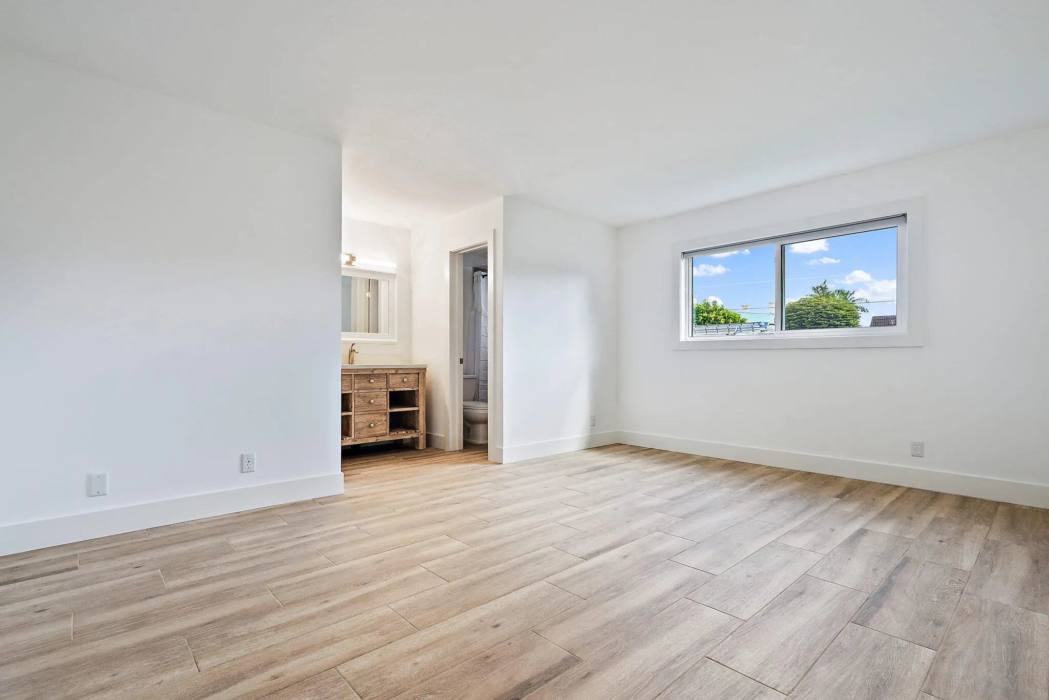 Come see this modern, open floor plan, 3/2 apartment conveniently located in North Palm Beach off Northlake close to US 1. Open kitchen area with room for dining table and washer dryer off kitchen with ample pantry space. Split bedrooms with each room featuring a walk-in closet and large windows for natural sunlight. Both bathrooms are tub/shower combo. Bonus area to right of large living space great for a home office set up or additional seating area. Primary room comfortably fits a King suite. Private balcony. Quaint apartment building with just 8 units and long-term tenants in place. SS Appliances, quartz countertops and wood look tile throughout. Available 3/1.