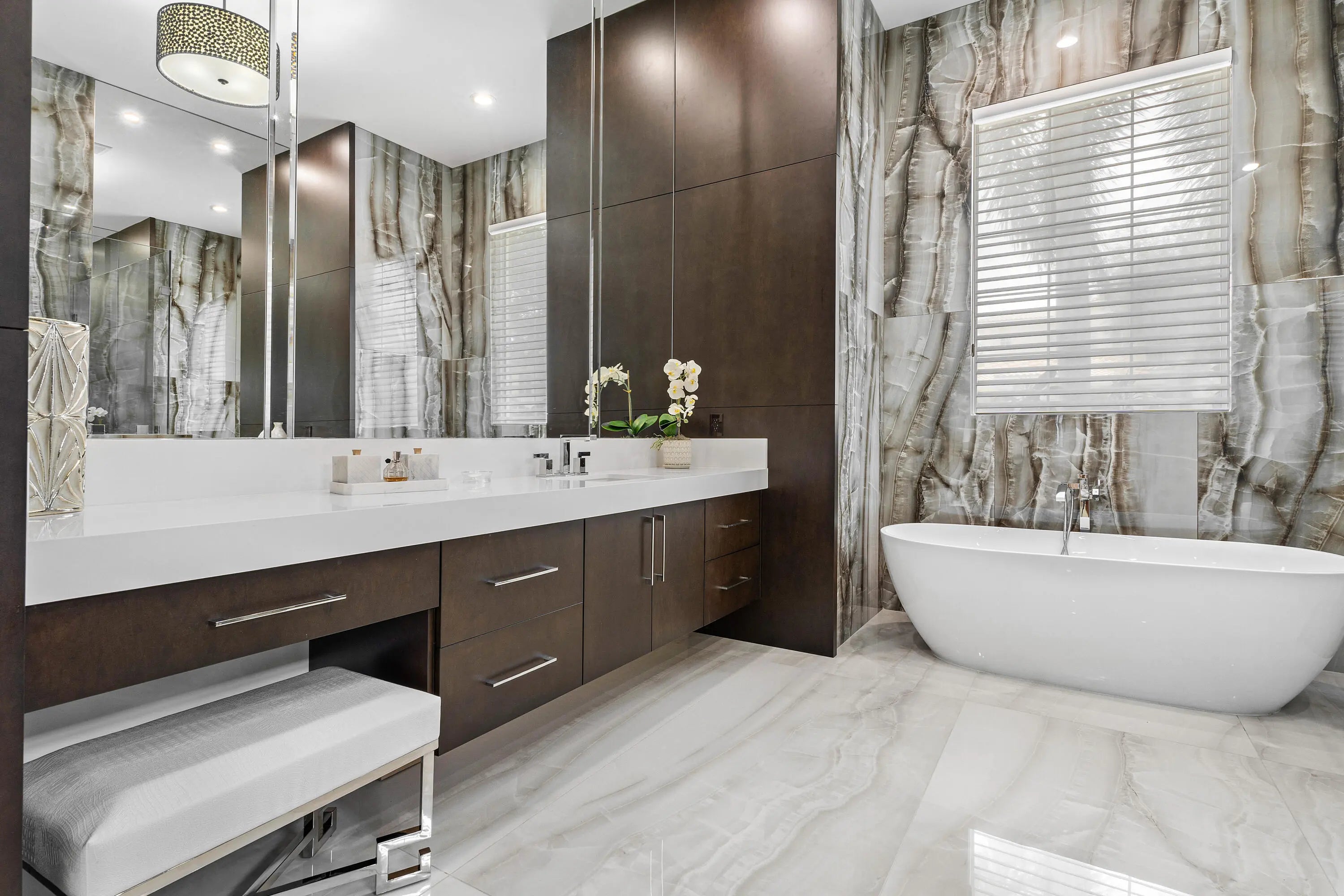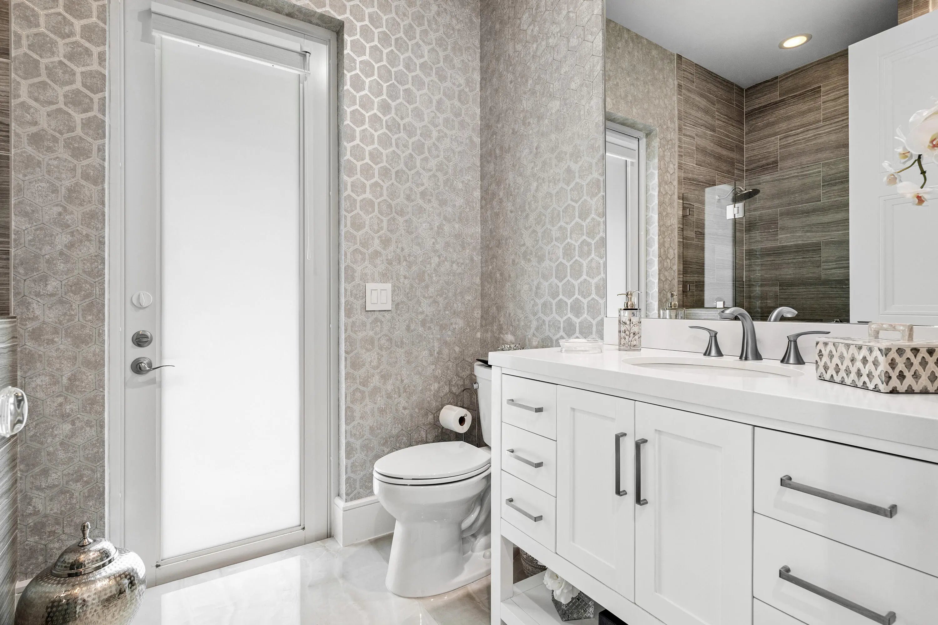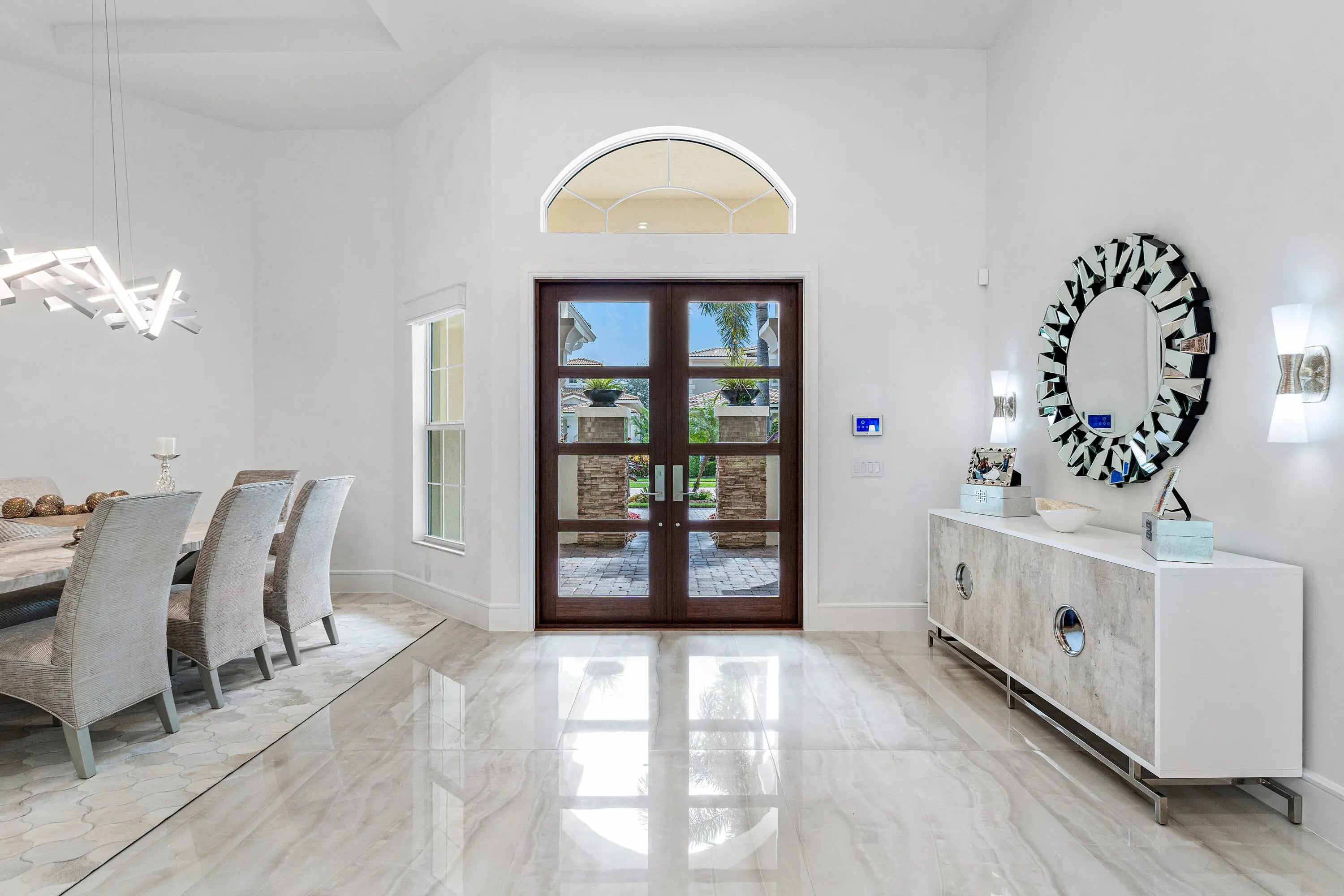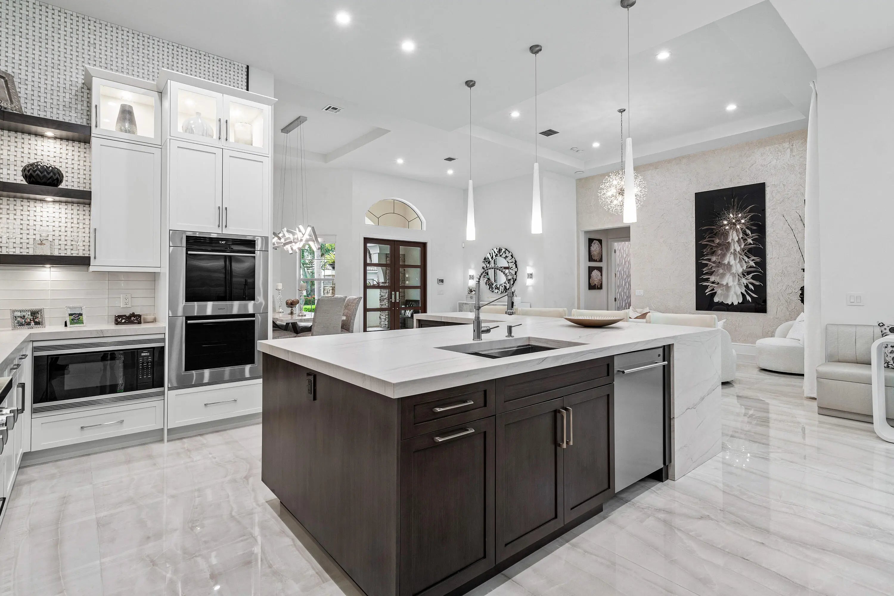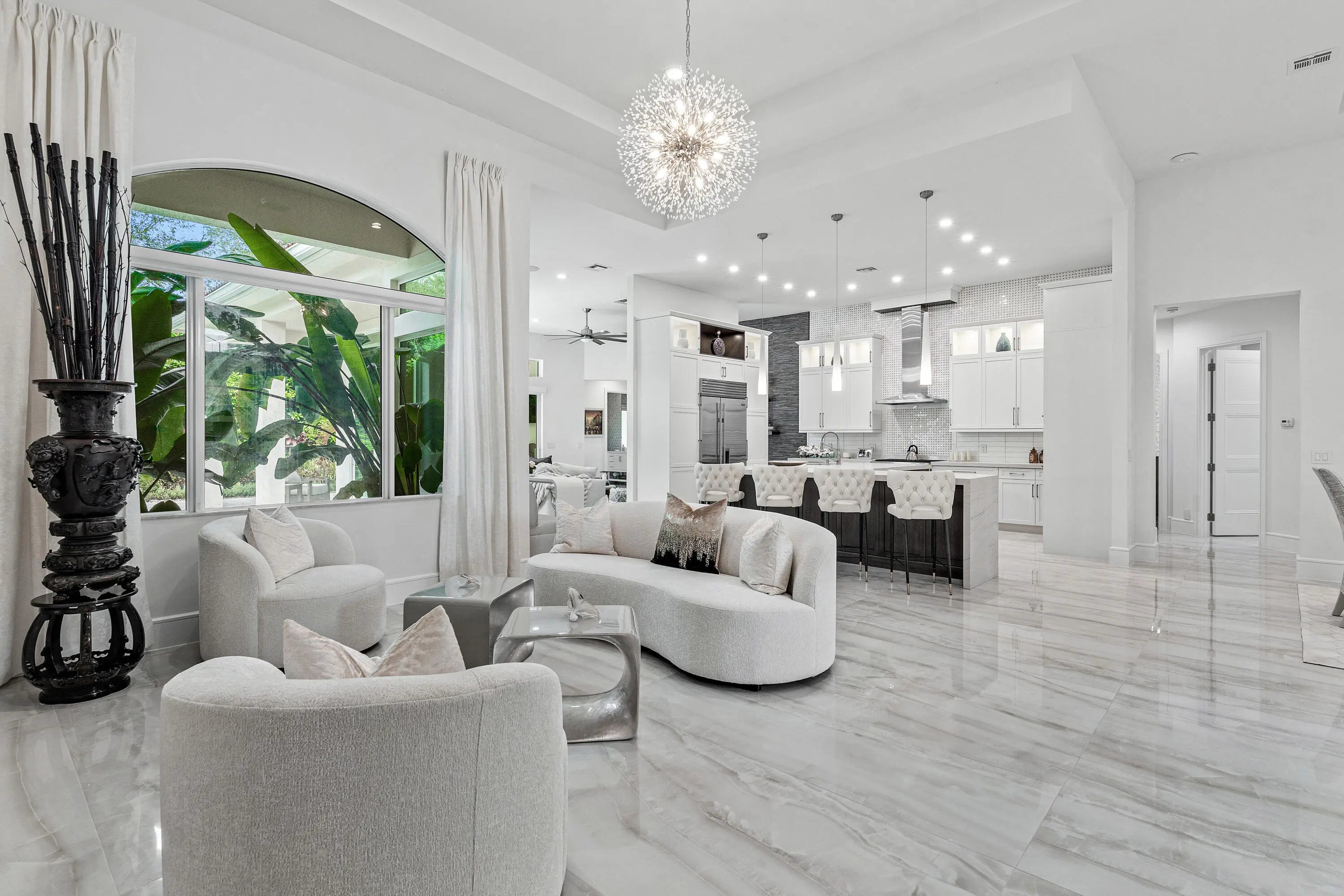 Experience luxury living in this fully renovated 4 bed 3.1 bath home nestled on a private lot in the Azura community located in Boca Raton. Boasting state of the art Wolf appliances this exquisite residence offers a seamless blend of style & comfort. The open-concept design features a gourmet kitchen, spacious living areas, & a primary suite with spa-like bath. A circular driveway adds elegance & convenience while lush landscaping ensures privacy. Enjoy resort-style amenities, including clubhouse, pool, & fitness center all within minutes of world-class dining, shopping, & top-rated schools. Home Features a natural-gas generator, impact glass windows, new 36x72'' porcelain flooring, new Wolf appliances, new kitchen cabinets & counters, all new bathrooms, new electric/plumbing, grade 5 ceiling work, new interior doors & hardware, new front door w/structural changes, mini split A/C in garage, all new baths, new pool area, pool finish, w/new fountain. Barbecue grill outside with 85" TV, mosquito system for exterior back, all new landscaping in back & behind pool fence, well water for sprinkler system, new washer/dryer & laundry area, all new ceiling detail, electronic hunter douglas shades in family room. All new landscape lighting, and more.