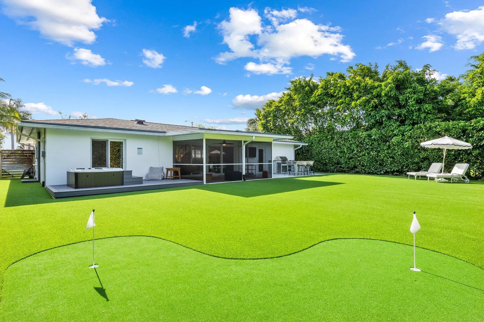 Welcome to the bungalow! This fully updated two bedroom two bath features all that the best of Florida living has to offer; jacuzzi, putting green, turf, outdoor shower, screened in sunroom, plantation shutters, outdoor grill. Including a new AC unit, hardwired security cameras, updated electrical panel, & new landscaped lighting & so much more. This home is perfect for entertaining & is within minutes to restaurants, bars, The Boca Raton, & the beach. Book your private showing today!