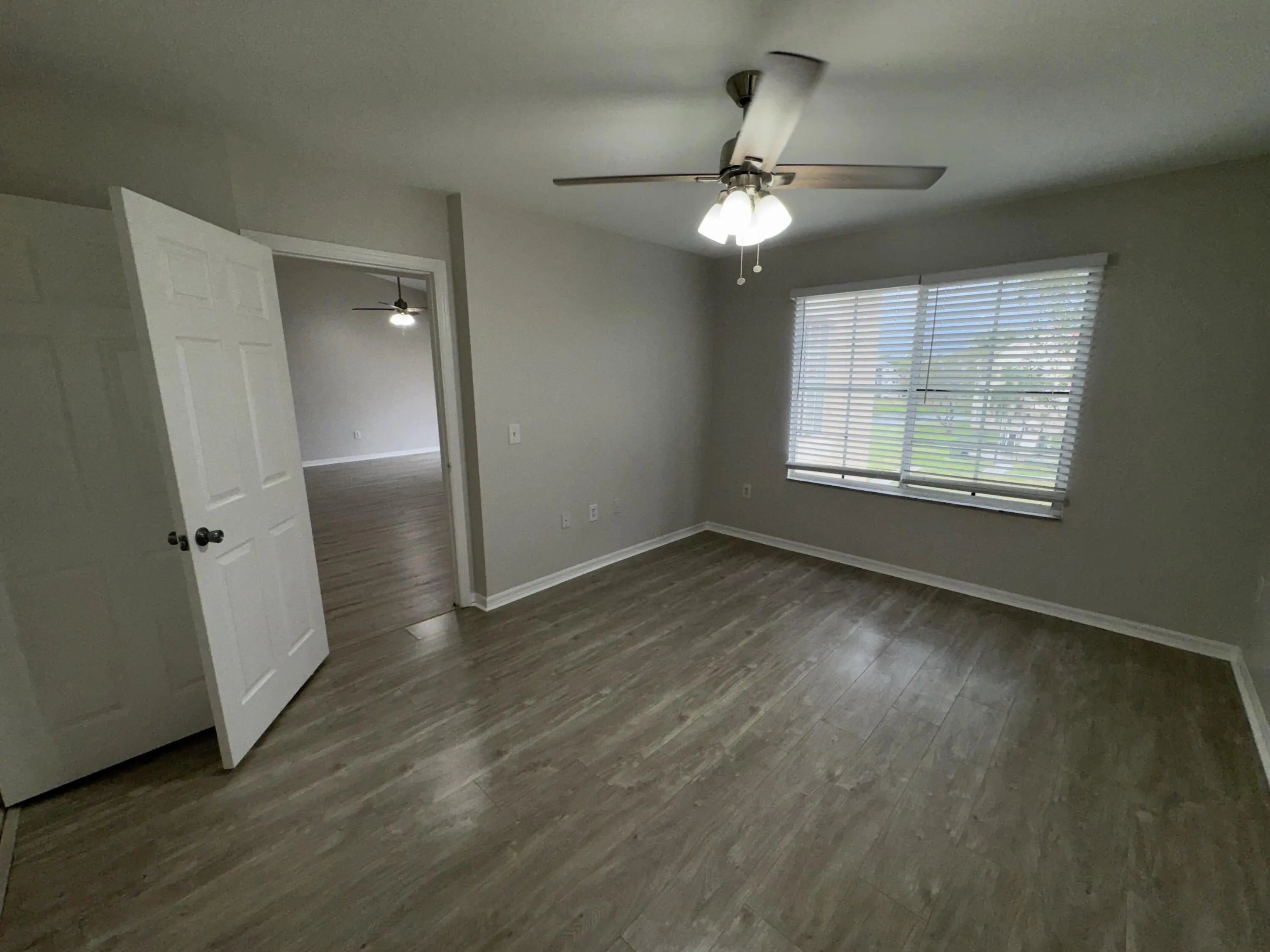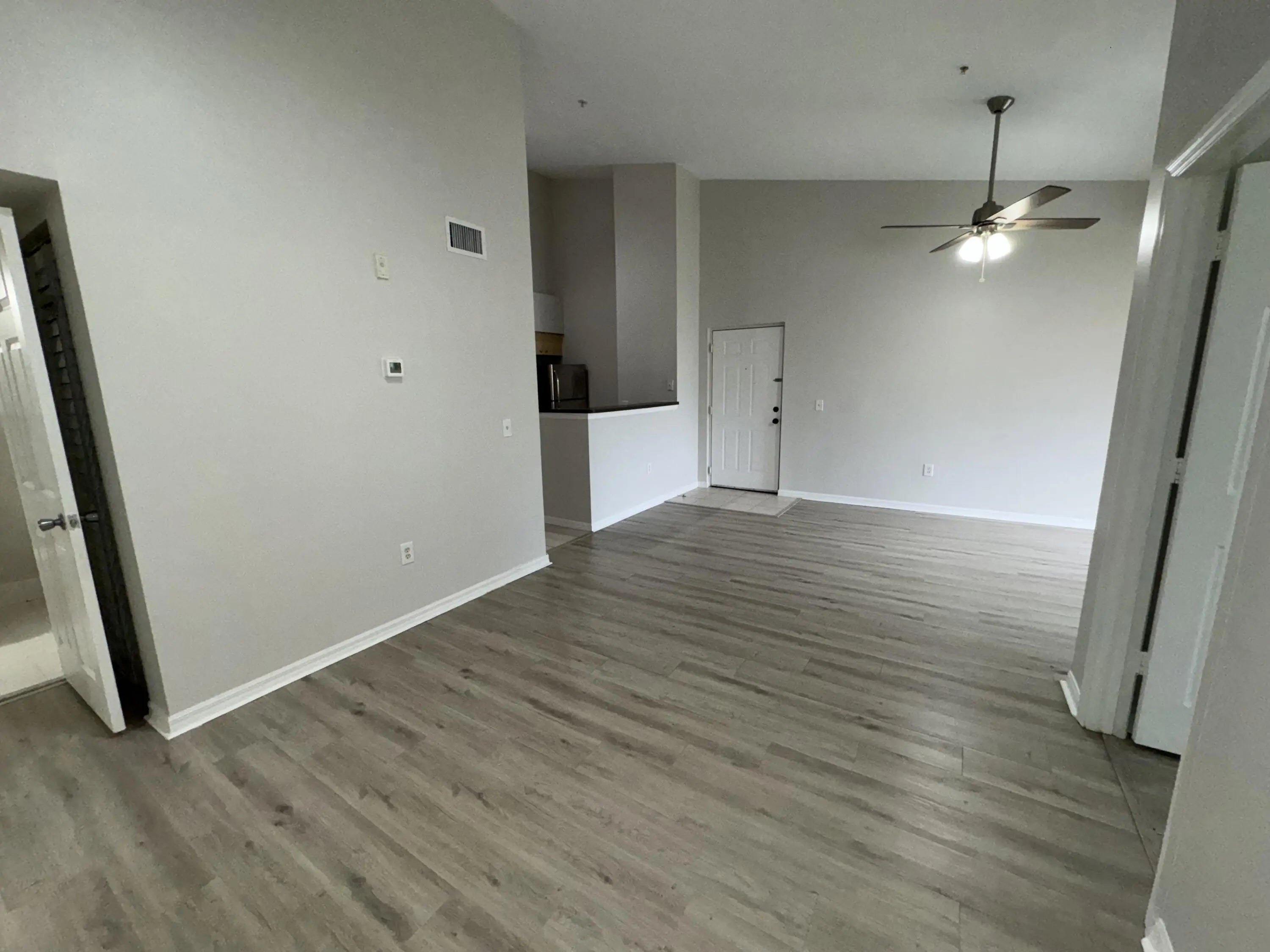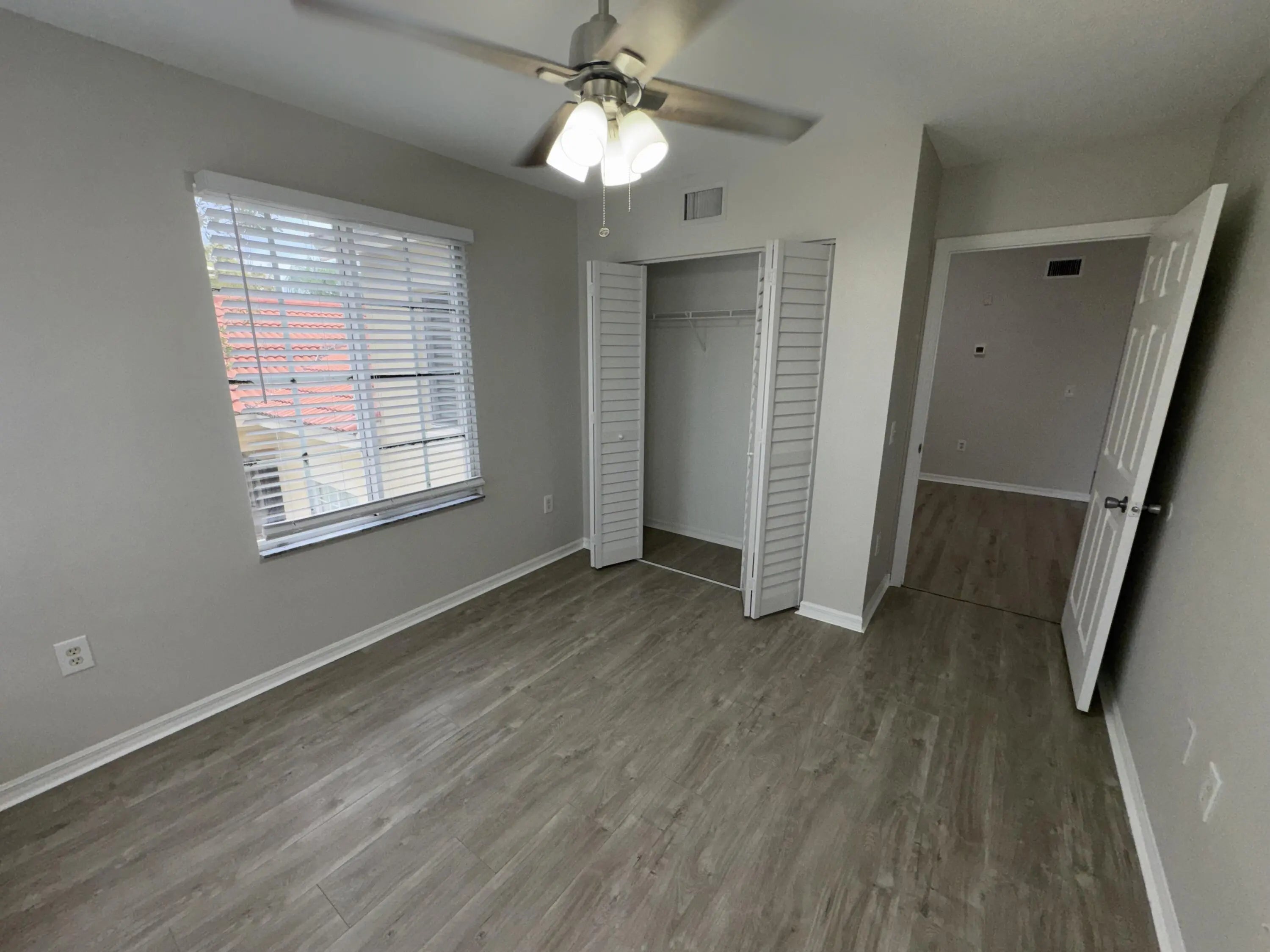 Move-in ready third-floor 2-bedroom, 1-bathroom condominium located in the desirable, fully gated Emerald Isle community. The main living area and bedrooms feature modern gray plank flooring. The primary bedroom offers a spacious walk-in closet with a pass-through door to the shared bathroom. The open kitchen, highlighted by vaulted ceilings, flows seamlessly into the living area and includes a full-size washer and dryer for added convenience. Emerald Isle offers resort-style amenities including a clubhouse, fitness center, swimming pool with sun deck, hot tub, tennis and other ball courts, and a playground. Rent includes Wi-Fi, basic cable TV, water, trash, HOA fees, and full access to all community amenities. Centrally located in the West Palm Beach area. Small pets welcome.