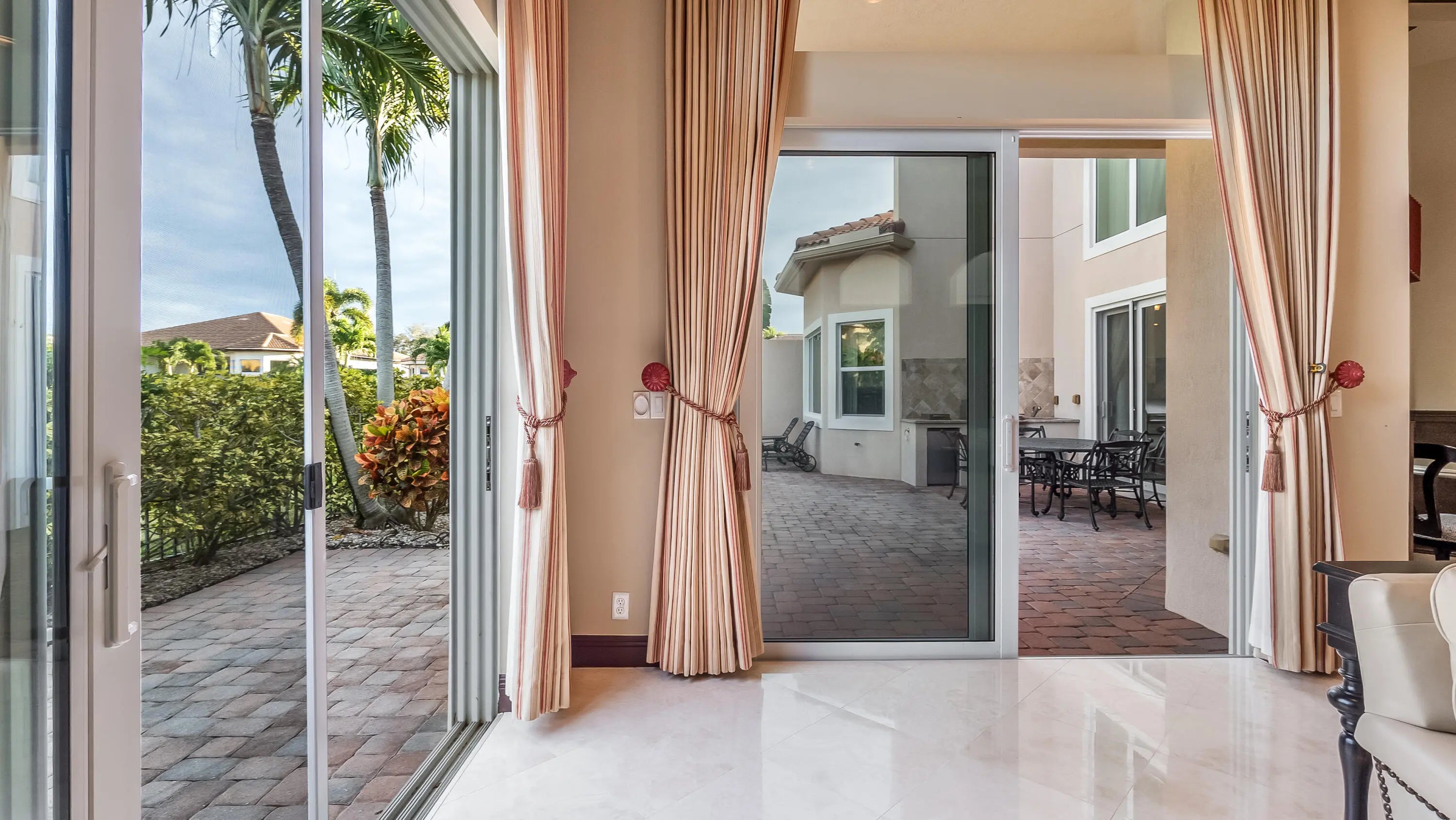 Experience refined luxury living in the heart of Boca Raton's coveted Millionaire's Mile at Azura on the Jog Road corridor. Ideally located near Boca's top-rated private and public schools, this exceptional residence is tucked away on a quiet cul-de-sac with no rear neighbors, offering a rare sense of privacy in a highly sought-after setting. An extended driveway leads to a three-car garage and welcomes you into an impressive interior. The thoughtfully designed floor plan features five bedrooms, four and one-half baths, a private office, and a spacious loft. Soaring 23-foot ceilings enhance the home's grand, open feel. The primary suite is conveniently located on the main level and includes an additional sitting area, perfect for a home office or workout space. The primary bath offers dual sinks, a soaking tub, and a large walk-in shower. Upstairs, you'll find three additional bedrooms and two full baths, including a Jack-and-Jill layout. Designed for both everyday living and entertaining, the spacious kitchen features a center island, rich brown cabinetry, granite countertops, and two oversized pantries for ample storage. The serene, private backyard is ideal for relaxing or hosting guests, complete with a summer kitchen and spa, with plenty of room to add a pool. Perfectly positioned within one of Boca Raton's most desirable communities, this home seamlessly blends elegance, comfort, privacy, and location. Azura is an exclusive enclave of just 92 luxury homes, highlighted by brick-paved streets and natural gas service. Residents enjoy 24-hour manned gated security and access to a 7,500-square-foot clubhouse featuring a fully equipped fitness center with sauna and spa, a ballet/yoga studio, billiards and card rooms, a social room, and on-site management. Outdoor amenities include a resort-style pool and whirlpool, children's playground, putting green, and two Har-Tru tennis courts.