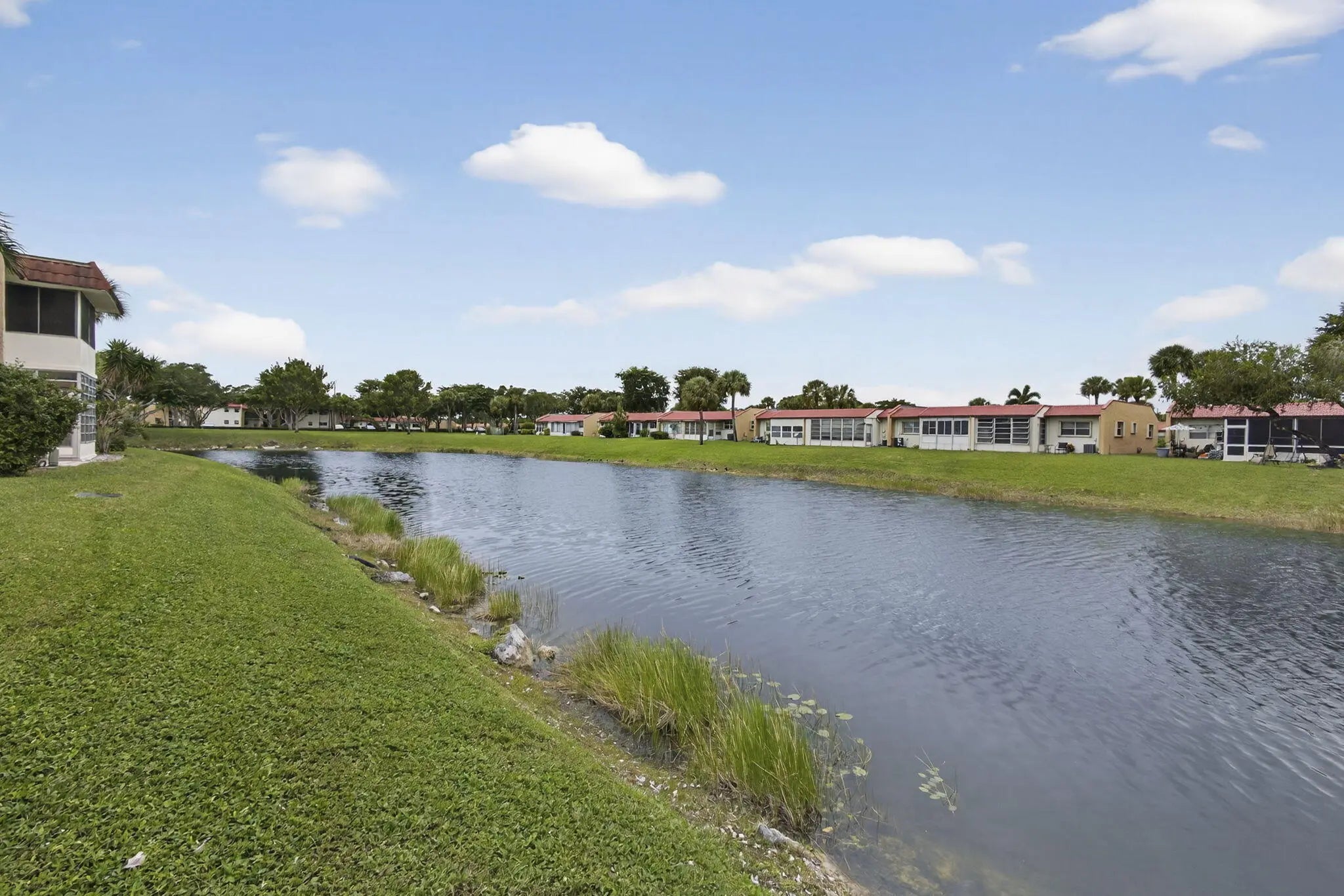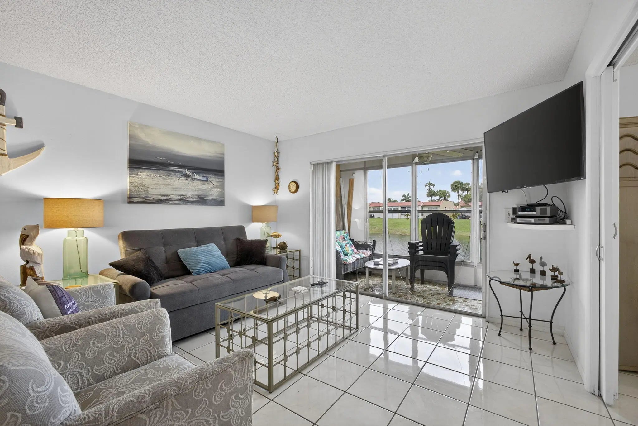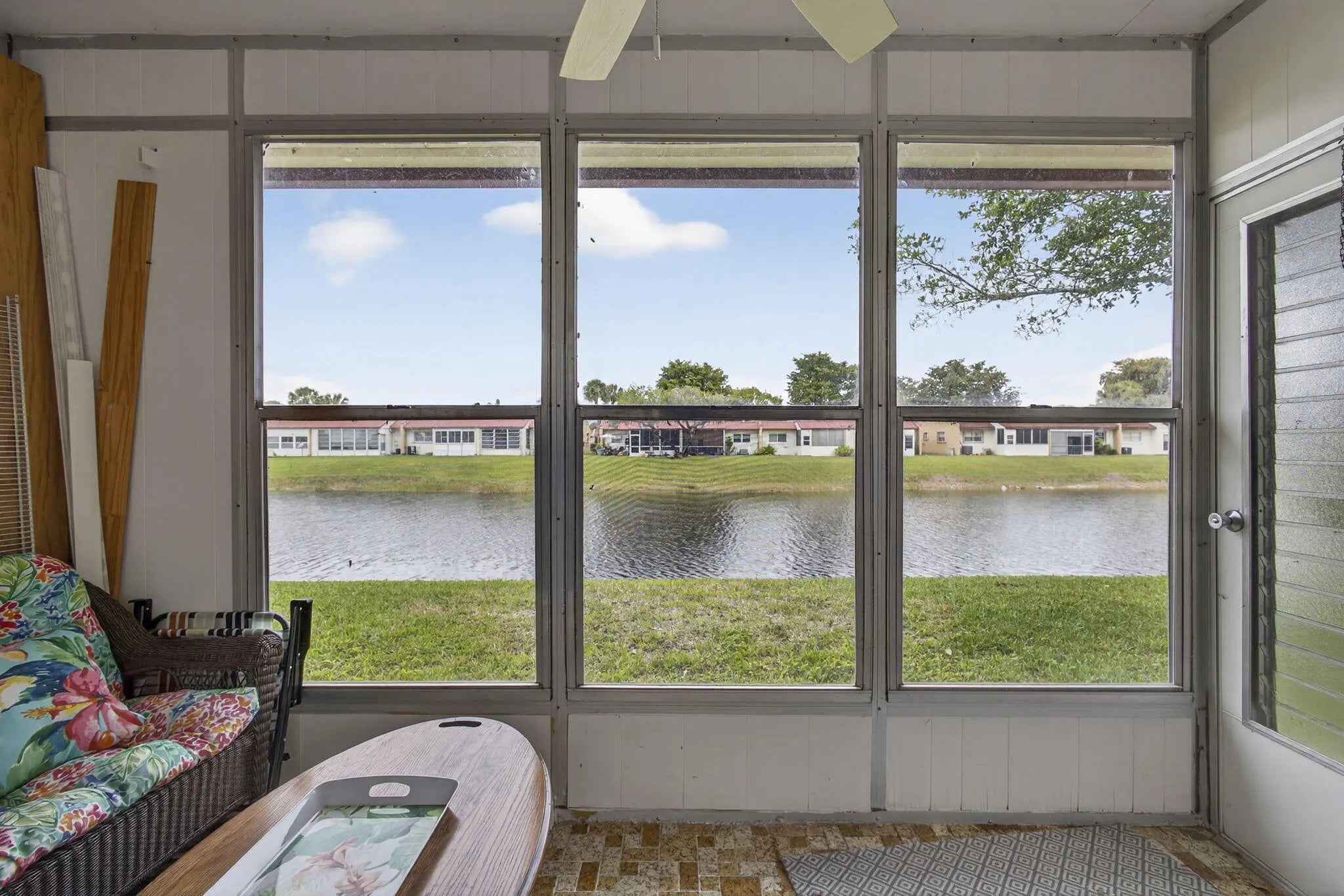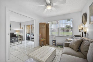 Welcome to Golden Lakes Village, a desirable 55+ active community in West Palm Beach. This is the only 3-bedroom residence currently available in the community, offering 2 full bathrooms and serene lake views. The updated kitchen features white shaker cabinets, tile backsplash, new countertops, and sleek black appliances. Both bathrooms have been tastefully updated with tile showers, and the guest bath includes a new vanity. The versatile third bedroom can be used as a den or home office and overlooks the water. Enjoy peace of mind with an AC replaced in 2022 and unwind on the covered patio with tranquil lake views. Golden Lakes offers a clubhouse, pool, fitness center, on-site management, social events, and more. Schedule your private tour today!