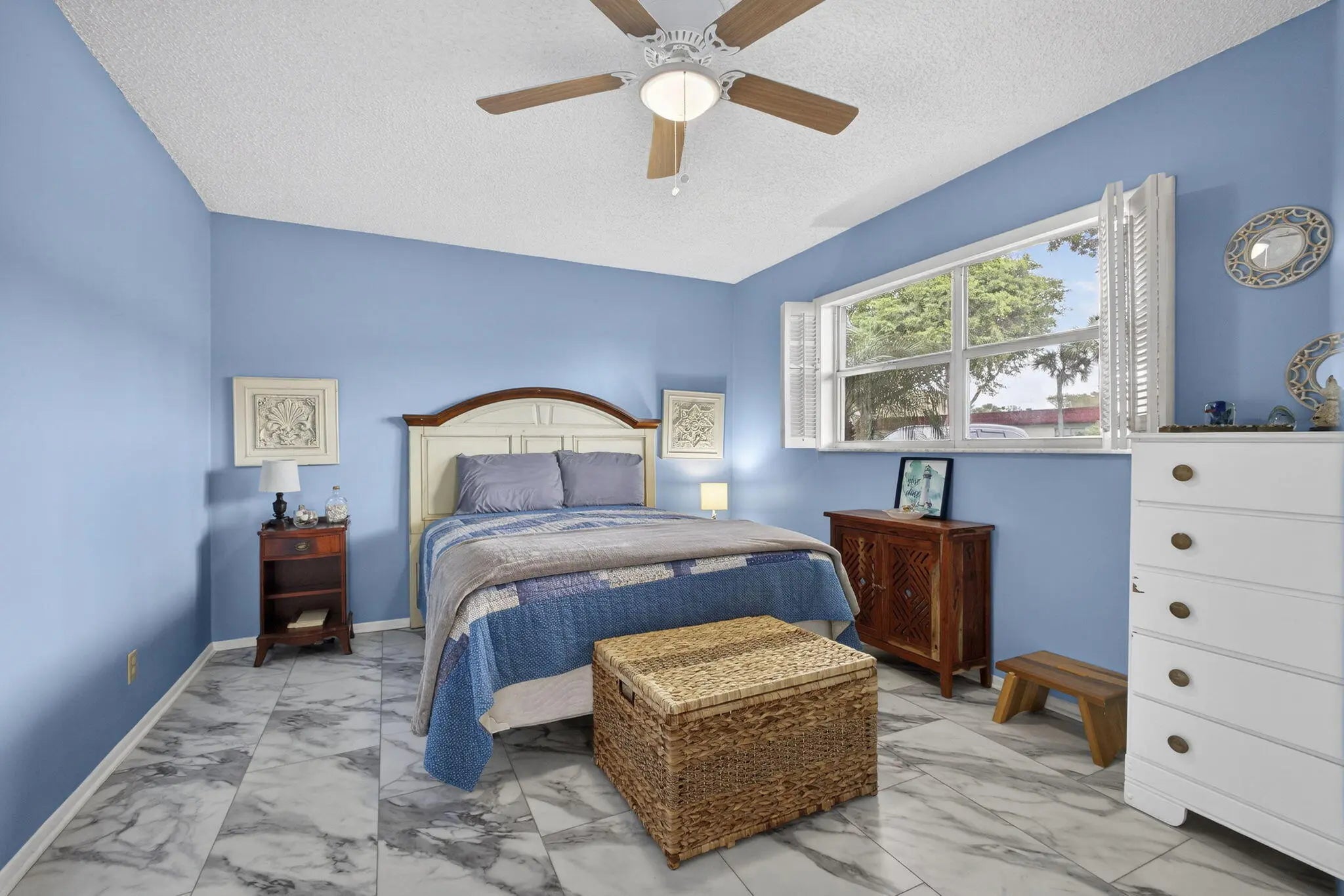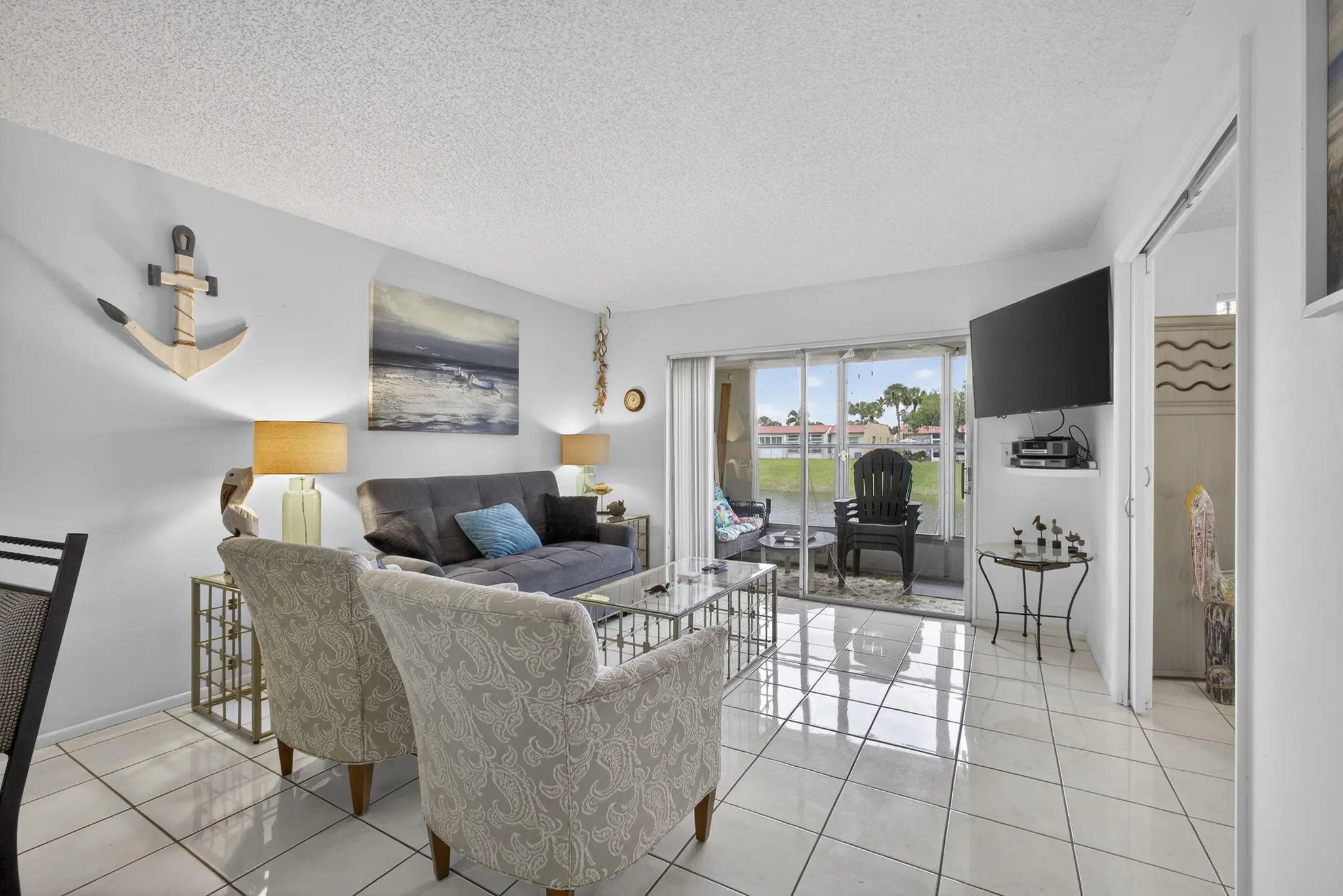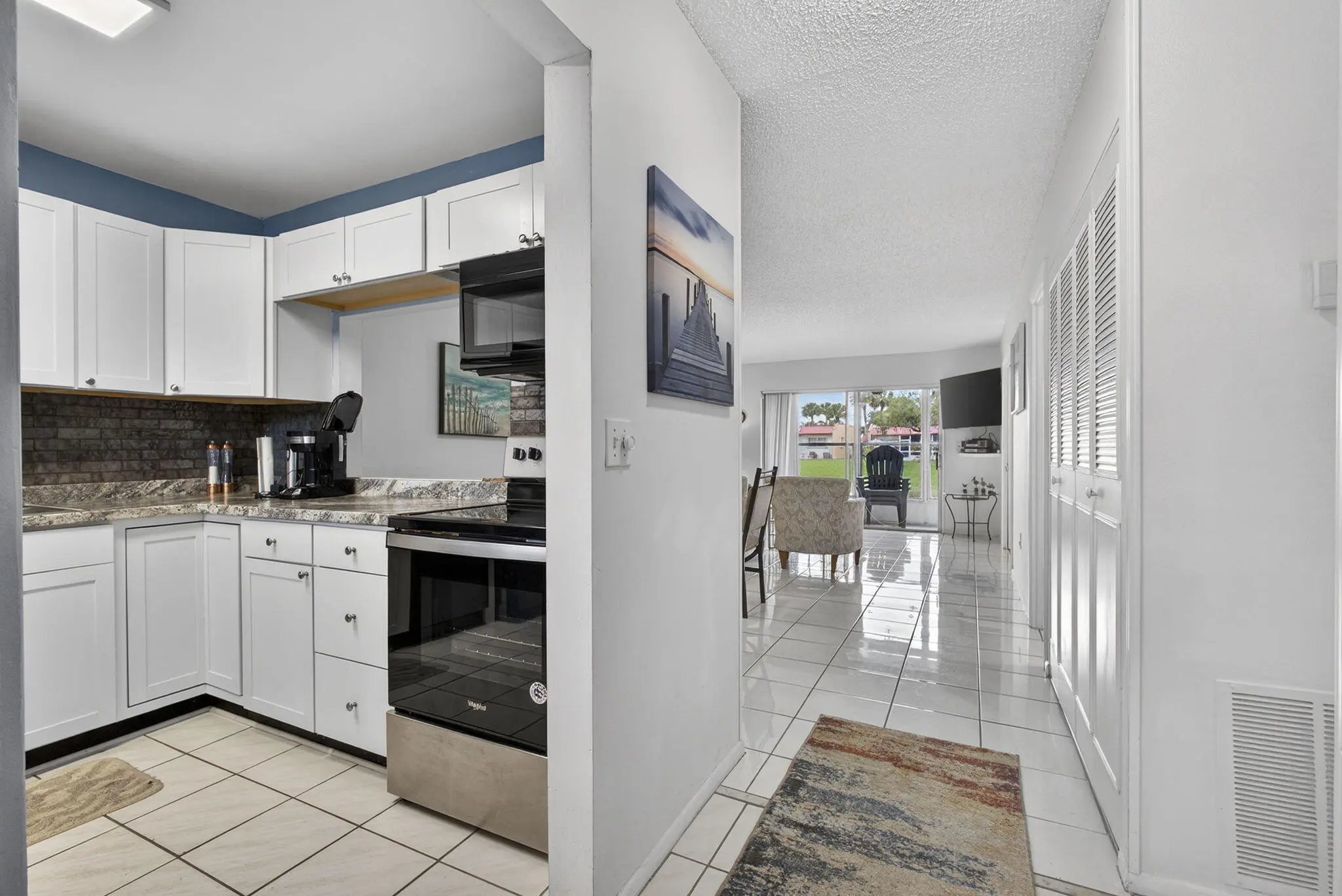 Welcome to Golden Lakes Village, a desirable 55+ active community in West Palm Beach. This is the only 3-bedroom residence currently available in the community, offering 2 full bathrooms and serene lake views. The updated kitchen features white shaker cabinets, tile backsplash, new countertops, and sleek black appliances. Both bathrooms have been tastefully updated with tile showers, and the guest bath includes a new vanity. The versatile third bedroom can be used as a den or home office and overlooks the water. Enjoy peace of mind with an AC replaced in 2022 and unwind on the covered patio with tranquil lake views. Golden Lakes offers a clubhouse, pool, fitness center, on-site management, social events, and more. Schedule your private tour today!