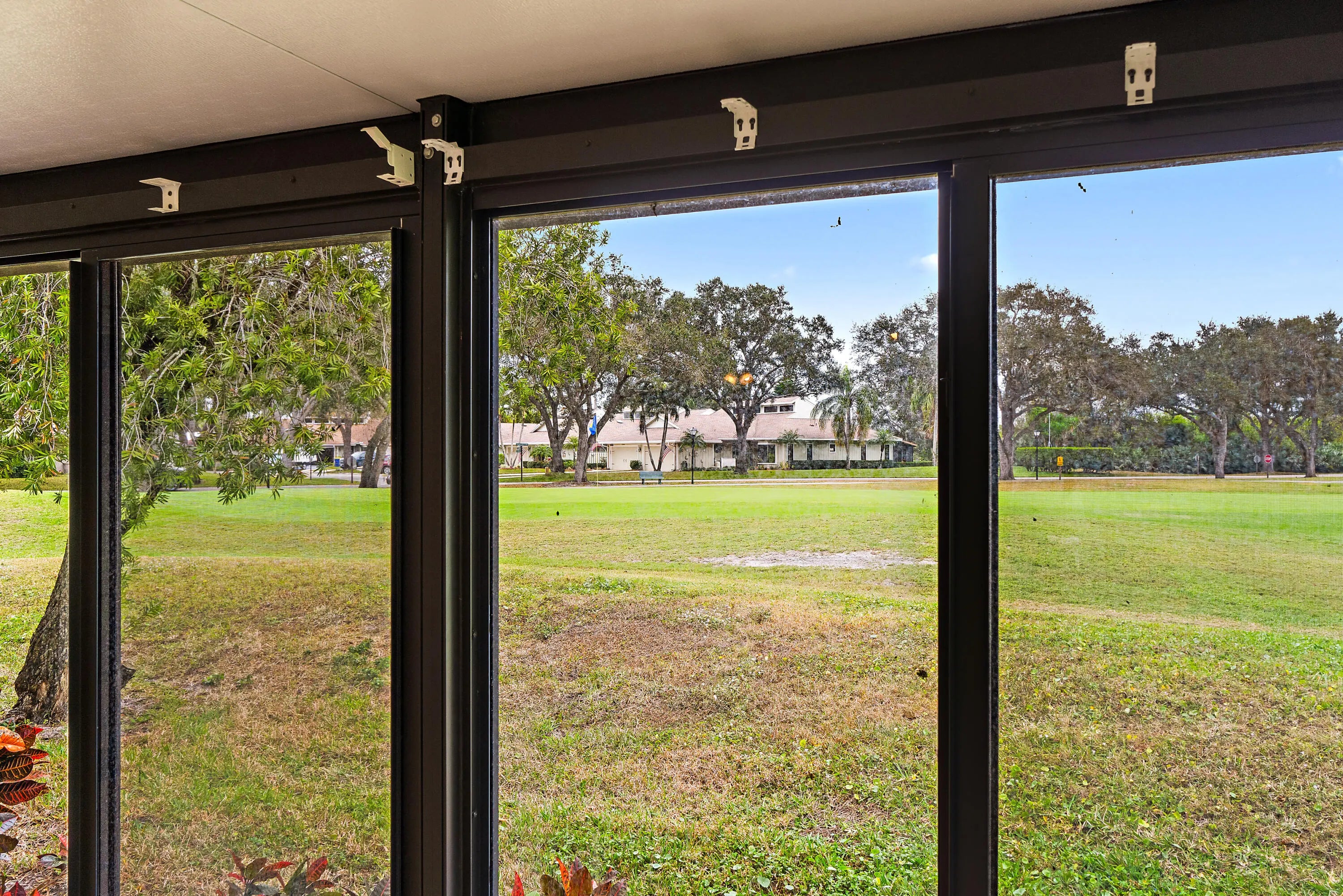 Welcome to this charming 2-bedroom, 2-bath single-family home located in the desirable 55+ golf community of Eaglewood in Hobe Sound. Thoughtfully maintained and updated, this residence offers peace of mind with a new roof in 2023, HVAC system 2018, hot water heater 2024, and a combination of impact glass and accordion shutters for hurricane protection. Set directly on the golf course, the home enjoys scenic fairway views from both the primary bedroom and the enclosed air-conditioned patio—creating the perfect backdrop for morning coffee or evening relaxation. Inside, the kitchen features light oak cabinetry paired with stainless steel appliances for a warm and functional feel. Eaglewood residents enjoy a vibrant, resort-style lifestyle with a monthly fee of just $599, which includes all amenties and unlimited golf. Residents enjoy a clubhouse with commercial kitchen, 18-hole executive golf course and putting green, large heated pool and spa, tennis, bocce courts, dog park, golf pro shop, and covered outdoor grilling areas. On-site staff handle administration, maintenance, and golf operations, and the community calendar is full of tournaments, socials, BBQs, and other activities for those who enjoy a lively, friendly atmosphere. All of this just minutes from Hobe Sound's beaches, dining, and everyday conveniences.