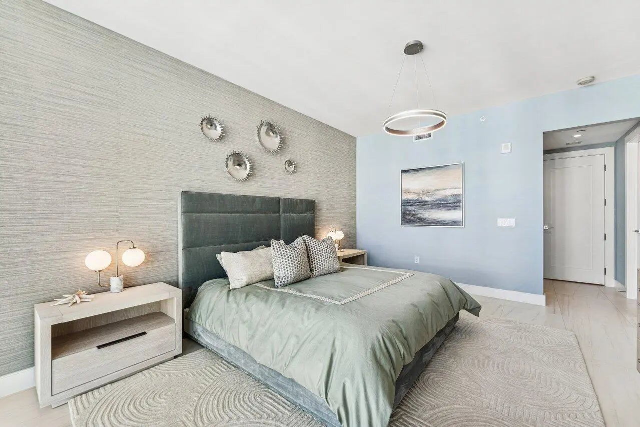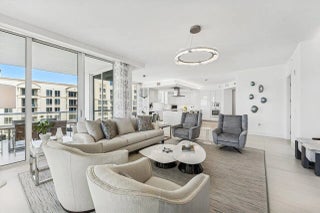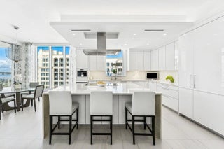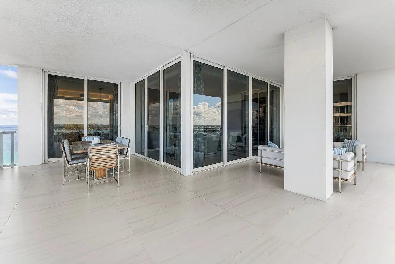 Welcome to the epitome of luxury living at Vistablue, Residence 17C, professionally designed by Decorators Unlimited. This private floor-entry residence offers 3,029 square feet of refined coastal elegance with 3 bedrooms, 3.5 baths, a den, and an oversized wraparound terrace ideal for entertaining while enjoying sweeping Intracoastal and partial ocean views. The light-filled gourmet kitchen features sleek Poggenpohl custom cabinetry, dramatic quartz waterfall countertops, and top-of-the-line Miele and Sub-Zero appliances. Soaring floor-to-ceiling impact glass and sliding doors enhance the open, airy design and seamlessly connect indoor and outdoor living. The serene primary suite offers generous walk-in closets and a spa-inspired bath. Stunning Italian porcelain flooring throughout. Step outside to experience resort-style beachfront living with 5-star amenities, including concierge service, ocean view social lounge, private wine vault, state-of-the-art fitness center with sauna, and an elevated pool deck with cabanas and direct beach access. *Unit has 2 deeded parking spaces and large storage locker. This is luxury coastal living at its finest residence that seamlessly blends sophisticated design, top-tier finishes, and world-class amenities. Close to PBI Airport, 5 star restaurants, The Breakers, City Place, Gardens Mall.