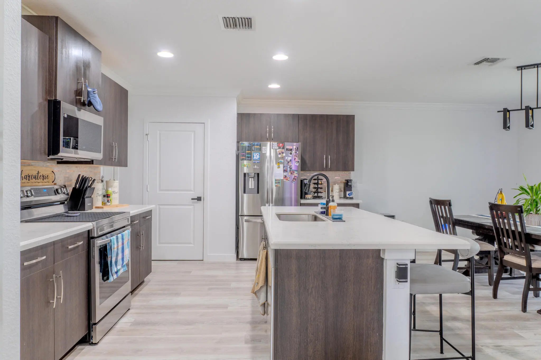 Don't miss out on this beautiful remodeled waterfront single-family residence offering an open-concept floorplan and lake views. This 4-bedroom, 2.5-bath home features brand-new flooring throughout and a fully renovated master bathroom completed in the last year. All new appliances purchased in 2025, including refrigerator, washer, dryer, stove, microwave, and dishwasher. Enjoy outdoor living in the fenced backyard overlooking the lake, complete with a covered patio ideal for relaxing or entertaining. Located in a quiet neighborhood with a small number of single-family homes, offering privacy and a peaceful setting. The two-car garage includes an FPL electric vehicle charger ready to go. Truly move-in ready with modern upgrades and desirable waterfront living.