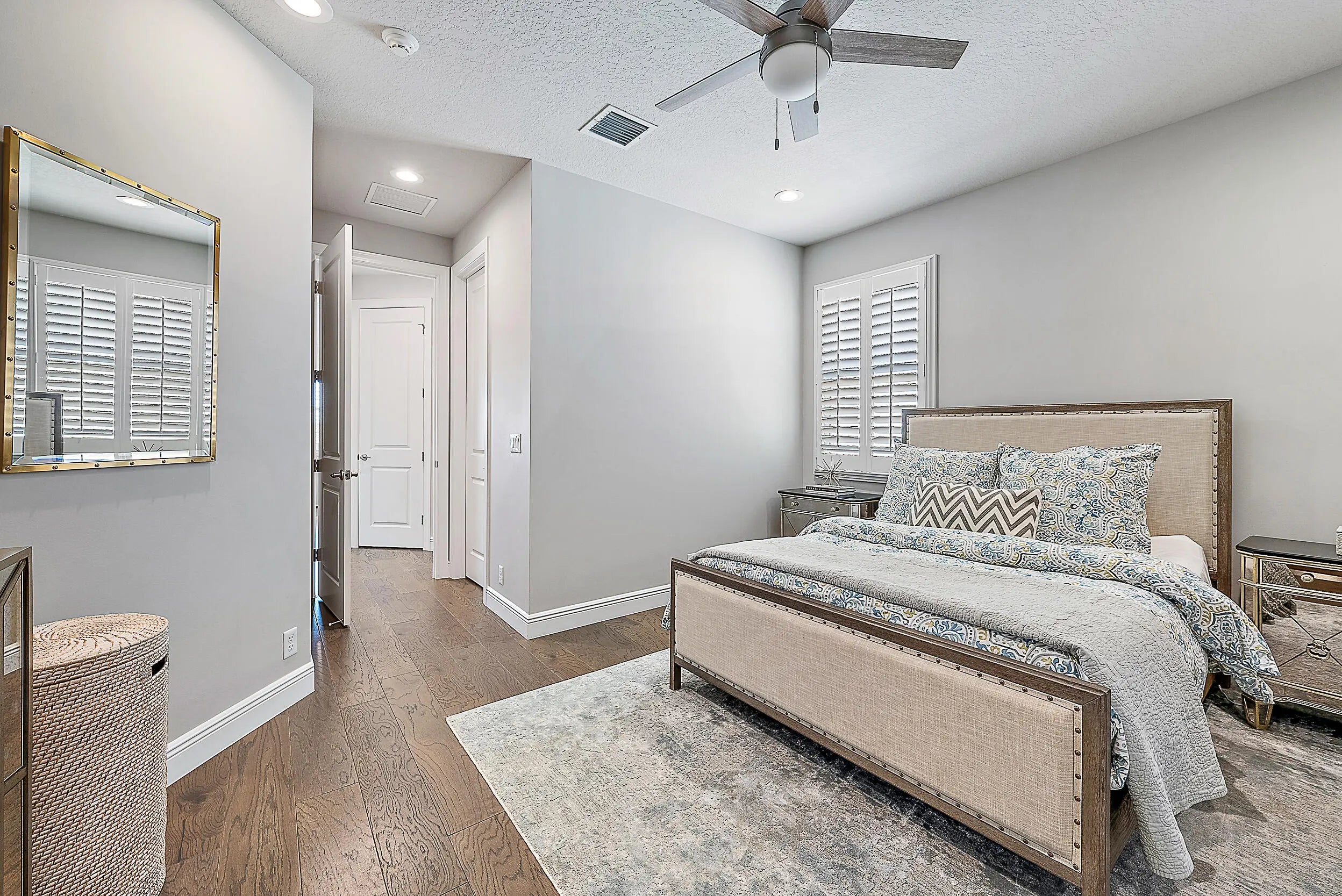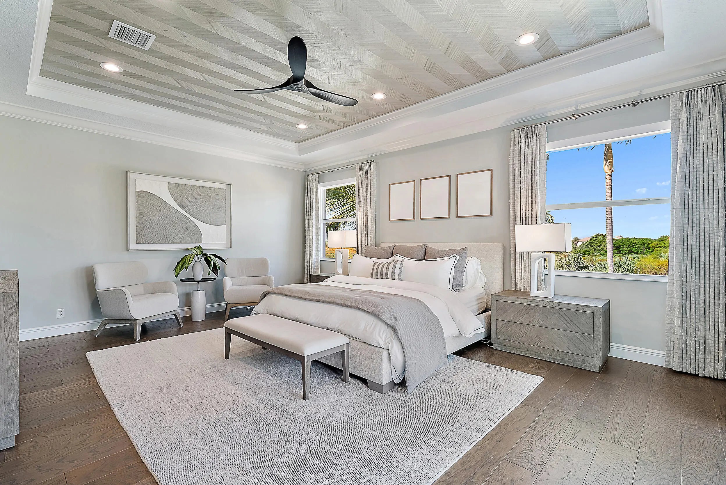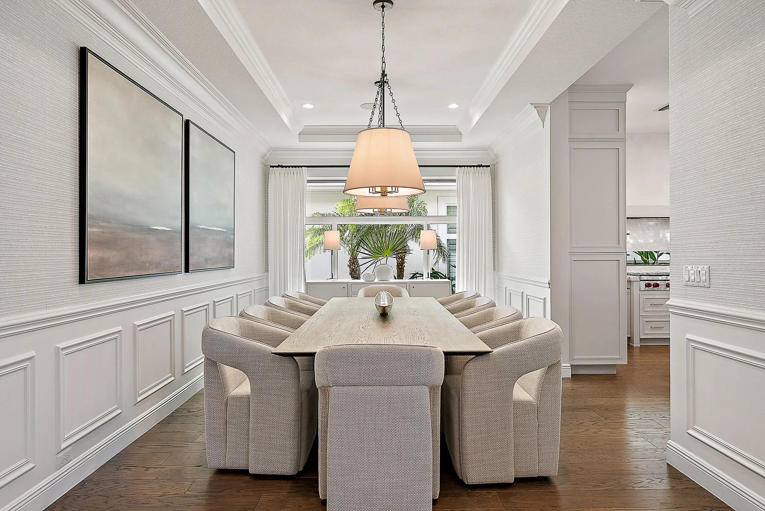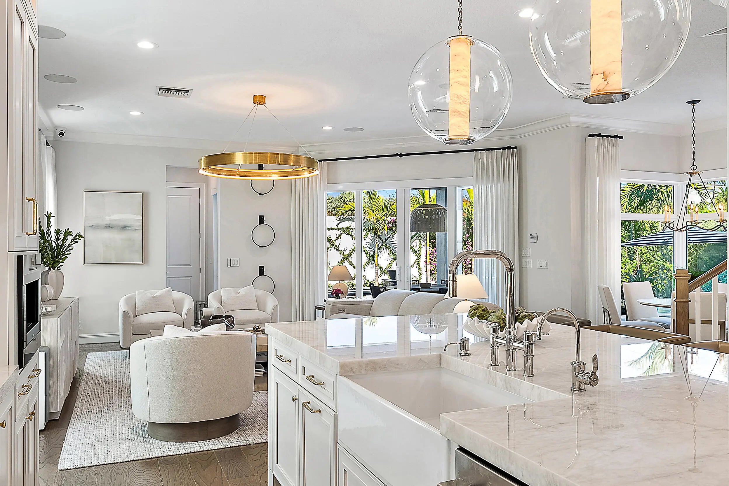 This redesigned luxury residence offers over 4,700 SF under air, blending timeless architecture with refined modern enhancements. Built in 2017, this 5+ bedroom home sits on a serene lot backing to the Juno Preserve, just one mile from the beach and premier dining. The home features custom millwork and shiplap accents throughout, seamlessly paired with high-end finishes. Highlights include a chef's kitchen with Cristallo countertops and Wolf appliances, 2 laundry rooms, whole-house generator, 3 car garage, and custom closets. The kitchen has a seamless connection to the main living spaces and oversized dining room. Outdoor living is exceptional with a redone saltwater pool and fire bowls, phantom screens, designer landscaping with turf, an outdoor kitchen, ice maker, and outdoor shower.