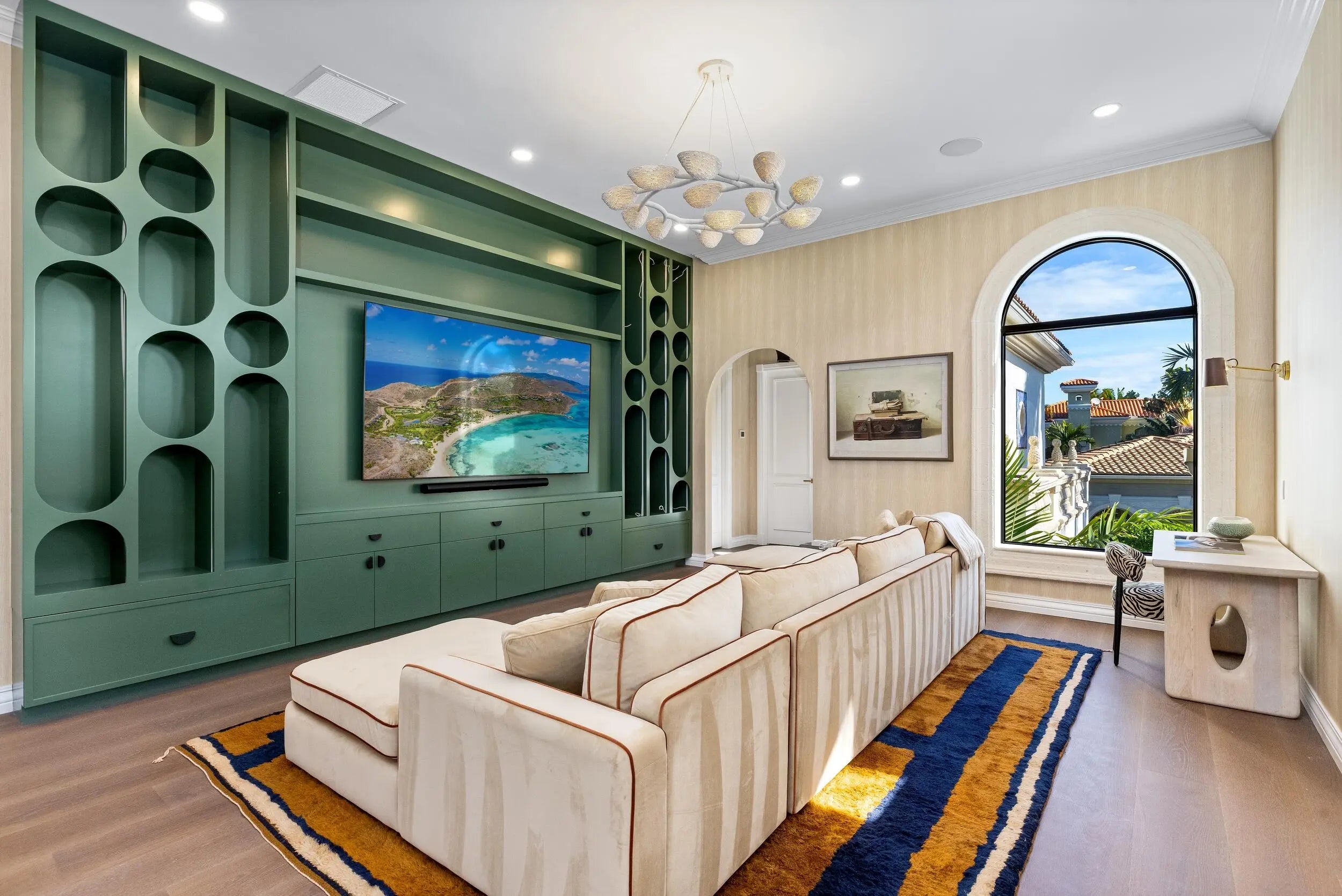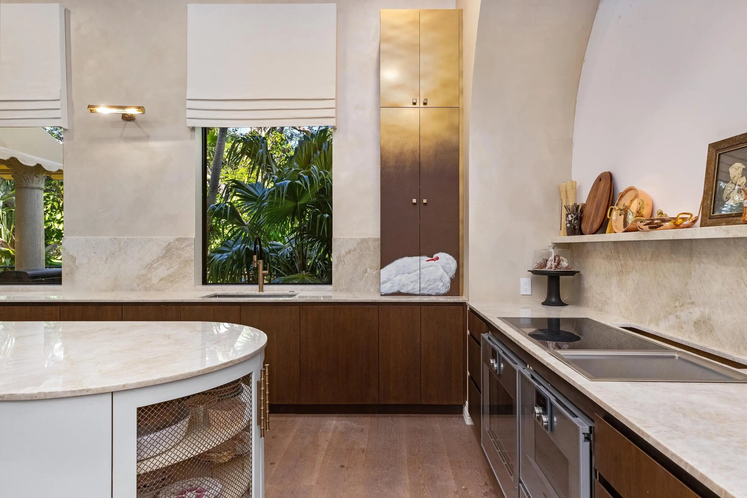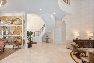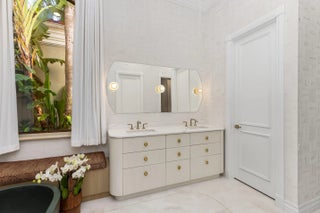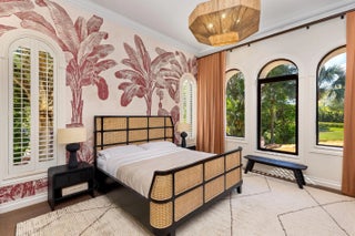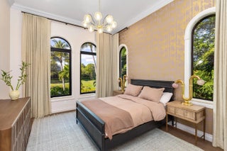 The Golden Lion Estate is a bold, masterfully reimagined residence in Boca Raton, conceived and executed by the award-winning Errez Design. This ultra-luxury designer home is distinguished by architectural originality and an uncompromising commitment to the world's finest materials and craftsmanship. The interiors reveal a sophisticated fusion of contemporary refinement and Asian-inspired artistry, thoughtfully curated to reflect visual harmony. Rich textures, layered materials, and disciplined yet expressive color compositions create a gallery-level environment; an offering rarely encountered in Boca Raton. Overlooking the rolling fairways of The Boca Raton golf course, The Golden Lion Estate occupies a coveted corner lot and offers privacy, security, and refined living. Set within the prestigious, double-gated enclave of Addison Estates, the residence stands as the community's crown jewel. Layers of controlled access, a generous side yard, lush landscaping, and a resort-style pool establish a private sanctuary within one of Boca Raton's most exclusive addresses. Spanning a total of 6,516 SF, the home delivers architectural presence, sophistication, and tranquility throughout. The residence offers five bedrooms, six full baths, and a powder room, anchored by a grand first-floor primary suite designed as a private, serene retreat. Every element of the home has been comprehensively reimagined, including the installation of all new doors and windows in 2025. At the heart of the home, the reimagined kitchen and lounge function as an elegant living environment rather than a traditional culinary space. Modern cabinetry, an antique mirror backsplash above the range, a concealed pantry, and a custom bar integrated into the dining area allow for seamless entertaining while maintaining visual serenity. The space flows effortlessly into a connected den, ideal for intimate gatherings or refined hosting. The dining room reveals a true artistic centerpiece, a bespoke hand painted gold leaf mirror mural by renowned English muralist Grahame Ménage. First unveiled at a Palm Beach show, this Asian inspired installation transforms the room into a museum quality experience where fine art and architecture converge. The second floor is designed as an elevated private retreat, anchored by a spacious living lounge with custom millwork built ins, ideal for media, gaming, or relaxed family living. In addition to the dramatic oversized guest suite featuring custom bunk beds and two separate, beautifully appointed bathrooms, the second level offers three additional private bedroom suites. Each is thoughtfully designed to provide comfort, privacy, and refined accommodations for family and guests. Throughout the home, refined flooring selections create a layered visual narrative, including travertine on the main level, Casa Venetia European oak on both floors, elegant parquet detailing, and a dramatic herringbone pattern in the primary suite. The primary bath rivals a luxury spa, showcasing luminous onyx behind the soaking tub and Bianco Montcarte marble throughout the floors and shower walls. Outdoors, sweeping golf course vistas frame the resort style pool and tranquil entertaining areas, reinforcing the estate's sense of privacy and seamless indoor outdoor living. The property also includes a laundry room and a two car garage. Adding to its exceptional lifestyle offering, the initiation fee to The Boca Raton Club is included, providing immediate access to one of South Florida's most iconic private resort communities with championship golf, world class dining, beach club amenities, and an unparalleled lifestyle. Opportunities of this caliber - where architecture, art, security, and lifestyle converge - are exceedingly rare in South Florida. The Golden Lion Estate is not merely a residence; it is a definitive expression of refined living at the highest level.