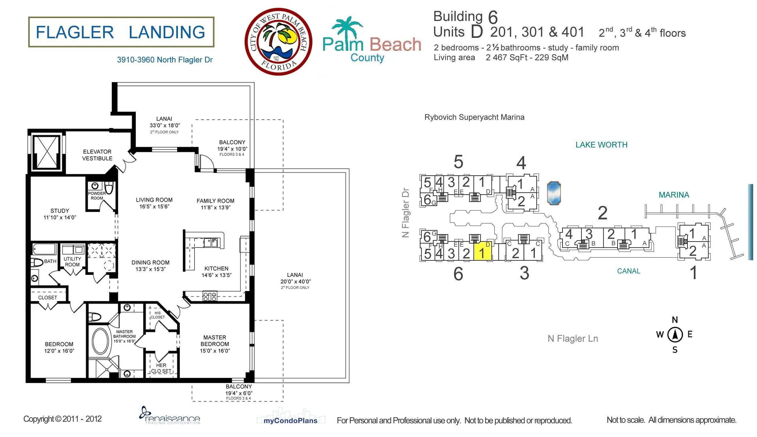 Rarely available 3 Bedroom, 2.5 Baths Unit in Flagler Landing. Flagler Landing is a private guard gated community directly on the Intercoastal Waterway, next to Rybovich Yacht Marina and has it's own private marina for owners. This 2nd floor unit is unique as it offers over 2,000sqft of balcony space. The Master bedroom features separate Tub and Shower, and modern kitchen with Stainless Steel Appliances. Hurricane Impact Windows and Doors and 2 Garage Parking Spaces. Enter your unit from the elevator into your private foyer. This is a highly desirable developing area and minutes to downtown West Palm Beach.