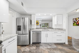 Look at this beautiful first-floor condo with a private garage in the highly sought-after La Mirada at Boca Pointe, where tranquil lake and fountain views can be enjoyed from virtually every room. This nicely updated residence offers a rare combination of convenience, comfort, and resort-style surroundings. A remodeled kitchen and baths, bedroom, and an enclosed, air-conditioned patio create a bright, open living space that seamlessly blends indoor and outdoor living while overlooking the shimmering water and flowing fountains. The kitchen features white cabinetry with pull-out drawers, granite countertops, and stainless-steel appliances, opening to main living areas with warm laminate flooring. Both bathrooms are updated with walk-in showers, large-format tile, and modern vanities. The spacious master suite has been freshly painted and offers peaceful water views to wake up to each morning. A separate laundry room includes a newer washer and dryer, along with a convenient coat closet at the entry. La Mirada is a beautifully maintained community within Boca Pointe, known for its manicured landscaping, scenic lakes, and quiet, upscale atmosphere. Residents enjoy access to a community pool just steps away, while Boca Pointe offers optional country club membership with championship golf, tennis, fitness, dining, and an active social calendar. Ideally located in central Boca Raton, you are minutes to Town Center Mall, top-rated schools, houses of worship, major highways, and some of South Florida's finest beaches. This is first-floor living, private garage convenience, and soothing fountain views in one of Boca Raton's most desirable gated communities.