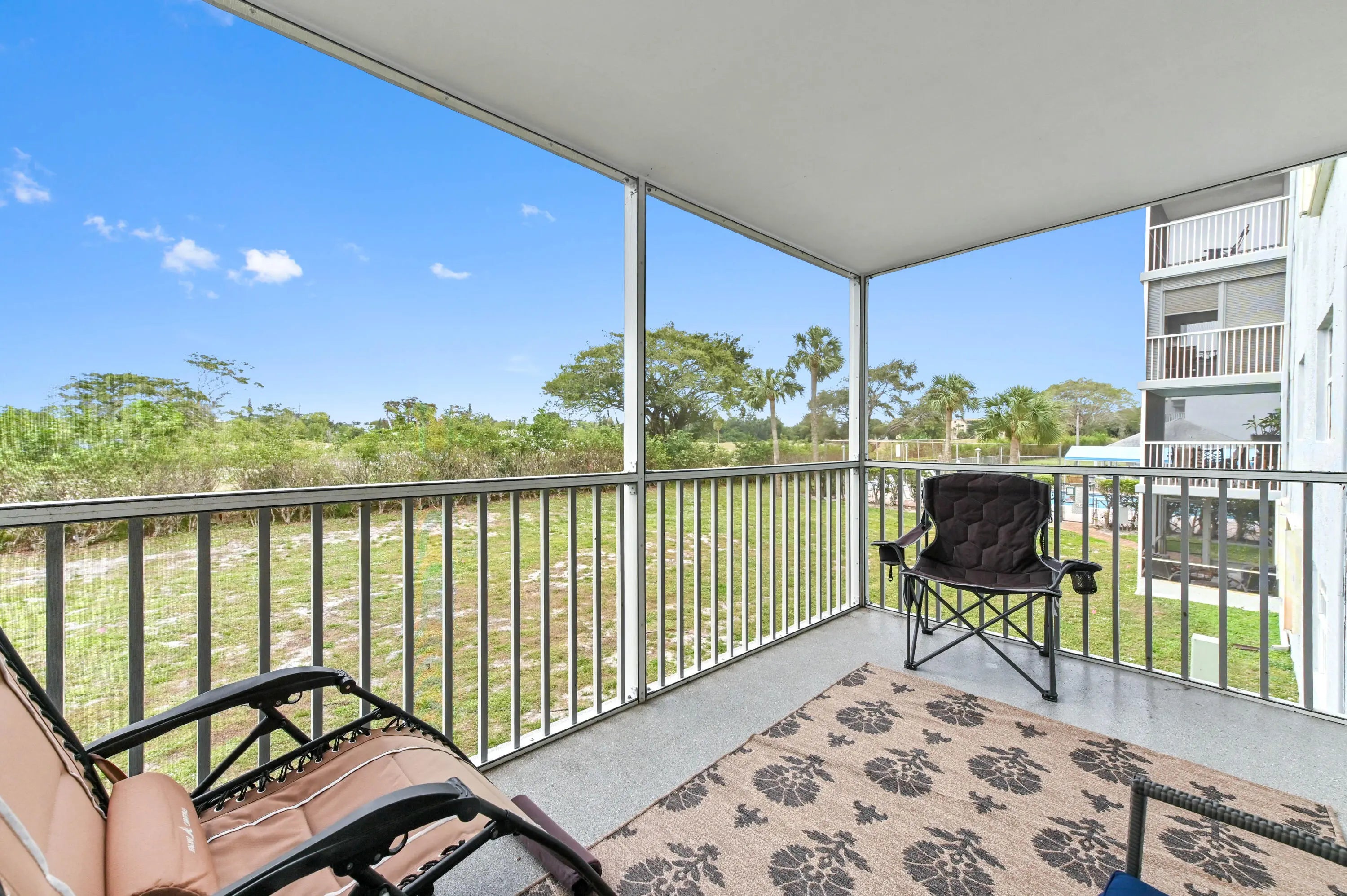 Experience the perfect blend of modern comfort and coastal serenity in this beautiful second-floor residence. The home welcomes you with cool handsome wood-look tile creating a bright and airy atmosphere. The heart of the condo is the kitchen, featuring crisp white cabinetry, stainless steel appliances, and sleek quartz countertops that offer both style and durability. This culinary space opens seamlessly to the dining and living areas, where sliding glass doors lead out to a private screened balcony—your personal haven for enjoying peaceful views of the community. The private quarters are designed for relaxation and convenience. The bedrooms are generously sized with windows to capture natural light. The bathrooms have modern vanities, fixtures, and contemporary tile work, including a walk-in shower with a glass enclosure. Residents also enjoy access to community amenities such as a sparkling pool and tennis courts, making this a complete package for the Florida lifestyle.