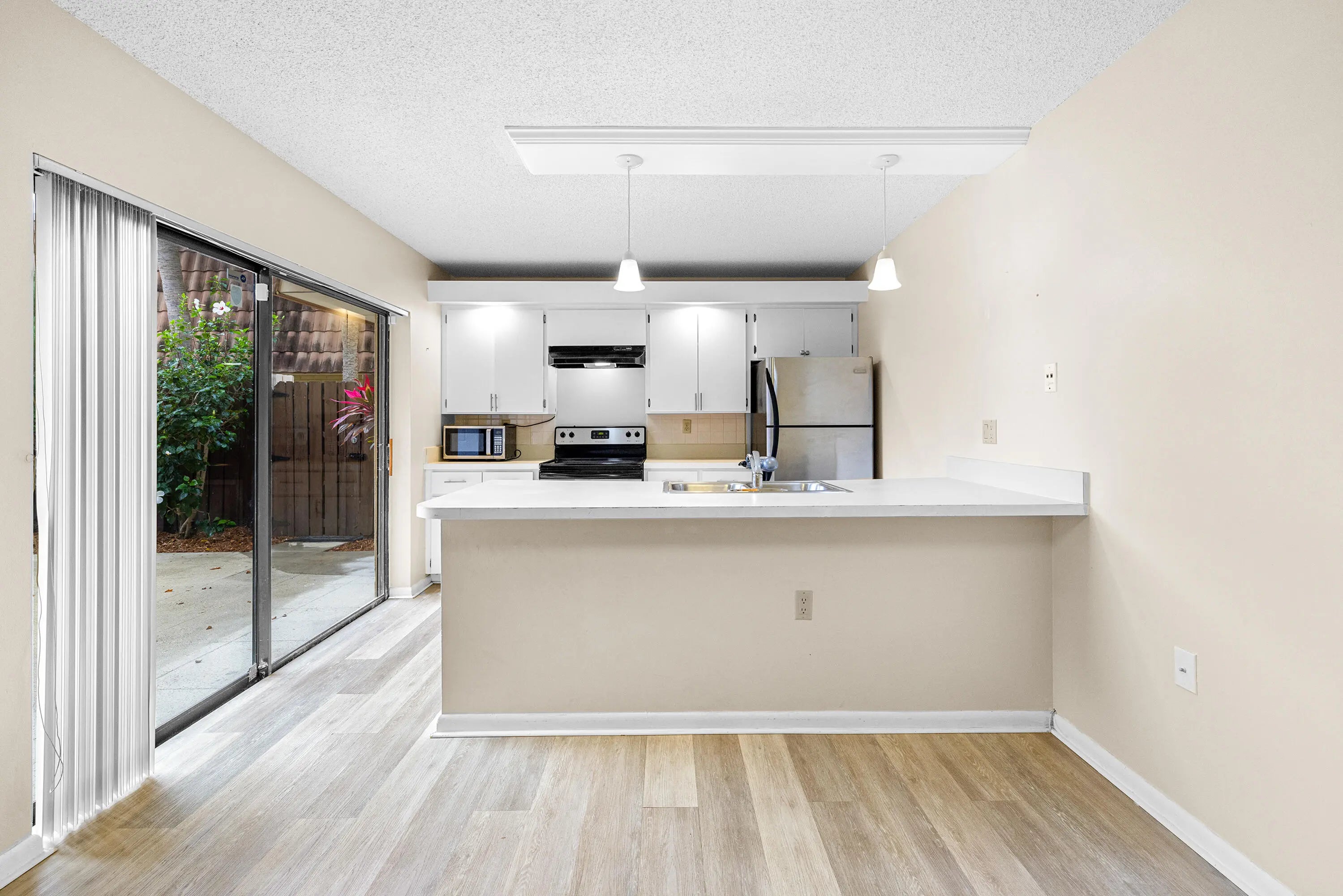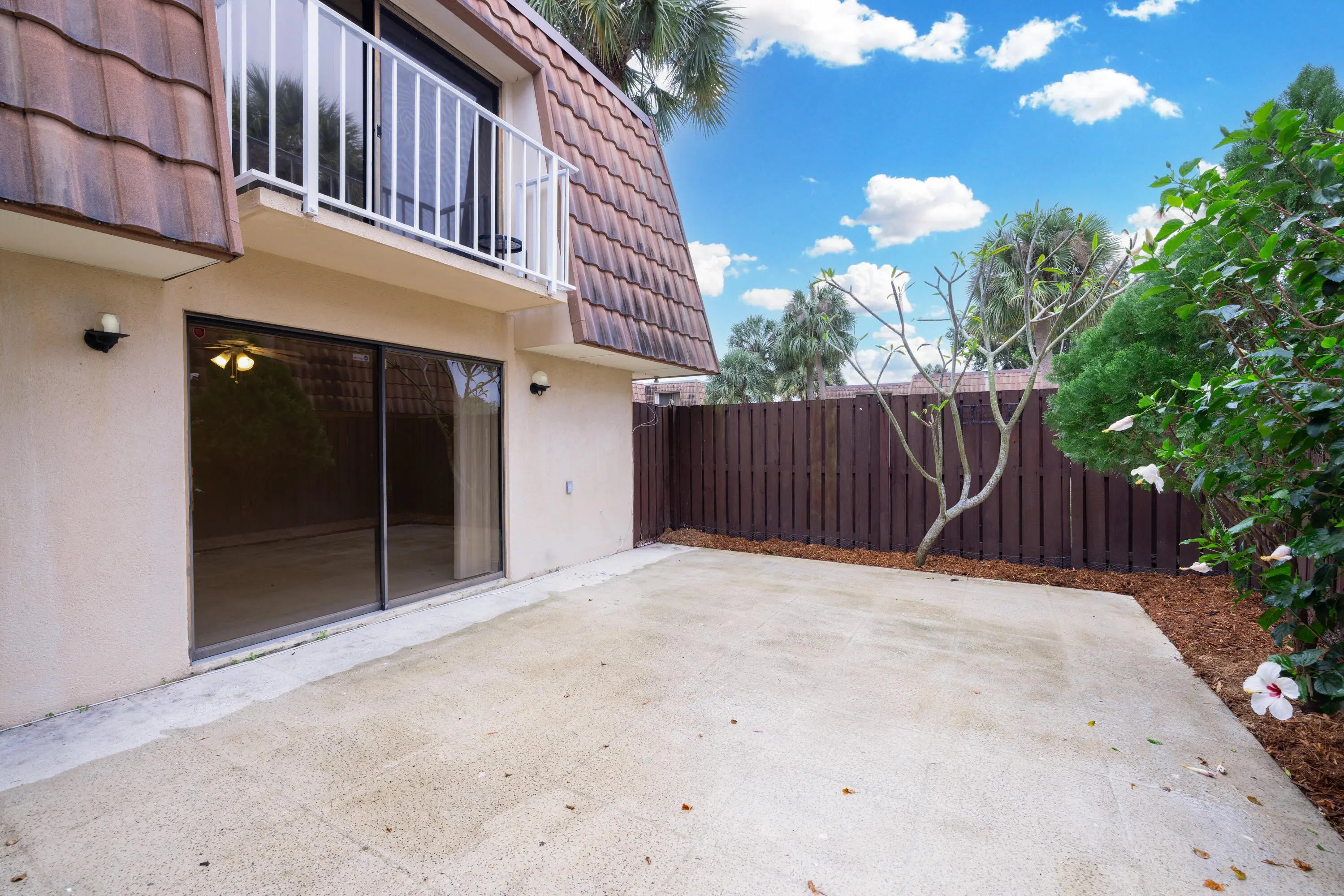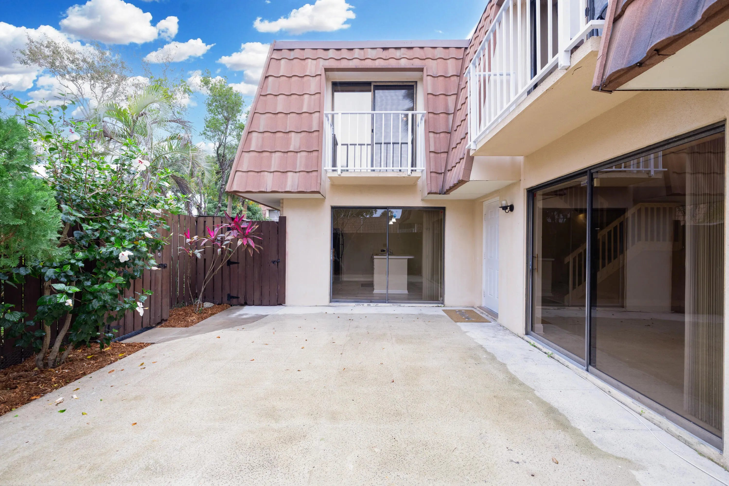 Beautifully maintained and thoughtfully updated, this modern two-story townhouse offers style, comfort, and functionality. A fully fenced private patio provides the perfect setting for entertaining or relaxing, with convenient access from both the kitchen and dining area, ideal for indoor-outdoor dining. The interior features luxury vinyl plank and tile flooring throughout. The kitchen is well appointed with stainless steel appliances, a breakfast bar, and a dedicated dining area. The spacious living room is filled with natural light, enhanced by sliding glass doors that open directly to the patio. Upstairs, you'll find two primary bedrooms, each with its own ensuite bathroom and private balcony access, offering comfort and privacy. The home includes two assigned parking spaces with easy access. The pet-friendly community allows rentals with a six-month minimum and offers excellent amenities, including a clubhouse, swimming pool, wading pool, two tennis courts, and a volleyball court. The HOA covers building insurance, exterior maintenance, lawn care, water, sewer, and trash removal. Conveniently located near I-95, shopping, and dining.