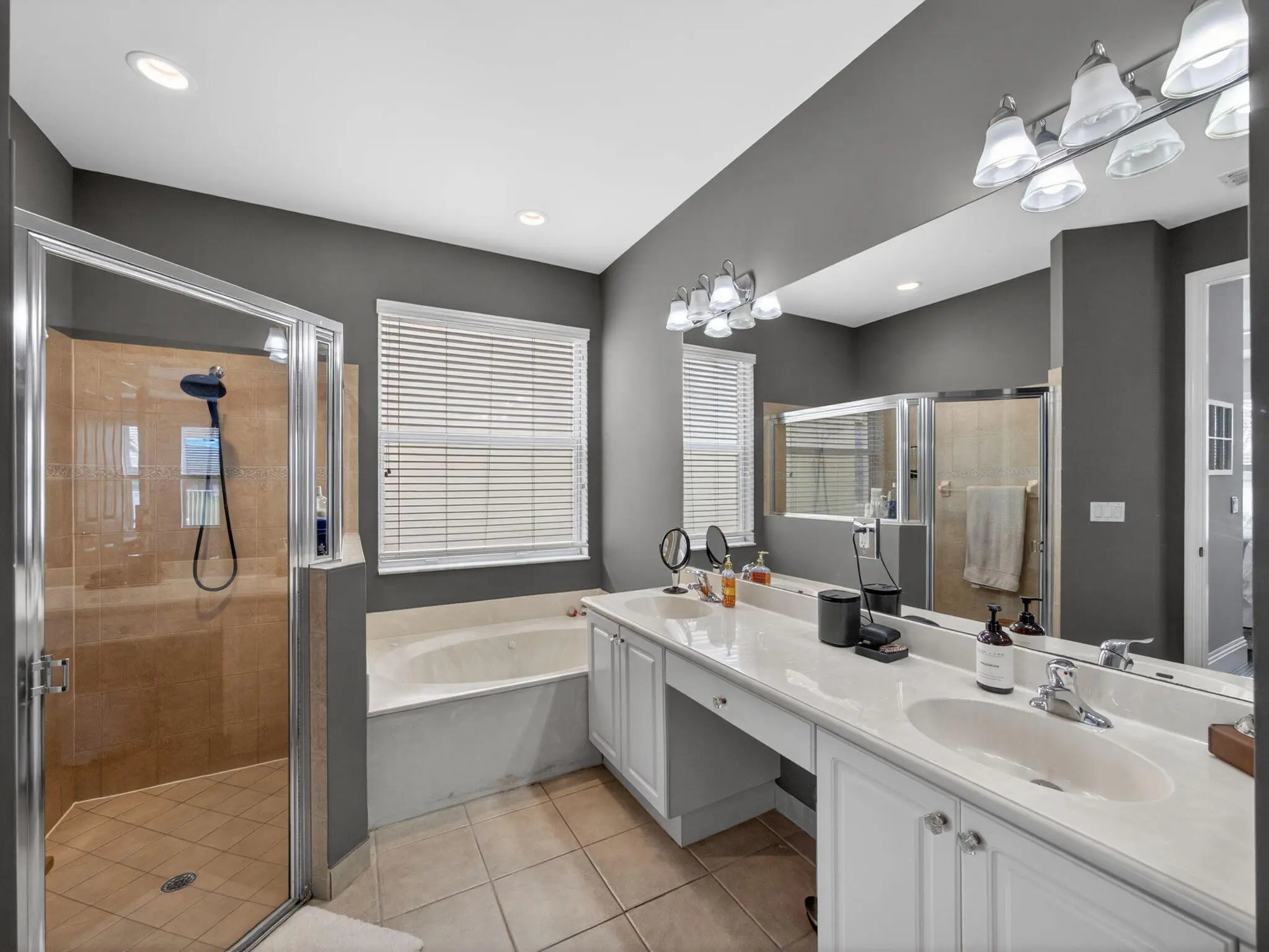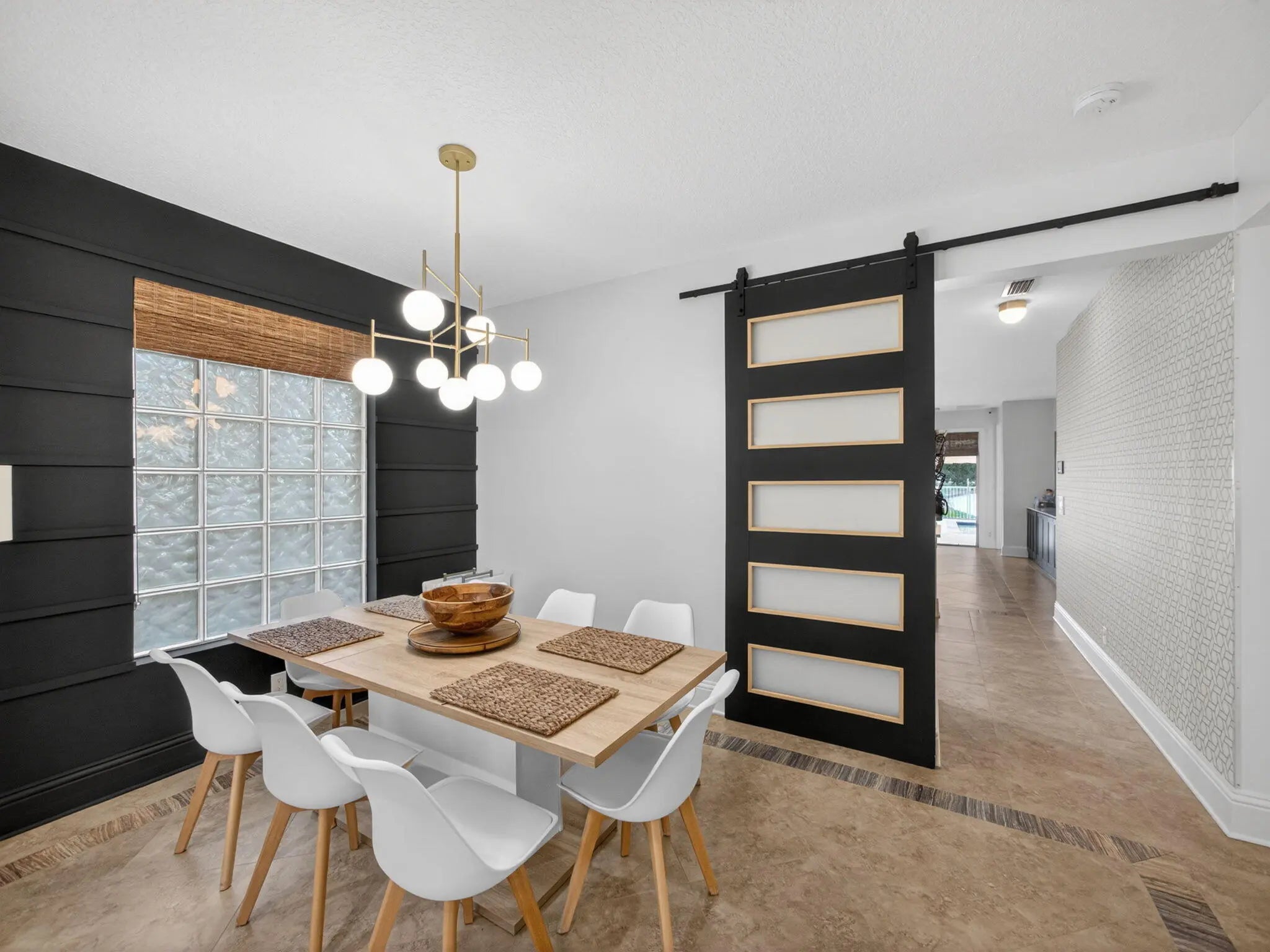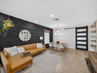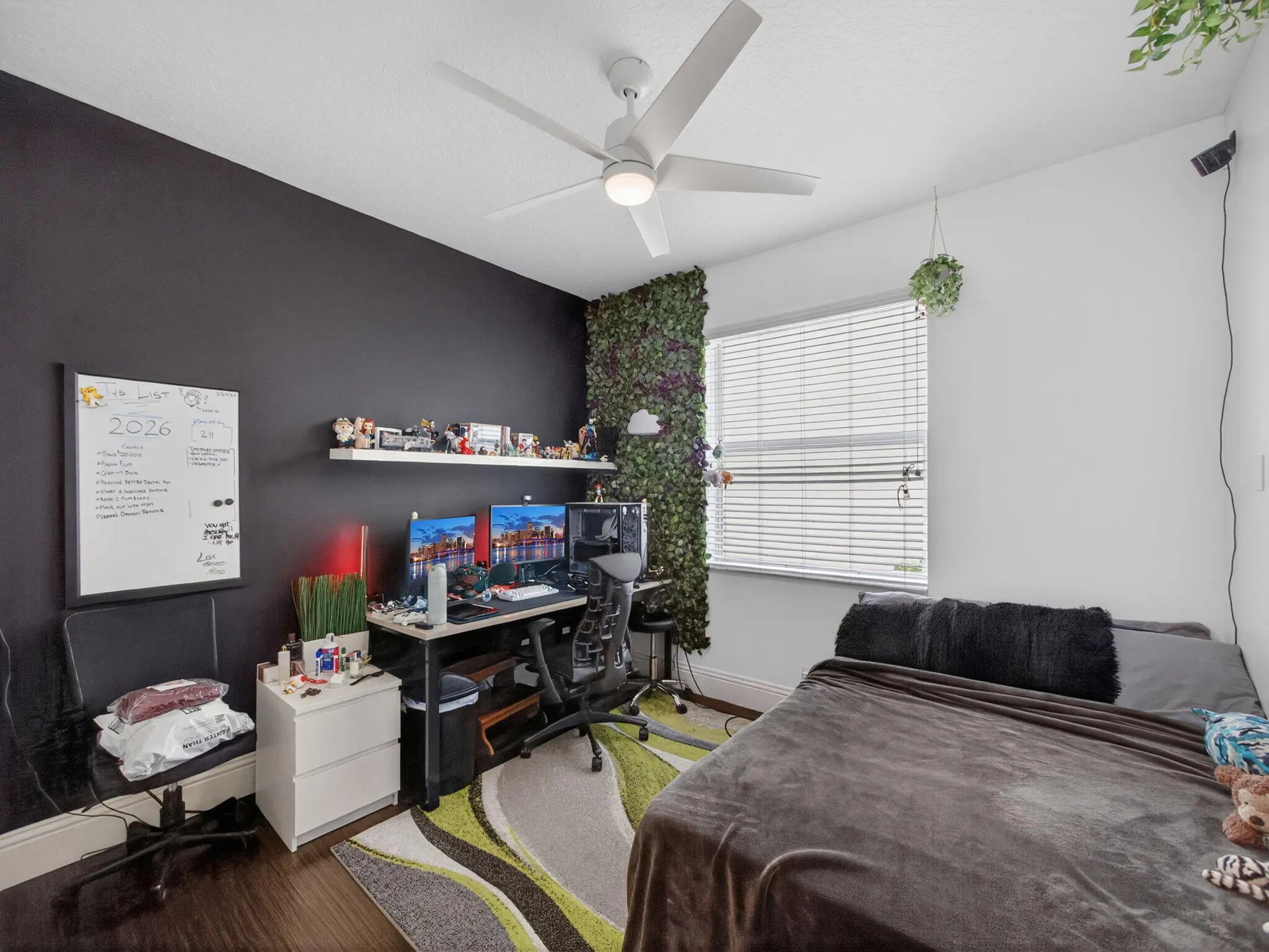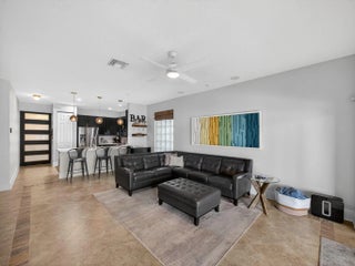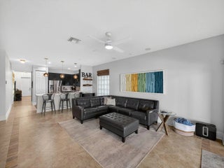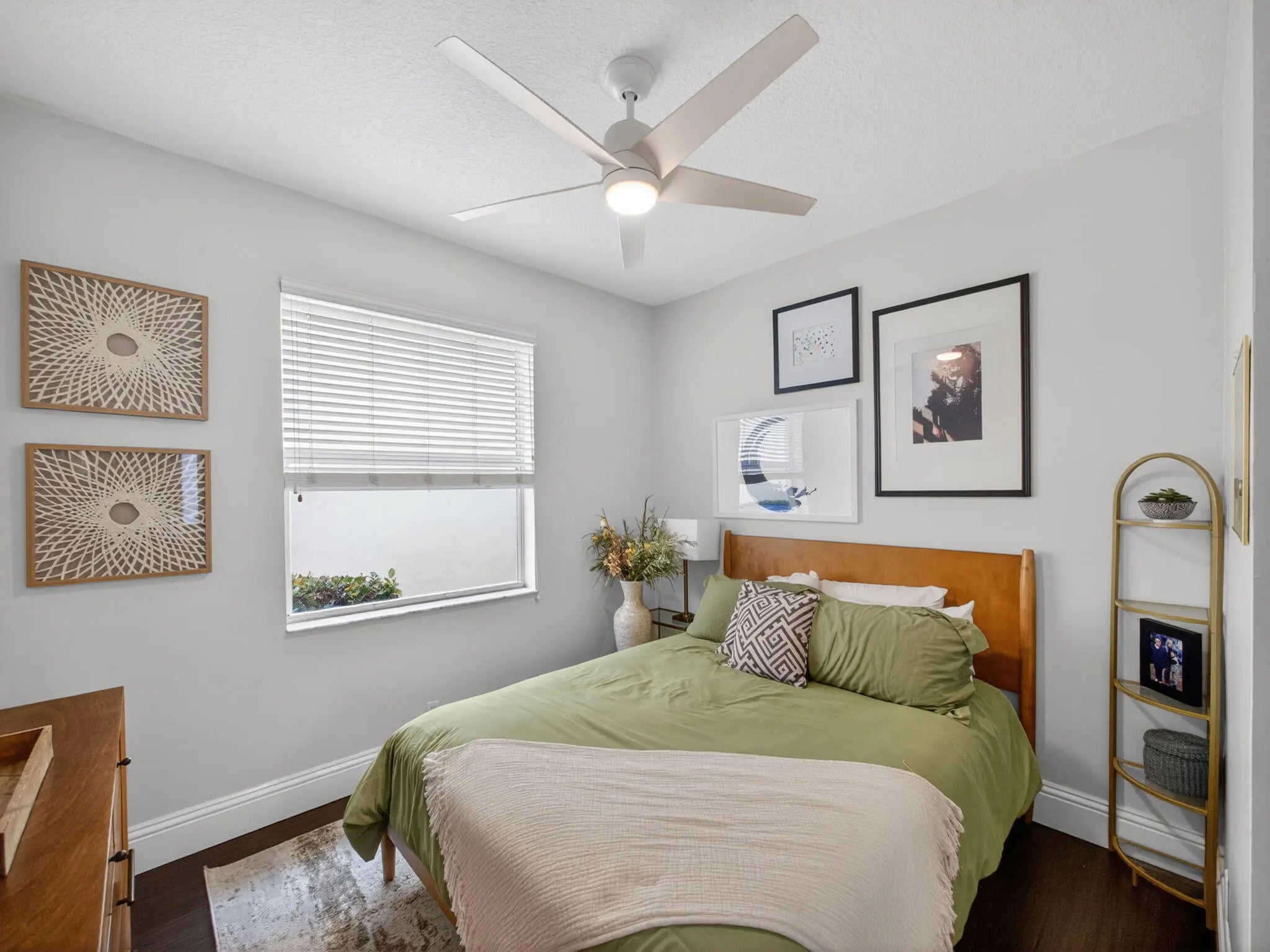 Discover resort-style living in this beautifully upgraded 3-bedroom, 2 bath, 2-car garage lakefront home, complete with a private tropical pool and 2019 new metal roof. Set in the gated community of Palm Beach Plantation, this home blends elegant design with everyday comfort. Step inside to a formal living and dining room that leads into a spacious, remodeled kitchen featuring shimmering quartz countertops, stainless steel appliances, an oversized island with seating, and an effortless flow into the open great room. The great room is anchored by custom built-in entertainment cabinetry and offers panoramic views of the sparkling pool and tranquil lake. The large main suite is a serene retreat with a coffered ceiling, two walk-in closets, and a sweeping view of the pool and water. The spa-style main bath includes dual sinks, a generous walk-in shower, and a relaxing soaking tub. Step outside to your backyard oasis, where a covered lanai provides shaded comfort, enhanced by a Sun Seeker electric awning for extra coverage and an electric remote-controlled hurricane screen for year-round protection. Beyond the lanai, a heated tropical pool with a sun shelf, bubbler, and cascading waterfalls sits on a gorgeous travertine deck overlooking the lake. The yard is fenced and features artificial pet-friendly turf with French drains for easy maintenance. Palm Beach Plantation offers resort-style amenities including a grand clubhouse, fitness center, tropical community pool, tennis, playground, kitchen facilities, and more. The location is unbeatable close to shopping, dining, top schools, and major highways for easy commuting. This home is the perfect blend of luxury, comfort, and the ultimate Florida lifestyle.