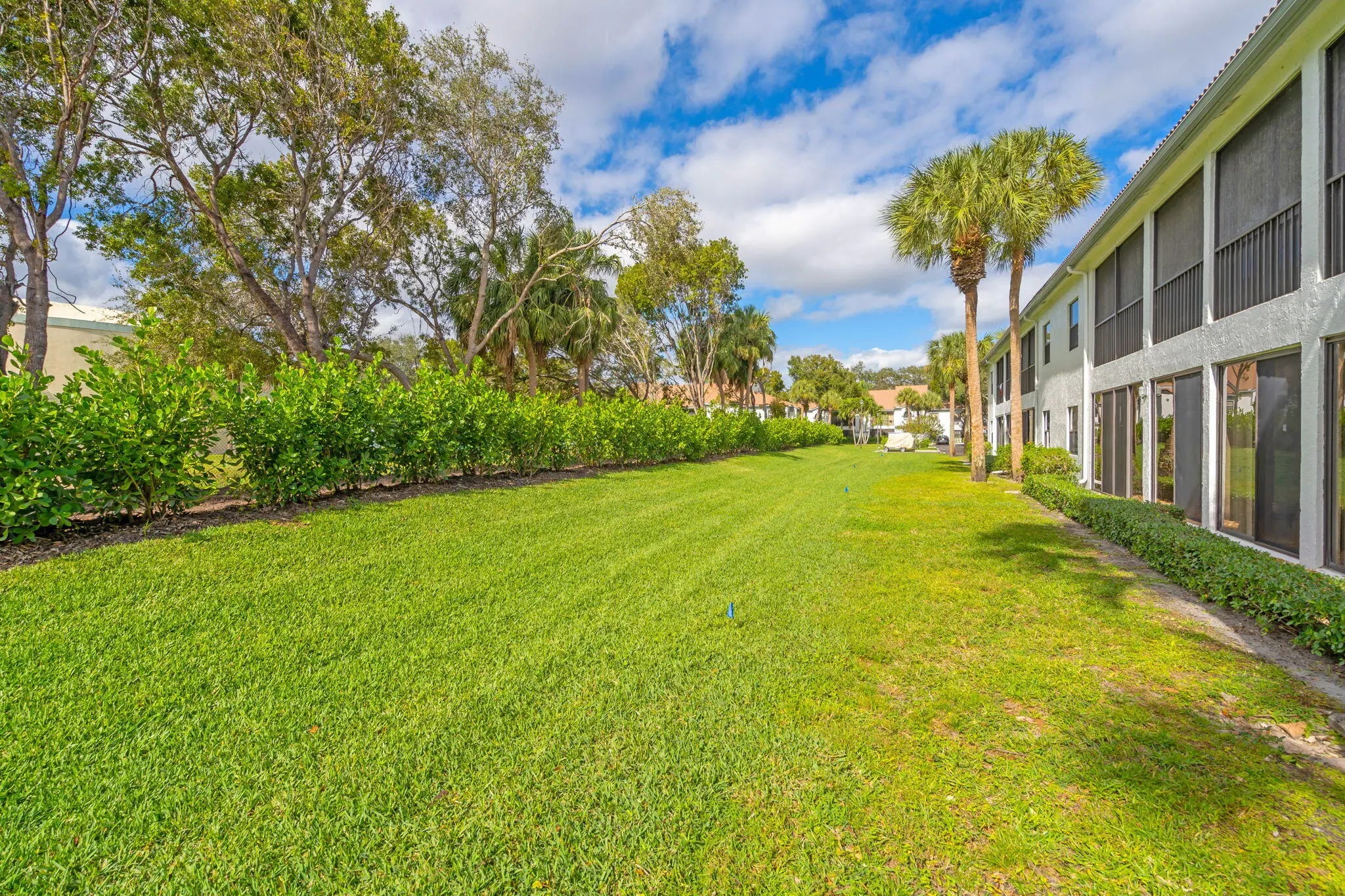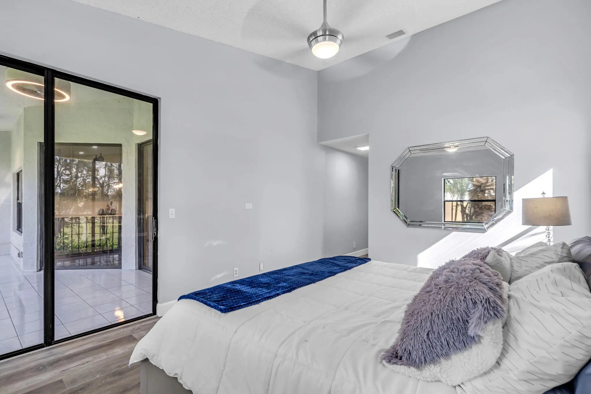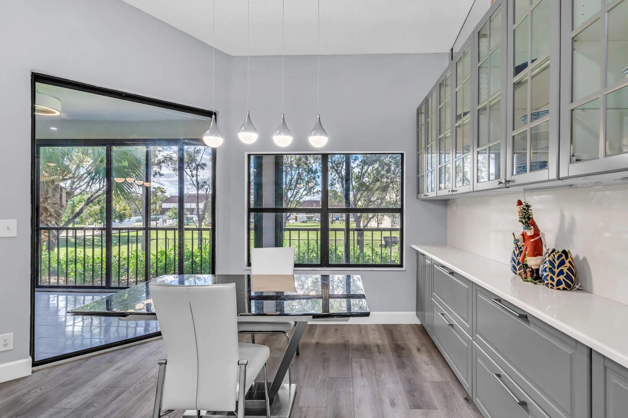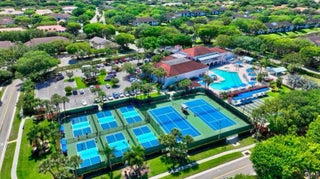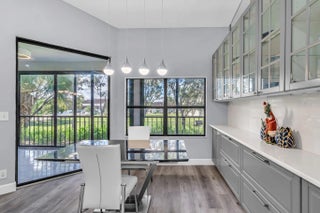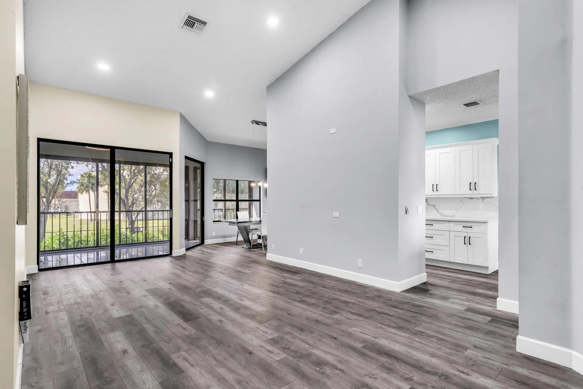 Welcome to refined South Florida living in this premier corner-unit Sorrento model—the largest carriage home within the prestigious, guard-gated Platina community. Offering 1,846 sq ft under air and 2,095 total sq ft, this elegant two-story residence features 3 bedrooms, 2 bathrooms, and an attached 1-car garage, delivering the comfort of a single-family home with the convenience of condominium living. Filled with natural light and expansive views of Florida's breathtaking sunset skies, the home showcases soaring vaulted ceilings, recessed lighting, and waterproof luxury vinyl flooring throughout. The expansive living and dining areas are ideal for entertaining and enhanced by custom dining built-ins that add both sophistication and functionality. The renovated galley kitchen features quartz countertops, stainless steel appliances, abundant cabinetry, a breakfast area, and a formal dining space overlooking the private backyard. A desirable split floor plan provides exceptional privacy. The luxurious primary suite offers access to a screened and glass-enclosed balcony, a custom walk-in closet, and a spa-inspired en-suite bath with dual vanities, a soaking tub, a walk-in shower, and a private water closet with natural light, creating a true retreat-like experience. The second bedroom includes a custom closet, while elegant double doors open to a generously sized third bedroomideal for guests, family, or a home office. Enjoy tranquil garden views, spectacular sunset backdrops, and the rare convenience of being just steps from a satellite pool. Platina delivers true resort-style living with a newly renovated 20,000-square-foot clubhouse, café, theater, fitness center with solarium and dry sauna, billiards, card and game rooms, library, and a vibrant social calendar. Amenities include a resort-style pool, multiple satellite pools, tennis, pickleball, bocce ball, and more. The association fee covers exterior maintenance, roof repairs, water, cable, internet, pest control, and securityowners pay only electric. No age restrictions. Ideally located near top-rated schools, the Turnpike, I-95, Palm Beach International Airport, and South Florida's renowned beaches.