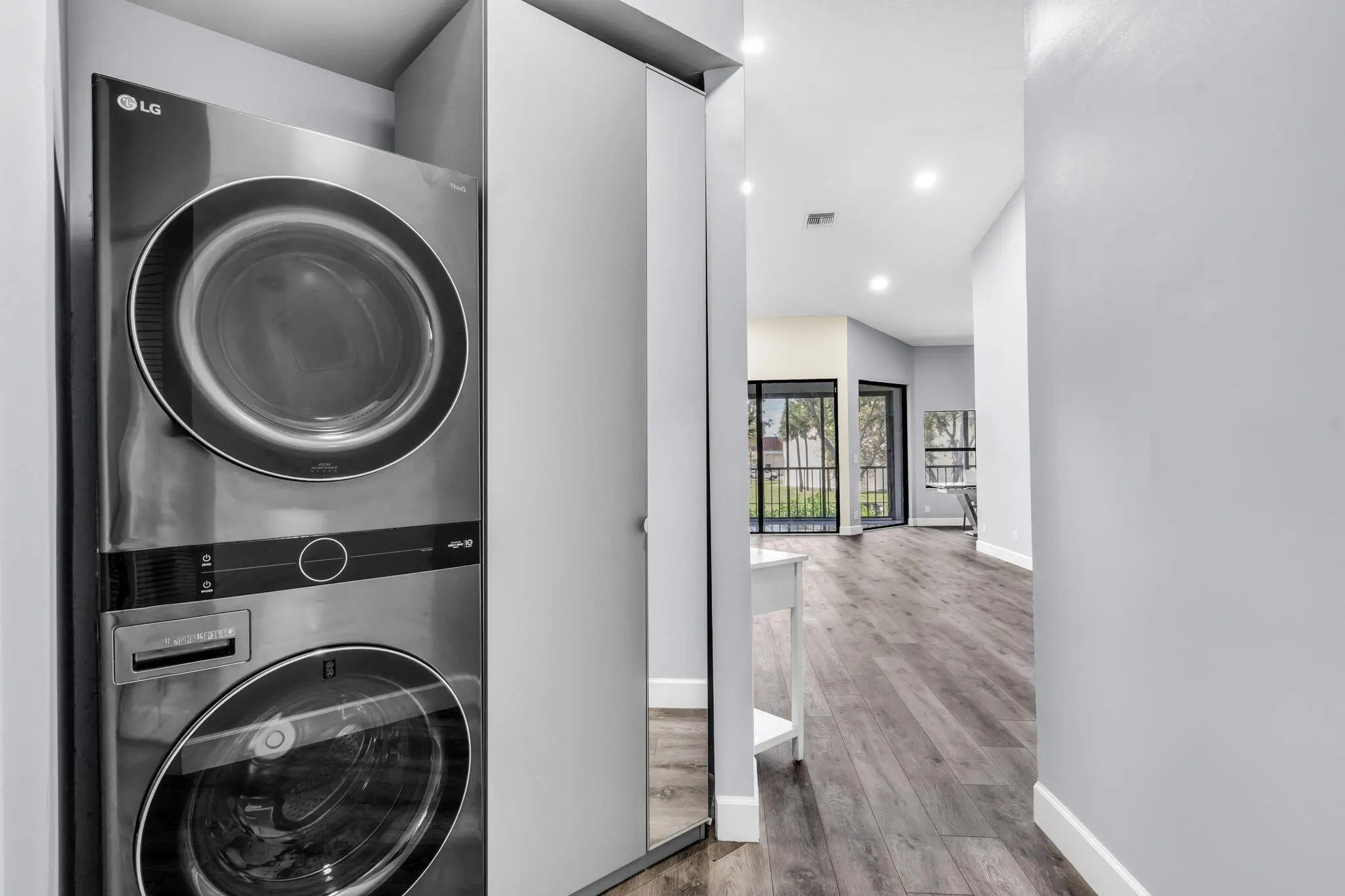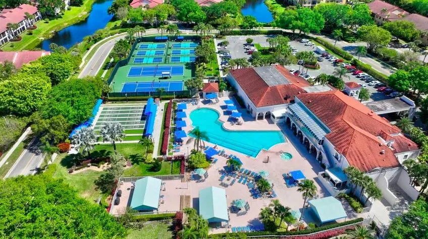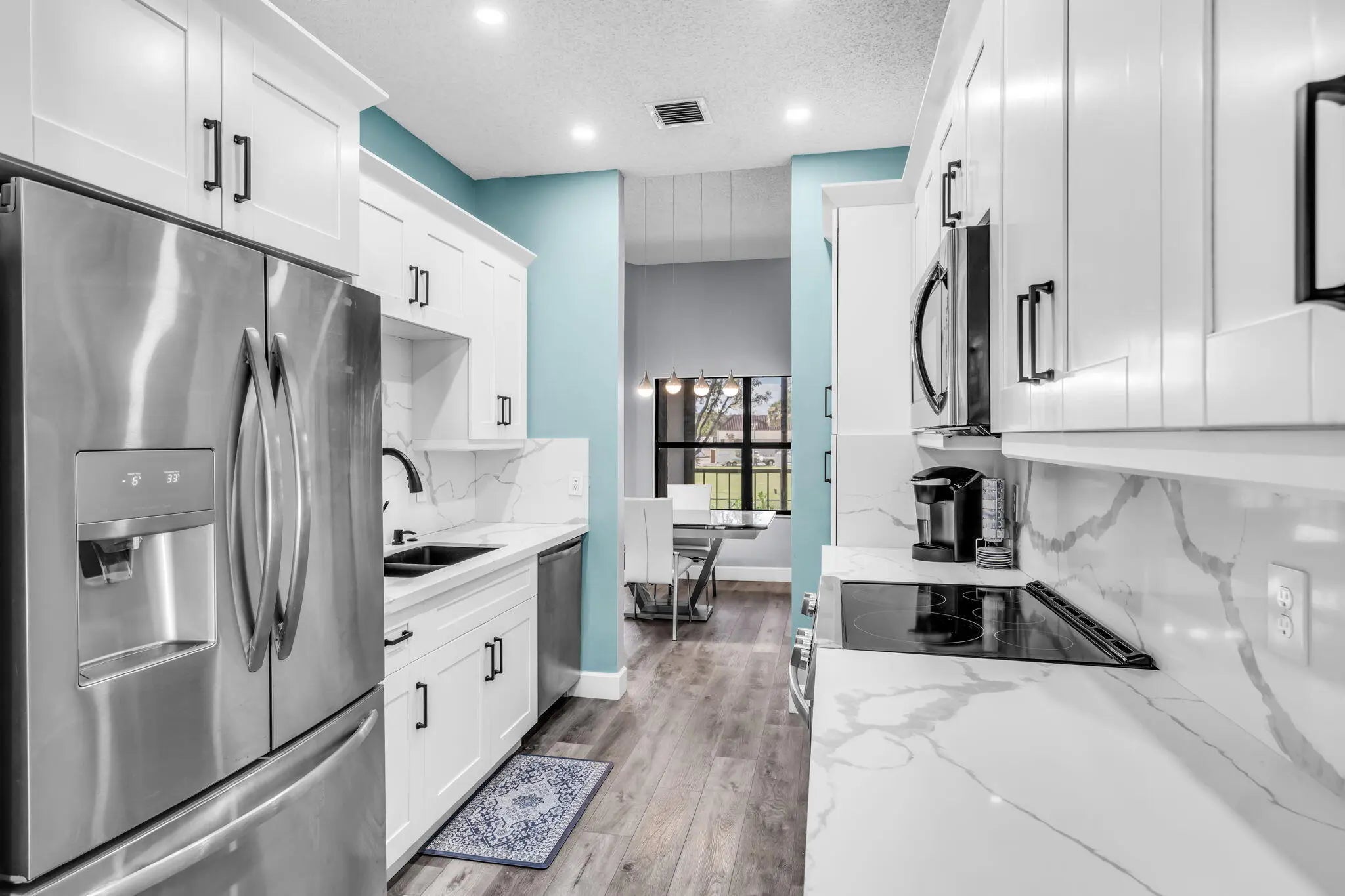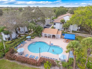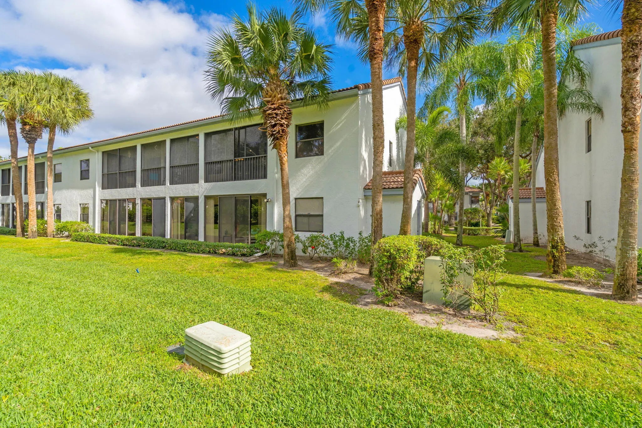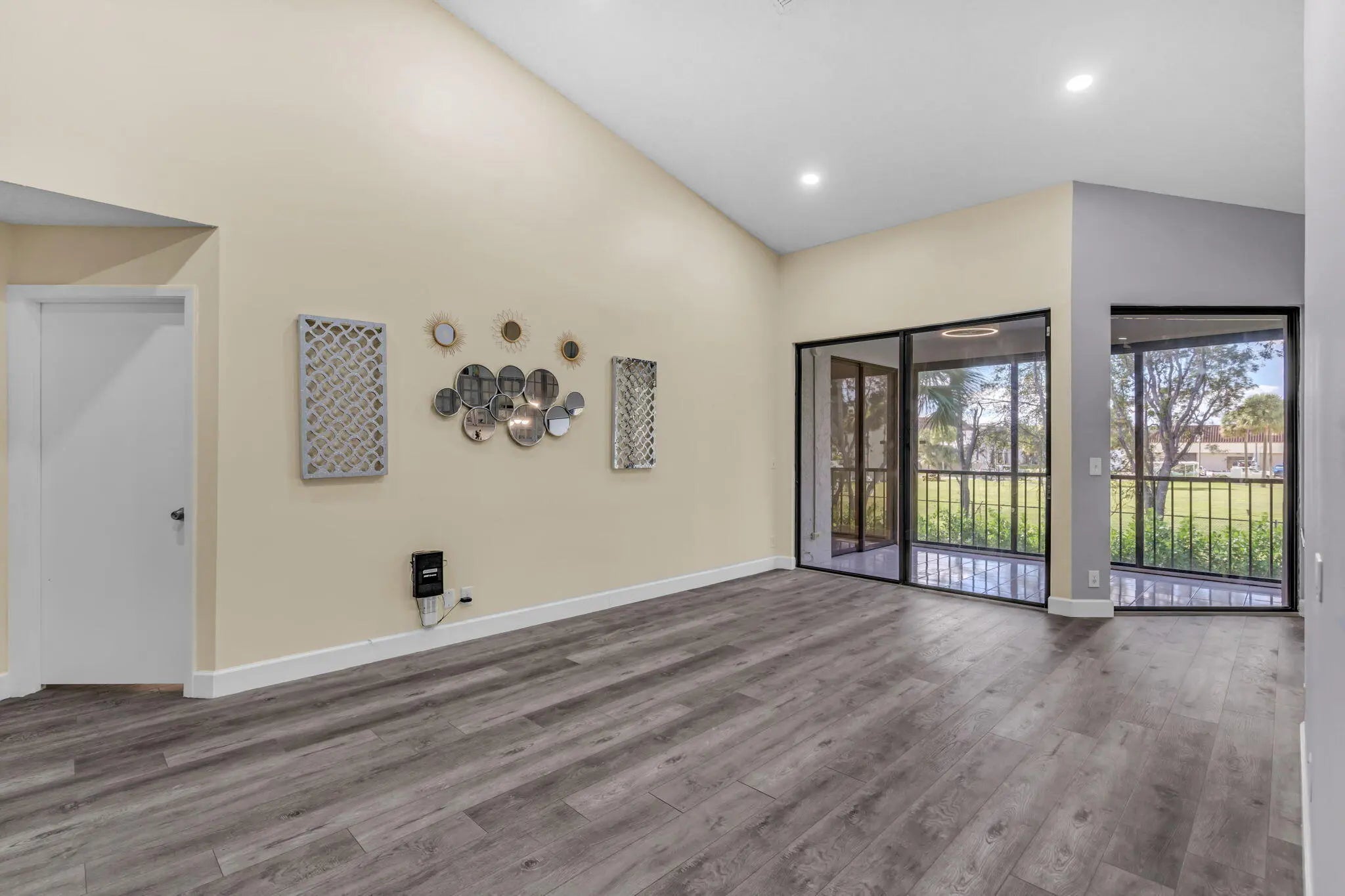 Welcome to refined South Florida living in this premier corner-unit Sorrento model—the largest carriage home within the prestigious, guard-gated Platina community. Offering 1,846 sq ft under air and 2,095 total sq ft, this elegant two-story residence features 3 bedrooms, 2 bathrooms, and an attached 1-car garage, delivering the comfort of a single-family home with the convenience of condominium living. Filled with natural light and expansive views of Florida's breathtaking sunset skies, the home showcases soaring vaulted ceilings, recessed lighting, and waterproof luxury vinyl flooring throughout. The expansive living and dining areas are ideal for entertaining and enhanced by custom dining built-ins that add both sophistication and functionality. The renovated galley kitchen features quartz countertops, stainless steel appliances, abundant cabinetry, a breakfast area, and a formal dining space overlooking the private backyard. A desirable split floor plan provides exceptional privacy. The luxurious primary suite offers access to a screened and glass-enclosed balcony, a custom walk-in closet, and a spa-inspired en-suite bath with dual vanities, a soaking tub, a walk-in shower, and a private water closet with natural light, creating a true retreat-like experience. The second bedroom includes a custom closet, while elegant double doors open to a generously sized third bedroomideal for guests, family, or a home office. Enjoy tranquil garden views, spectacular sunset backdrops, and the rare convenience of being just steps from a satellite pool. Platina delivers true resort-style living with a newly renovated 20,000-square-foot clubhouse, café, theater, fitness center with solarium and dry sauna, billiards, card and game rooms, library, and a vibrant social calendar. Amenities include a resort-style pool, multiple satellite pools, tennis, pickleball, bocce ball, and more. The association fee covers exterior maintenance, roof repairs, water, cable, internet, pest control, and securityowners pay only electric. No age restrictions. Ideally located near top-rated schools, the Turnpike, I-95, Palm Beach International Airport, and South Florida's renowned beaches.
