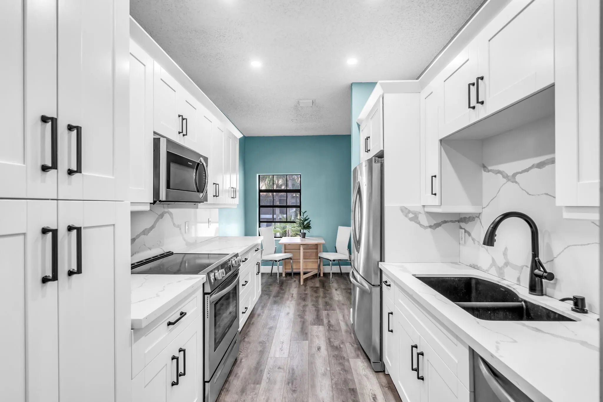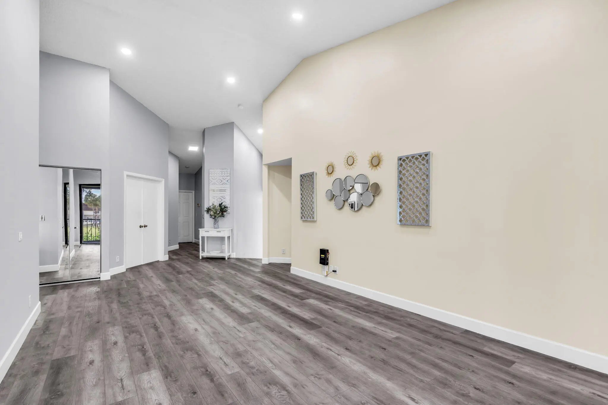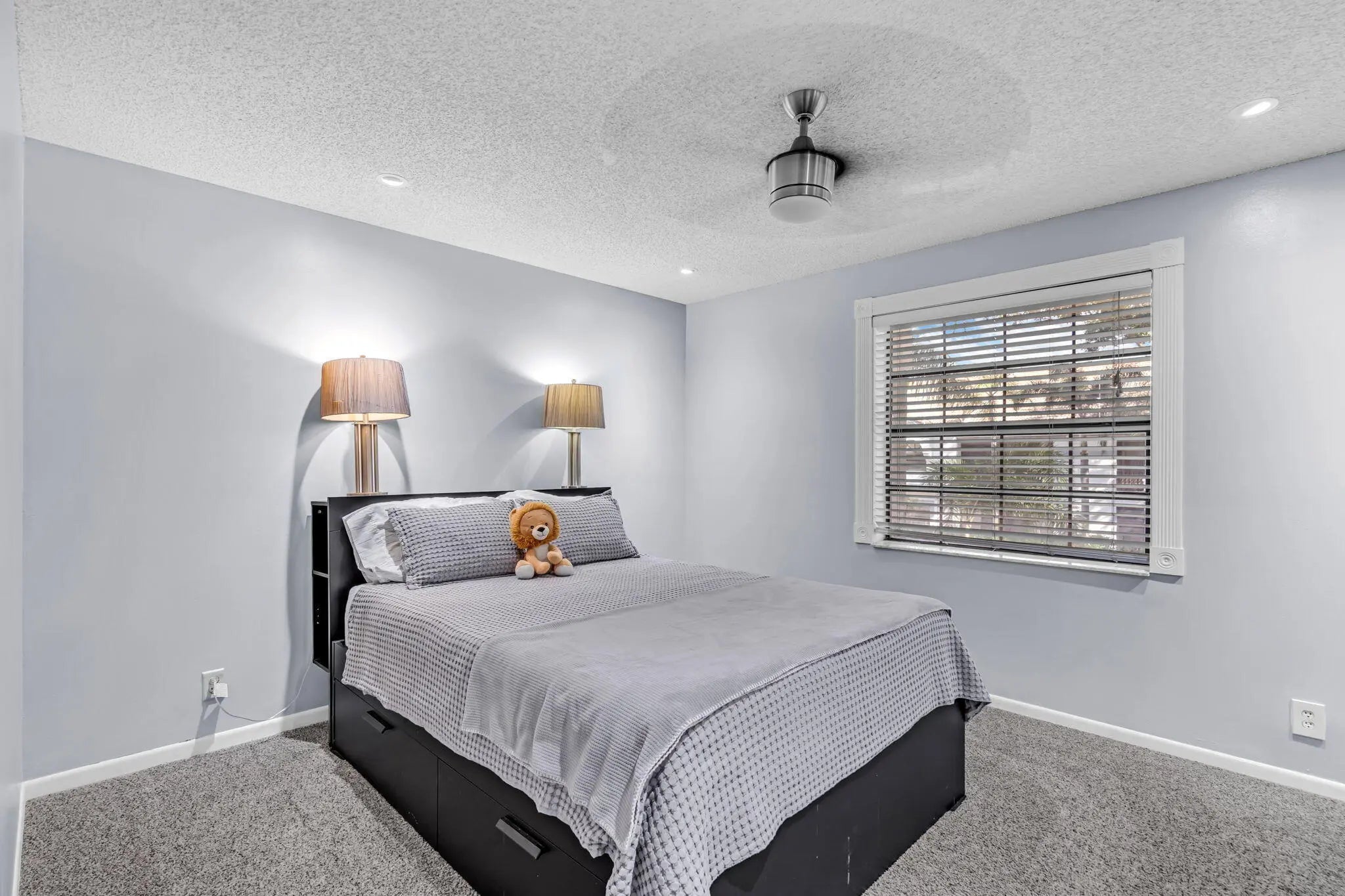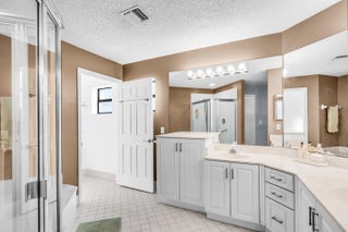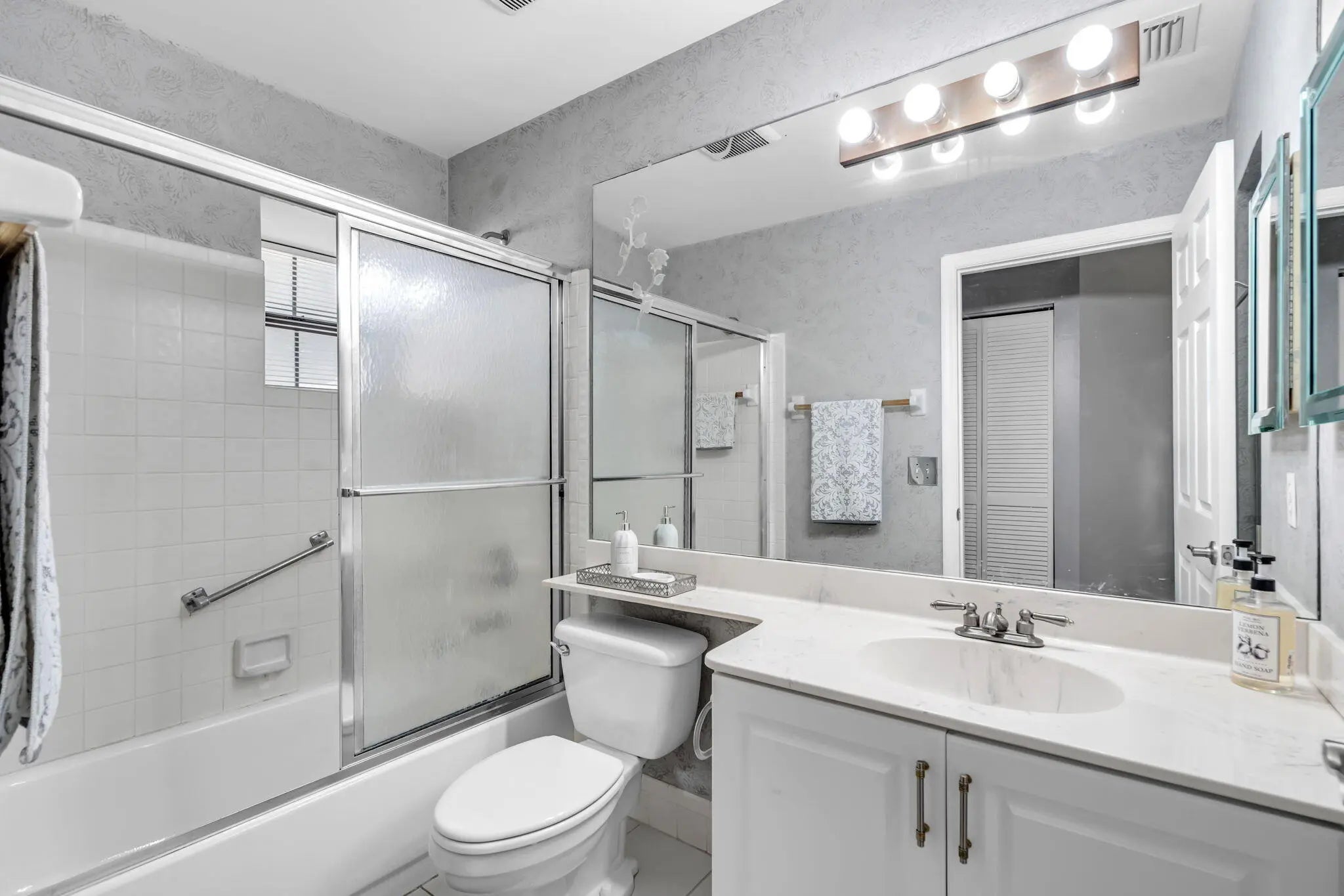 Welcome to refined South Florida living in this premier corner-unit Sorrento model—the largest carriage home within the prestigious, guard-gated Platina community. Offering 1,846 sq ft under air and 2,095 total sq ft, this elegant two-story residence features 3 bedrooms, 2 bathrooms, and an attached 1-car garage, delivering the comfort of a single-family home with the convenience of condominium living. Filled with natural light and expansive views of Florida's breathtaking sunset skies, the home showcases soaring vaulted ceilings, recessed lighting, and waterproof luxury vinyl flooring throughout. The expansive living and dining areas are ideal for entertaining and enhanced by custom dining built-ins that add both sophistication and functionality. The renovated galley kitchen features quartz countertops, stainless steel appliances, abundant cabinetry, a breakfast area, and a formal dining space overlooking the private backyard. A desirable split floor plan provides exceptional privacy. The luxurious primary suite offers access to a screened and glass-enclosed balcony, a custom walk-in closet, and a spa-inspired en-suite bath with dual vanities, a soaking tub, a walk-in shower, and a private water closet with natural light, creating a true retreat-like experience. The second bedroom includes a custom closet, while elegant double doors open to a generously sized third bedroomideal for guests, family, or a home office. Enjoy tranquil garden views, spectacular sunset backdrops, and the rare convenience of being just steps from a satellite pool. Platina delivers true resort-style living with a newly renovated 20,000-square-foot clubhouse, café, theater, fitness center with solarium and dry sauna, billiards, card and game rooms, library, and a vibrant social calendar. Amenities include a resort-style pool, multiple satellite pools, tennis, pickleball, bocce ball, and more. The association fee covers exterior maintenance, roof repairs, water, cable, internet, pest control, and securityowners pay only electric. No age restrictions. Ideally located near top-rated schools, the Turnpike, I-95, Palm Beach International Airport, and South Florida's renowned beaches.