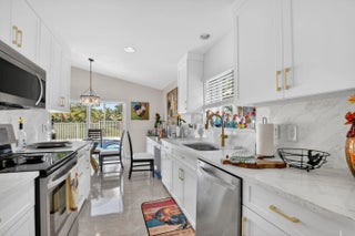This beautifully renovated and meticulous 3BR/3BA pool home with stunning lake & priceless golf course views is located in the prestigious Boca Woods Country Club. Enjoy serene views of the redesigned Rees Jones Woods golf course from your private, fenced in pool. The residence features porcelain & laminate flooring, stainless steel appliances, full cabana bath with outdoor shower, NEW kitchen cabinets, countertops & backsplash, NEW A/C system and pool heater. Complete hurricane impact windows & doors, PLUS accordion shutters provide double protection for peace of mind. Boca Woods Country Club offers exceptional amenities with two championship golf courses, Har-Tru tennis courts, pickleball, state-of-the-art fitness center, clubhouse, and fine dining. LUXURY LIVING at OUTSTANDING VALUE!