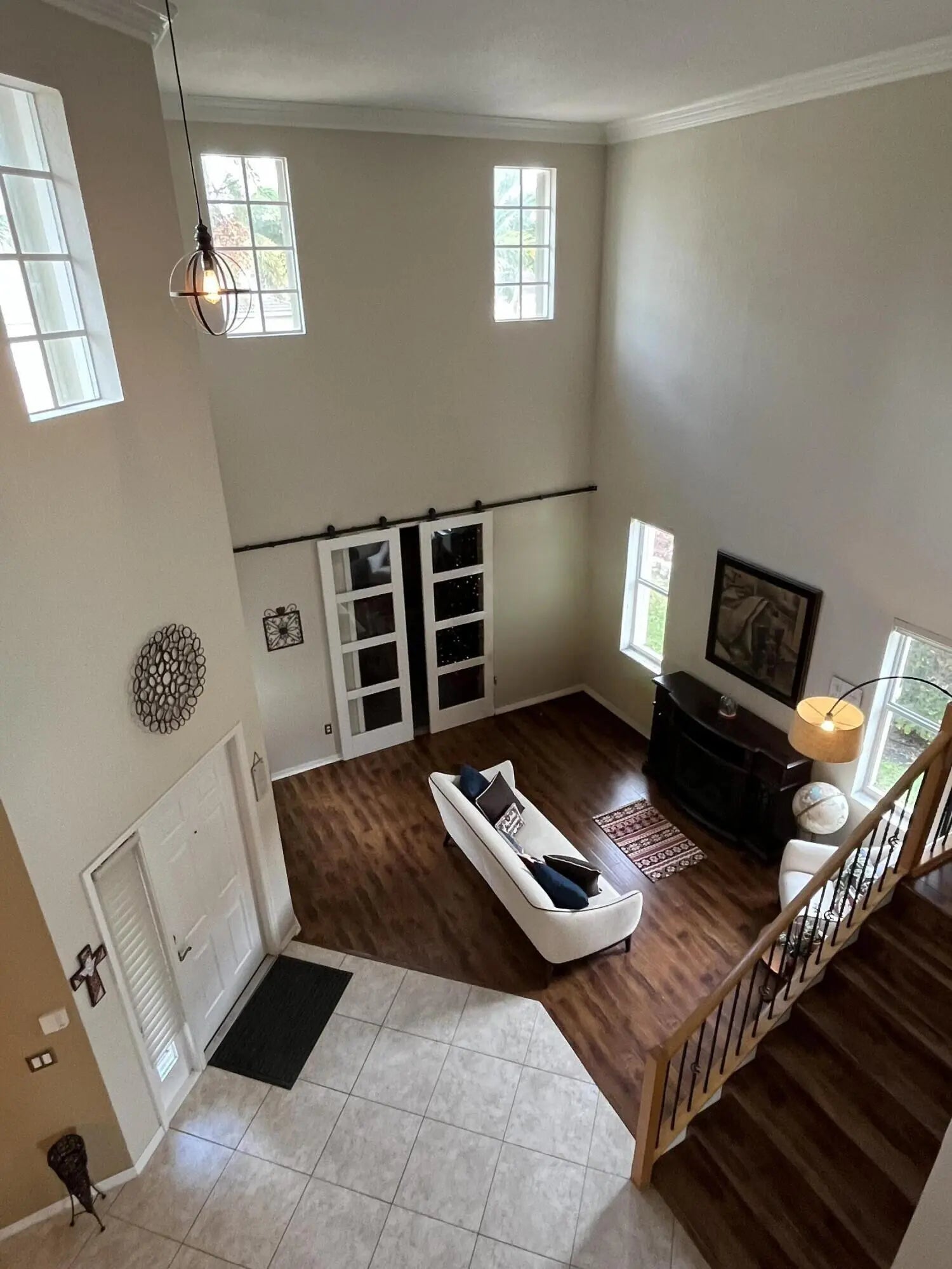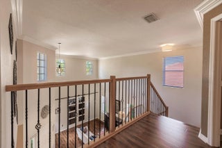 Welcome to this beautifully designed two-story home, offering 5 spacious bedrooms and 3 full bathrooms in a serene, gated community of only 200 homes. The 5th bedroom was opened up to create a large master suite, but can be converted to 5th bedroom again. Nestled on a premium waterfront lot, this property boasts breathtaking lake views that can be enjoyed from the comfort of your living spaces and backyard with fruits trees. The thoughtfully designed floor plan includes a downstairs bedroom with its own bathroom—perfect for guests or multi-generational living. Upstairs, you'll find four additional bedrooms, including a luxurious primary suite with panoramic lake views. 3rd car garage workshop was converted to an extra room in the home, (SEE MORE for ADDT'L DESC.) 6 inch crown moldings throughout the house, except bedrooms and upstairs bathrooms. New A/C installed 1/24/20. The kitchen opens seamlessly into the living and dining areas, creating an inviting space for entertaining. Outside, the backyard offers a tranquil setting to relax and soak in the serene waterfront ambiance. Sunrises and sunsets are breathtaking. The way the property sits, from the backyard, you get the sunrise to your left and the sunset to your right. The back terrace has a convenient roll-down screen to keep the mosquitos out, and maintain a comfortable temperature. A spacious three-car garage provides ample storage, and the community amenities ensure a secure and upscale lifestyle. This home combines elegance, comfort, and a prime location, making it a rare gem in the much sought after Stonehaven community. Life here is unique. Neighbors are welcoming. Golf carts allowed. Property also has a built-in pest control that provides extermination through an exterior wall port on both sides of the property. Extra large walk-in pantry which can be converted into a great Chef's Pantry. HOA includes alarm monitoring, cable tv with 500 + channels, high speed internet, manned guard gate, pool, clubhouse, fitness room, and pickleball and tennis courts. Garages use a wireless garage opener app, and also 2 remotes. A/C is from January of 2020, and it gets maintenance every 6 months. Owner has hard copies of all original plans (interior and exterior), plus pictures from original build, and also flash drive with photos. Don't miss the opportunity to make this stunning Florida lakefront property your new home!