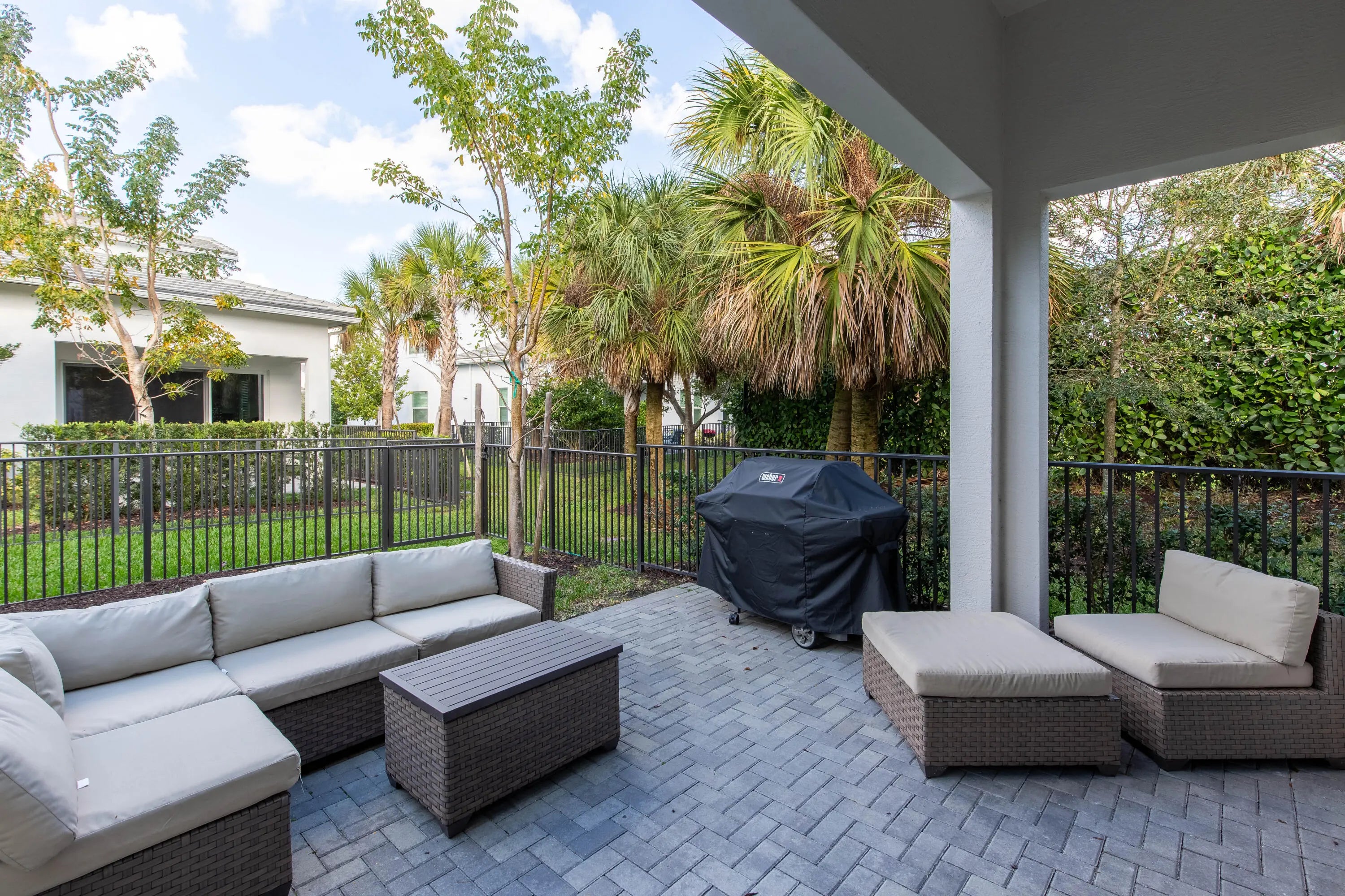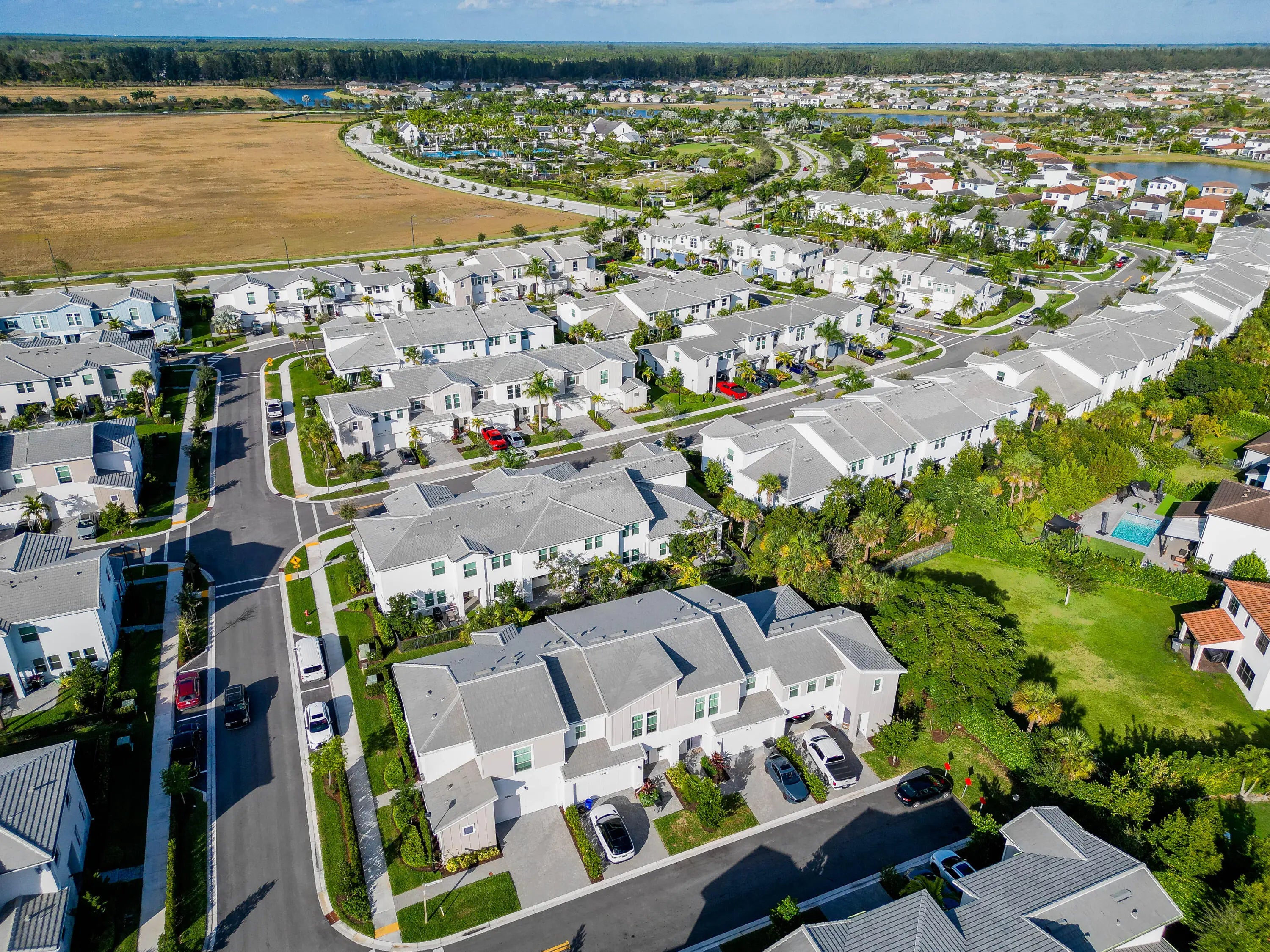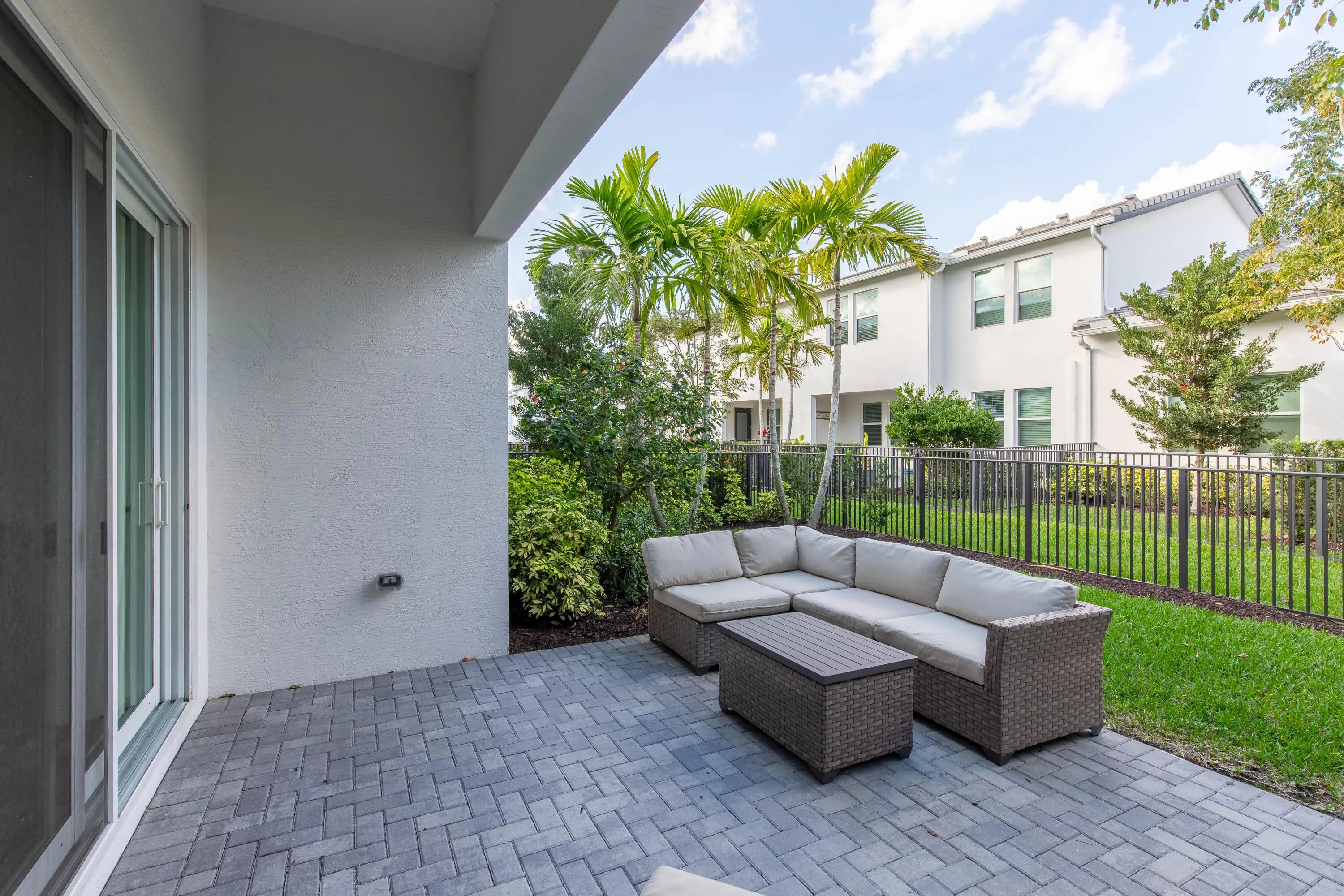 Imagine coming home to a like new, fully furnished and thoughtfully stocked townhome with the primary bedroom conveniently located on the main floor and a spacious 2 car garage- a place designed for comfort, ease and truly effortless living from the moment you arrive. This beautiful, appointed home features a bright open layout with curated furnishings and fully equipped kitchen, allowing you to settle in immediate. End unit provides extra parking and privacy. Westlake is a new town and surrounded by great shopping, entertaining, above average schools. Community boasts resort style amenities; lagoon pool, adult lap pool, adventure park featuring a soft surface splash pad, bocce courts, basketball courts, concert pavilion. A great place to call home, and an unparallel lifestyle awaits you The main floor primary suite offers a peaceful private retreat-perfect for unwinding at the end of the day. Step outside to your fenced backyard and covered patio, ideal for morning coffee or relaxed evenings outdoors. Landscaping is included in the monthly rent, so your time stays yours. The gated community adds an extra layer of privacy and peace of mind. Located in the sought-after Westlake master-planned community, you'll enjoy a resort style lifestyle with heated pools year-round, basketball courts, a dog park, scenic ponds, and miles of walking paths to explore and enjoy. This isn't just a rental-it's a lifestyle in one of Florida's most desirable communities. All you have to do is move in and enjoy.