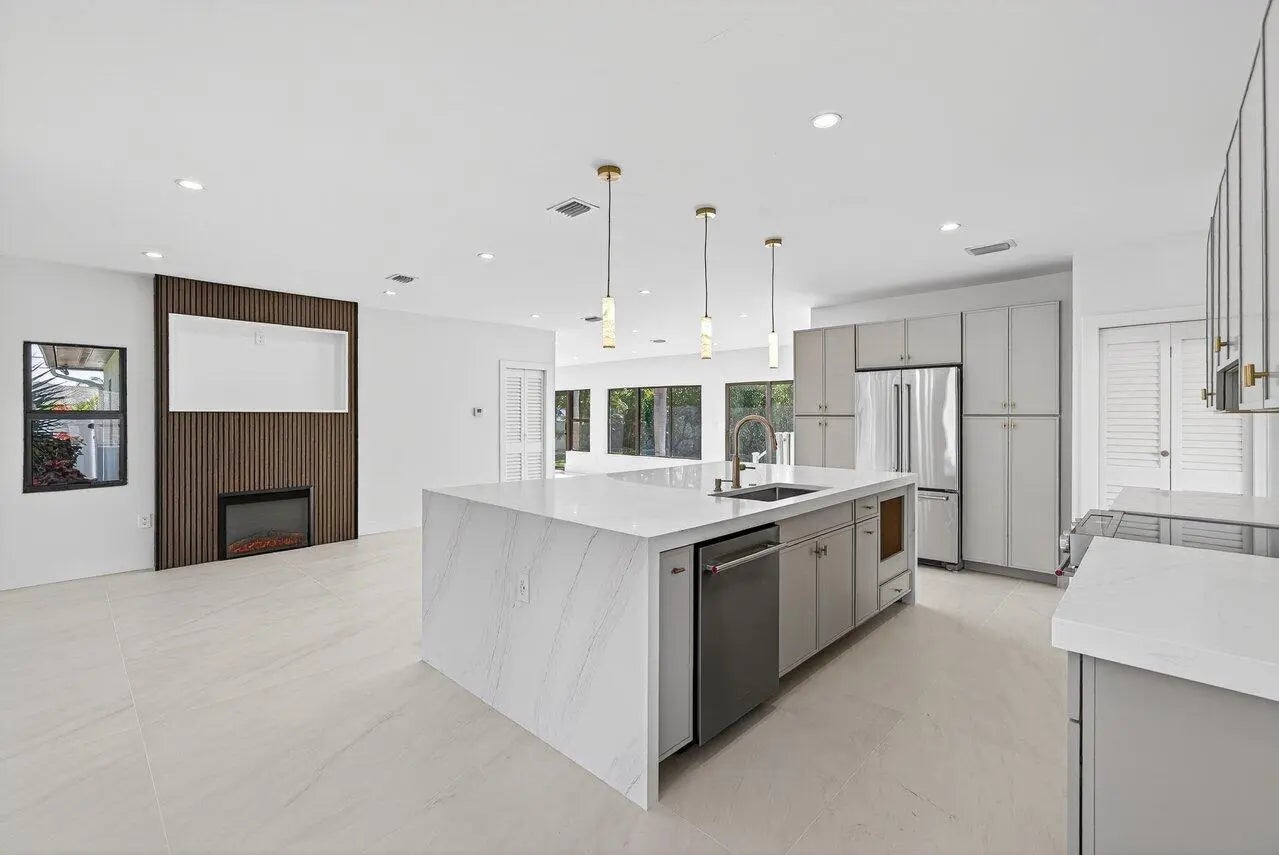 Welcome to 1004 Avon Road, a completely renovated 2025 residence offering the feel of new construction in the heart of Pineapple Park, West Palm Beach. Thoughtfully redesigned from top to bottom, this exceptional home sits on an oversized lot and delivers modern design, flexible living, and outstanding indoor-outdoor flow. The home features four bedrooms and three bathrooms, including two en-suite bedrooms, ideal for privacy, guests, or multigenerational living. Bright, open living spaces are filled with natural light and connect seamlessly to a spacious chef's kitchen with a large center island, ample cabinetry, and generous storage—perfect for entertaining and everyday living. Step outside to a private backyard oasis with a saltwater pool, shaded pergola, and a designated area plumbed for a summer kitchen, creating an ideal setting for outdoor entertaining. The expansive lot provides privacy, flexibility, and room to enjoy true South Florida living. This move-in-ready home also offers ample parking and storage and is zoned for Palm Beach Public Elementary School, a highly sought-after option in the area. deally located just minutes from Palm Beach International Airport (PBI), CityPlace (The Square), The Kravis Center for the Performing Arts, and the Palm Beach County Convention Center, this home places you at the center of Downtown West Palm Beach while maintaining the charm of a quiet residential neighborhood. Enjoy easy access to Palm Beach Island, beaches, dining, shopping, cultural attractions, and major roadways.