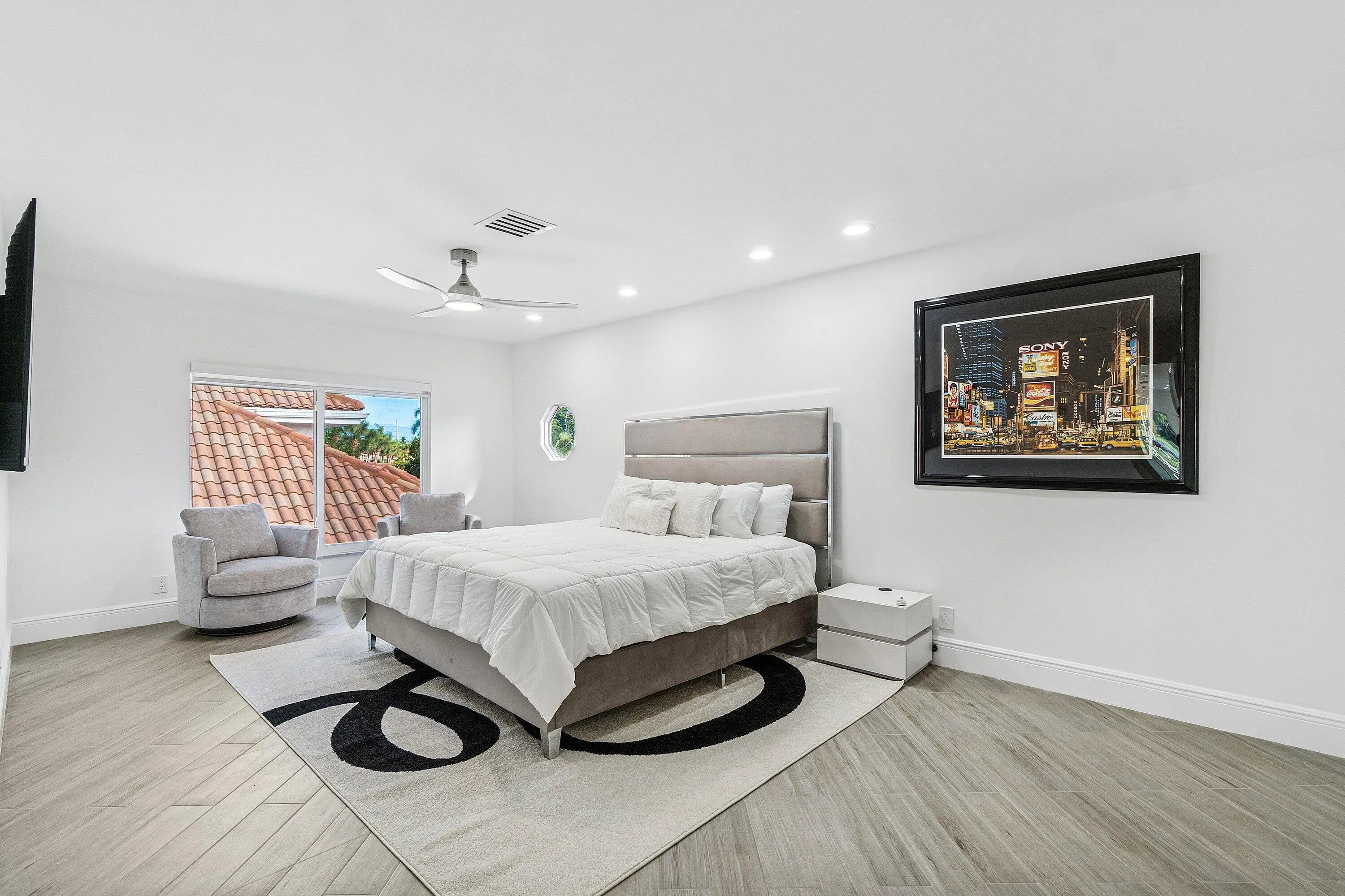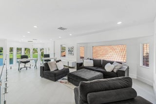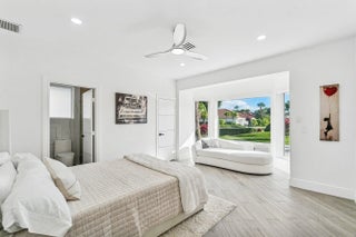 A striking, newly renovated two-story residence showcasing refined modern design, elevated finishes, and sweeping lake and golf course views. This five-bedroom, five-and-a-half-bath home impresses from the moment you enter, with soaring ceilings, a dramatic loft accented by glass railings, and an open, light-filled layout designed for both elegance and comfort. The first floor features a lavish primary suite, two guest bedrooms, a den and three and a half bathrooms. Sleek 24x48 Italian porcelain floors, LED lighting, and curated architectural details flow throughout. The second level offers two additional guest bedrooms, two baths and a spacious loft, perfectly balancing privacy and versatility.. The primary suite is a true sanctuary with his and hers spa-like bathrooms, smart toilets, soaking tub, oversized shower, and infrared sauna. All bathrooms have floating vanities. The living space is anchored by a stunning 20-foot custom fireplace wall, complemented by an LED-lit glass and white oak staircase. The designer kitchen features a custom LED island, Taj Mahal countertops and backsplash, and top-of-the-line WiFi-enabled appliances. Custom closet built-ins throughout add exceptional functionality. Outdoor living is enhanced by an oversized patio and a new pool heater. Additional upgrades include a generator, epoxy garage flooring with EV charger, impact glass throughout, Nest and Ring systems, and a brand-new driveway and walkway nearing completion. Located within the Polo Club, residents enjoy world-class amenities including championship golf, an exceptional pickleball program, state-of-the-art fitness and spa facilities, and multiple dining venues. Mandatory membership required. An extraordinary home, schedule your private showing today!