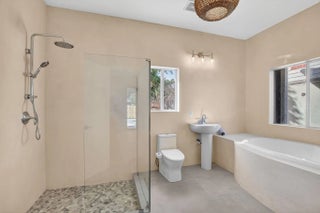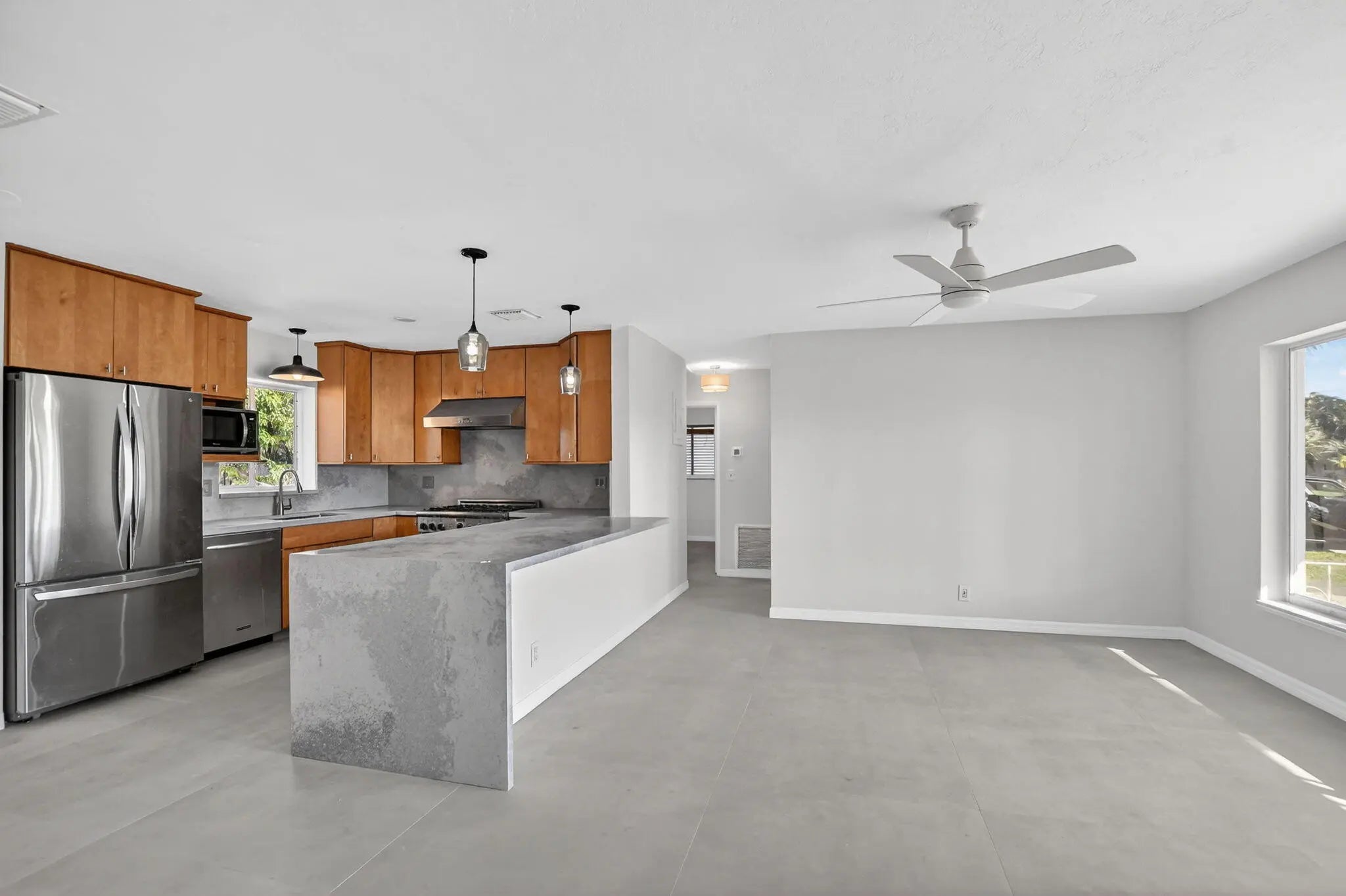 Newly renovated East Boca coastal home near the beach, Mizner, downtown Boca, FAU, dining & shopping. This open-concept, light-filled layout offers modern kitchen, stainless steel appliances, and polished concrete-style quartz countertops, perfect for entertaining or family living. Slate grey oversized modern tile flooring, luxury light fixtures & arch entryway enhances the clean, contemporary feel. Master bathroom features stone walk-in shower with Tulum Chukkum walls, oversized tub + huge walk-in closet. Master bedroom with private entry to pool &abundant natural light. 4th bedroom features private entry & oversized walk-in closet. Enjoy a private backyard retreat with pool/spa (not heated) & tropical landscaping. Quiet residential setting near Boca's best amenities & A+ rated schools