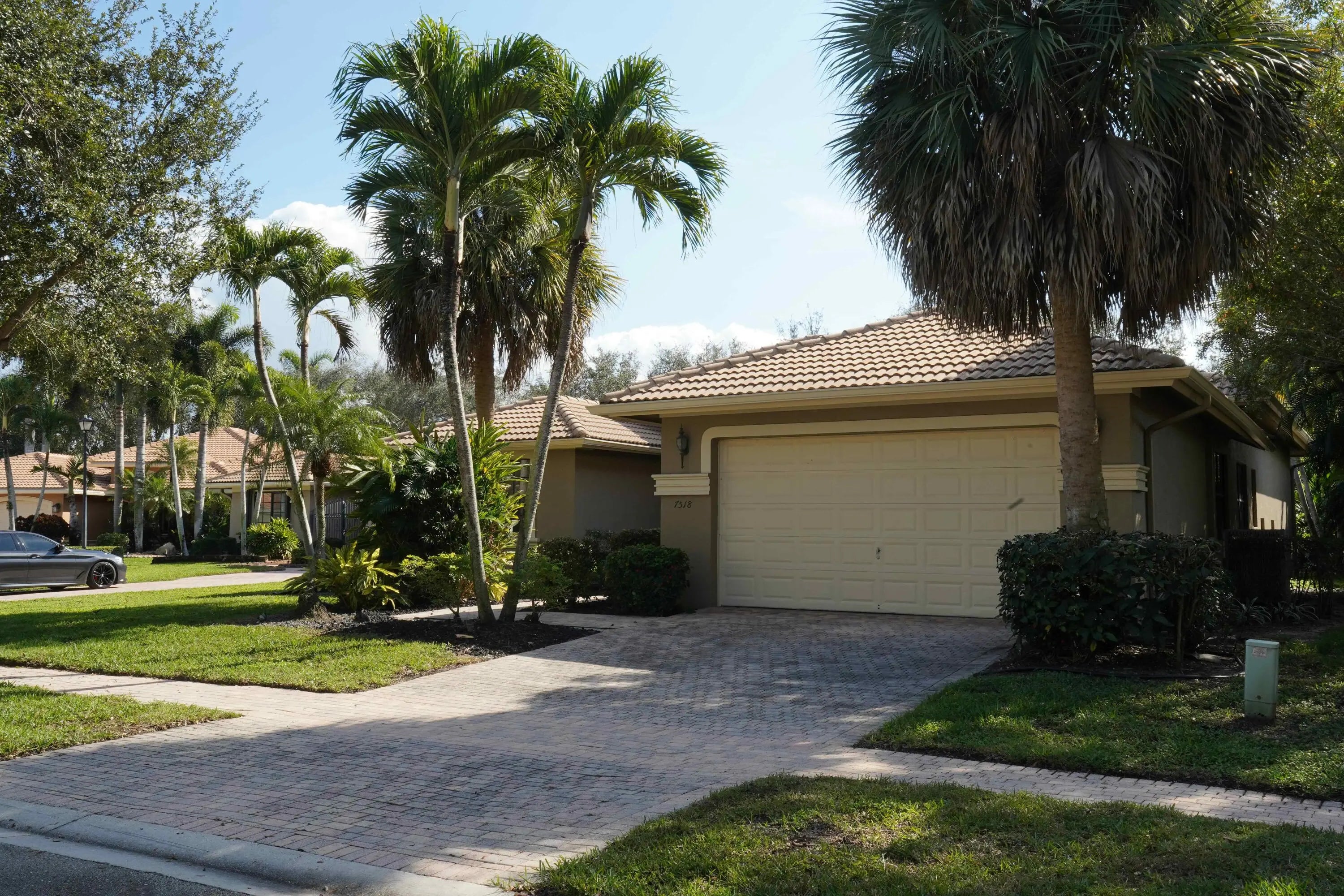 Rare 4-Bedroom Estate on Oversized Lot in the Heart of Tivoli Reserve Experience the pinnacle of 55+ resort-style living in this one-of-a-kind ''Tuscany'' model estate. Set on a premier, oversized lot with lush, tropical landscaping for ultimate privacy, this residence stands apart from any other in the community. While most Tuscany models offer three bedrooms, this home has been thoughtfully expanded to include four full bedrooms plus a versatile den, providing the space and flexibility rarely found in active adult living. Inside, 10-foot ceilings and 16-inch tile flooring create a bright, airy atmosphere. The heart of the home is the chef's kitchen—a stunning focal point designed for entertaining. It features premium in-groove marble countertops, a Bosch stove, a professional-grade cooktop, and a double stainless steel sink. Storage is never an issue with two Frigidaire side-by-side refrigerator/freezers and a spacious bar area that opens to the main living room. The Master Suite is a private sanctuary featuring custom "his and hers" wall units that remain with the home, oversized walk-in closets, and a spa-like bath with a soaking tub and walk-in shower. Sliding doors lead from the master directly to the screened-in back patio, where you can enjoy the tranquil sounds of your private fountain. This home also comes equipped with a brand new a/c. Located in the sought-after Tivoli Reserve, you'll enjoy a vibrant community center with a fitness center, piano lounge, and a lakefront pool. Perfectly positioned in Boynton Beach, you are minutes from pristine beaches, the upscale dining of Mizner Park in Boca Raton, and centrally located between PBI and Fort Lauderdale airports. This is more than a home; it's a lifestyle.