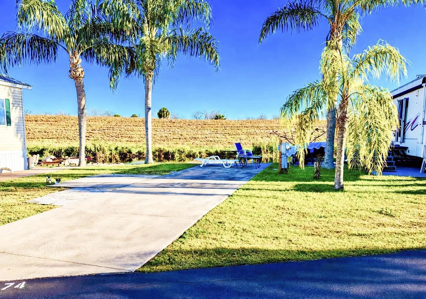 Enjoy winter escapes or full-time retirement at Big O RV Resort. This peaceful waterfront lot is the perfect setting for your RV or park model, offering serene views and a relaxed lifestyle. Located in an active, gated 55+ community, residents enjoy planned activities, on-site management, and an impressive array of amenities, including a heated pool, putting green, shuffleboard, laundry facilities, recreation hall with large screened TV, pool table, basketball court, and a community boat ramp with access to the Rim Canal and Lake Okeechobee. Conveniently located just minutes from shopping, dining, golf courses, and the casino. The adjoining lot is also available for purchase.