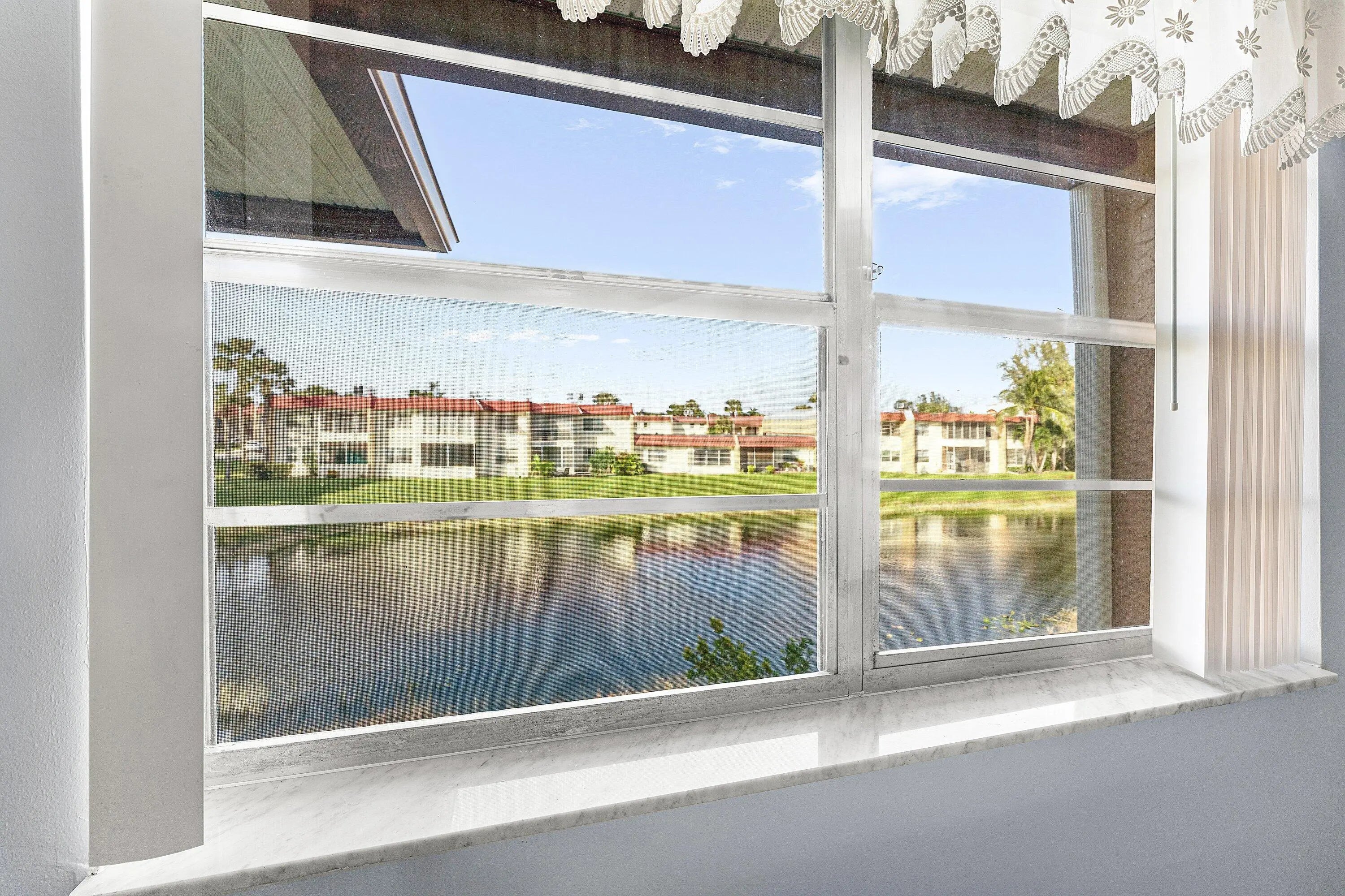 Nicely updated 2bed/2bath top-floor condo with a lake view from each room. Very light and bright condo. Spacious primary bedroom and walk-in closet. Private washer and dryer inside the unit. Pop-corn ceiling removed. Freshly painted. New tankless waterheater, brand new AC. Separate extra storage unit. Located in an active 55+ guard-gated community. Rent includes: cable & internet, water, lawn care, pest control, 24h guard gate, several pools, billiard, and so much more.