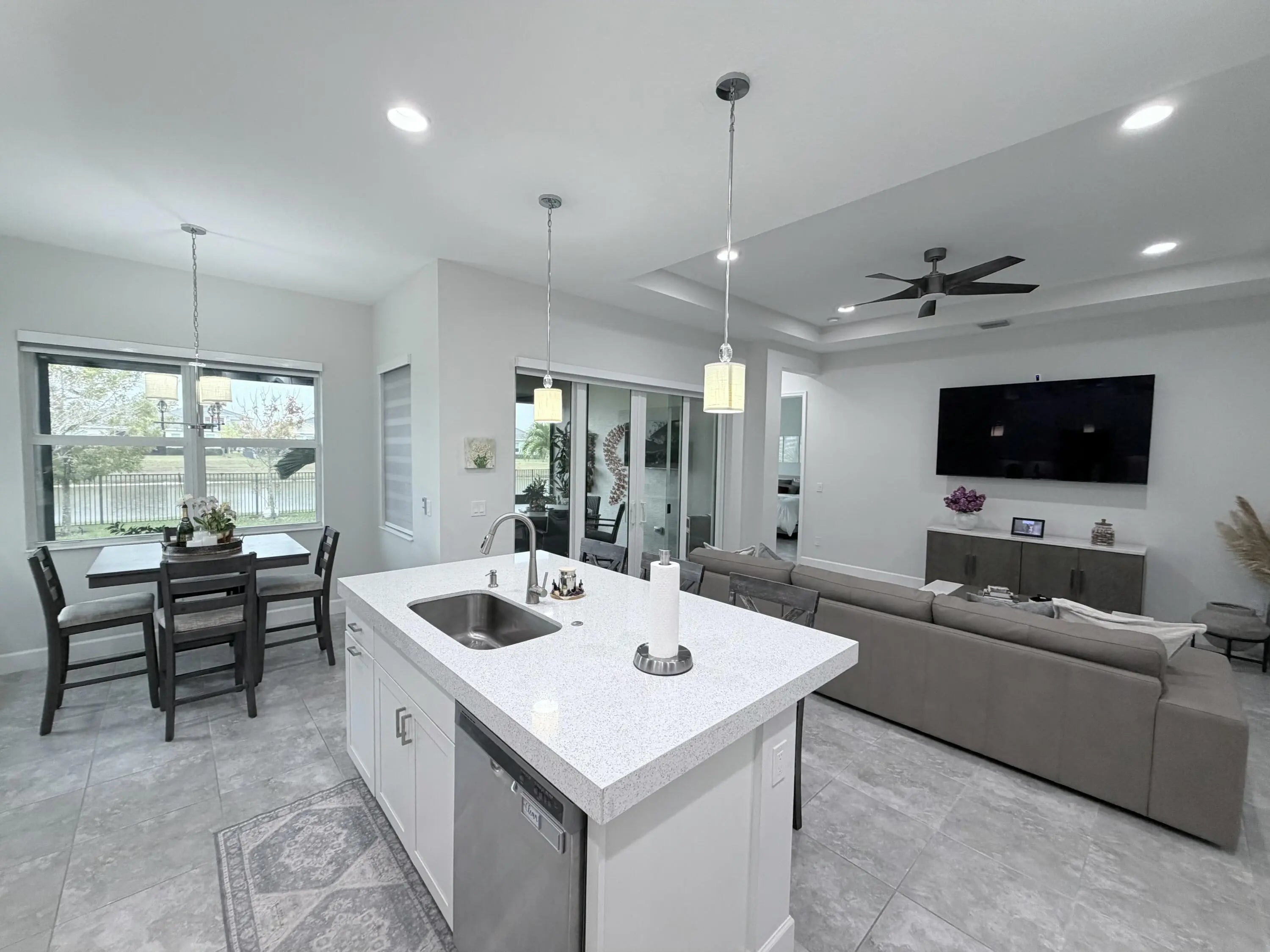 This stunning home is located in the desirable city of Westlake, this beautifully maintained residence is set within a sought-after gated community and a must see. Built in 2022, the home offers 3 bedrooms and 3 full baths, including a primary owner's suite plus an additional private suite, ideal for guests or flexible living. The open-concept floor plan anchored by a spacious island kitchen, creating a perfect setting for everyday living and entertaining. Contemporary finishes and seamless flow define the living space, Designed with a two-car garage for added functionality. Step outside to enjoy peaceful lake view from your lanai with motorized screen, ideal for year- round indoor-outdoor living. many community amenities. walking path, pools to many to list. ''Owner open to offers