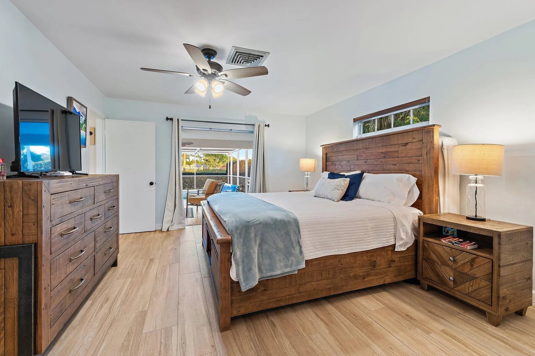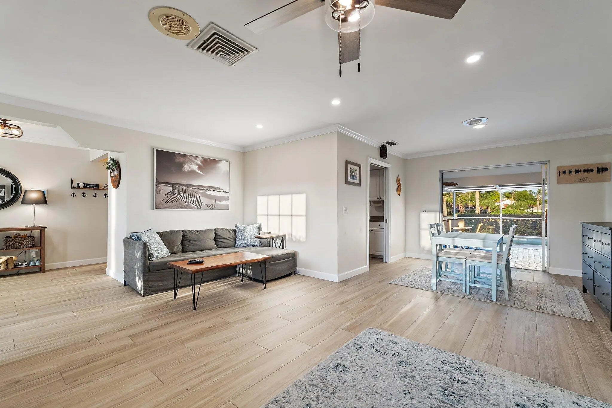 Wonderful opportunity in the Stuart Yacht & Country Club with this 3 bedroom, 2 bath, CBS Pool Home situated on the 15th fairway with beautiful views! Enjoy the Split Bedroom floorplan, generous living space, great flow through home and to the covered outdoor living space with sliders from Primary Bedroom, Living Room & Dining Room..... plus a cabana bath! This home as been well cared for with Updated Kitchen with Corian Counters and SS appliances, Remodeled Master Bath, Ceramic Wood-look Tile Flooring throughout, Metal Standing Seam Roof (2011), Impact Windows (2013) (Sliders have accordion shutters), Drain-field replaced (2013), Hot water heater (2024), New Driveway (2024), New Front Door (2025), Exterior Painted (2025).