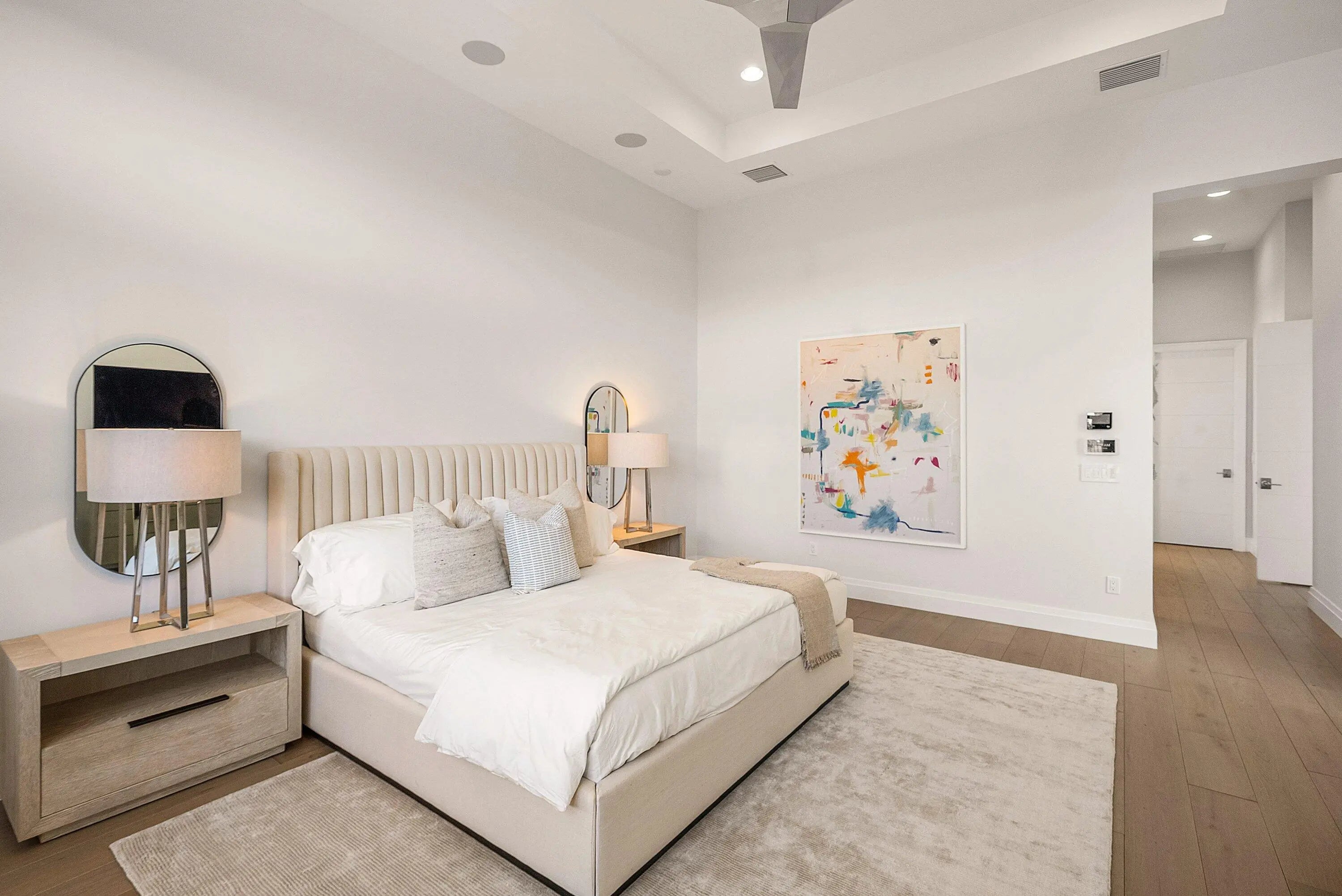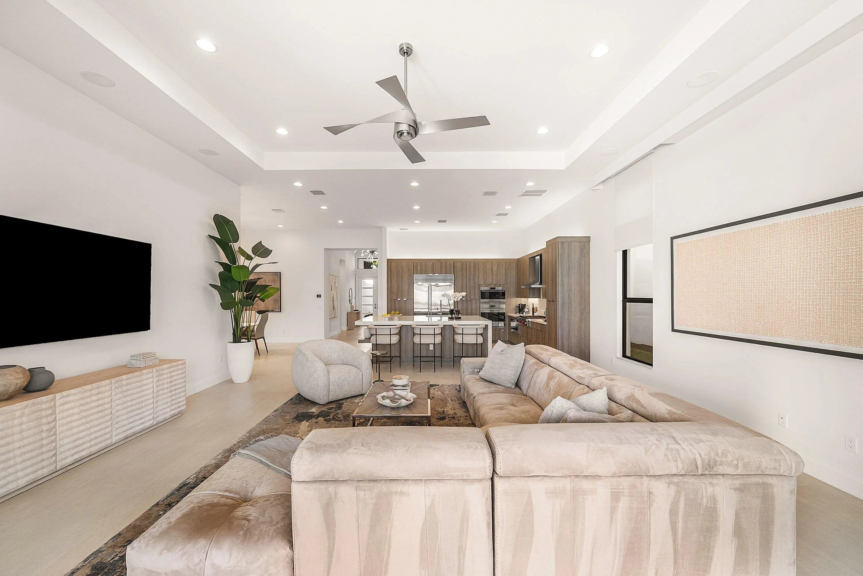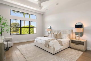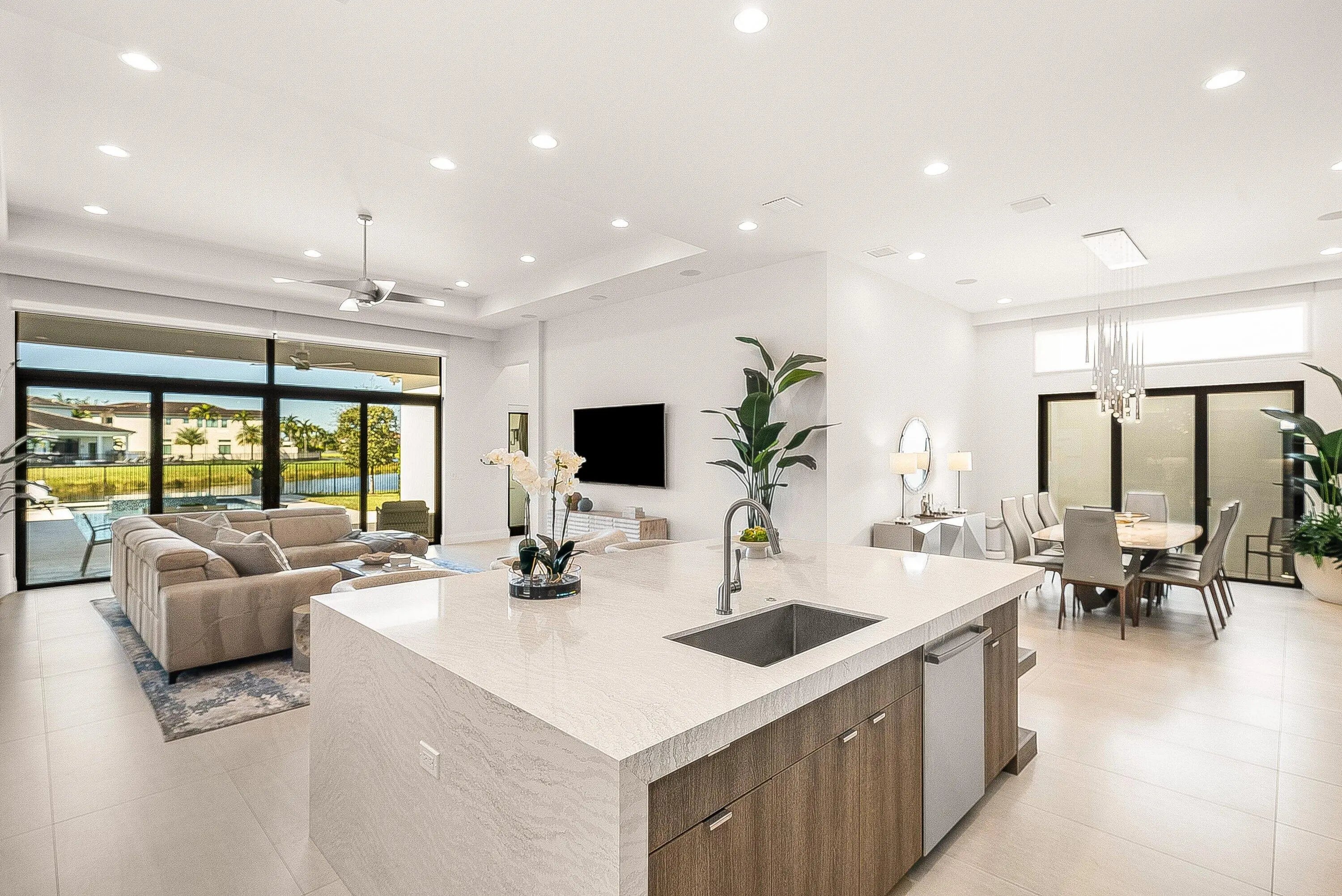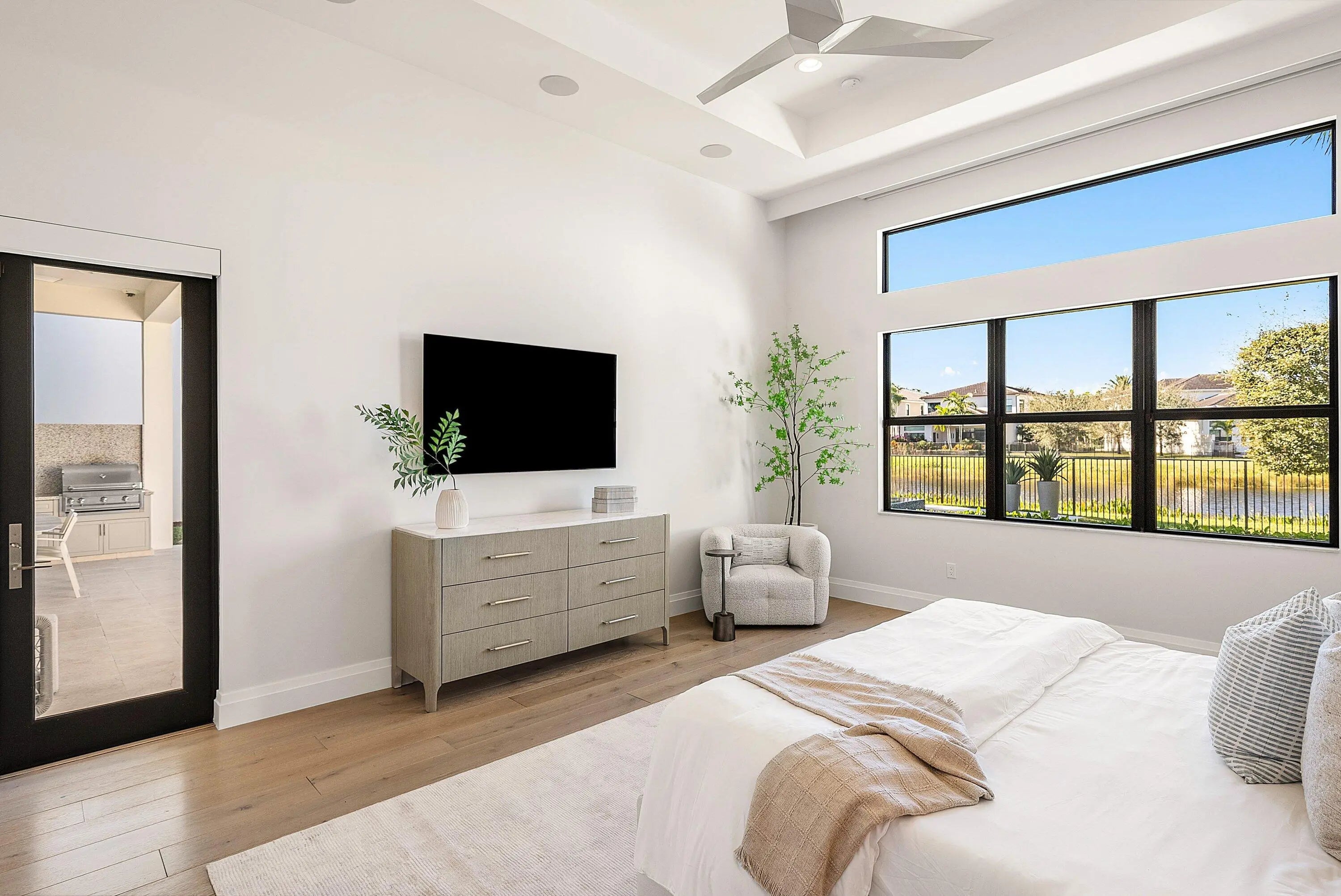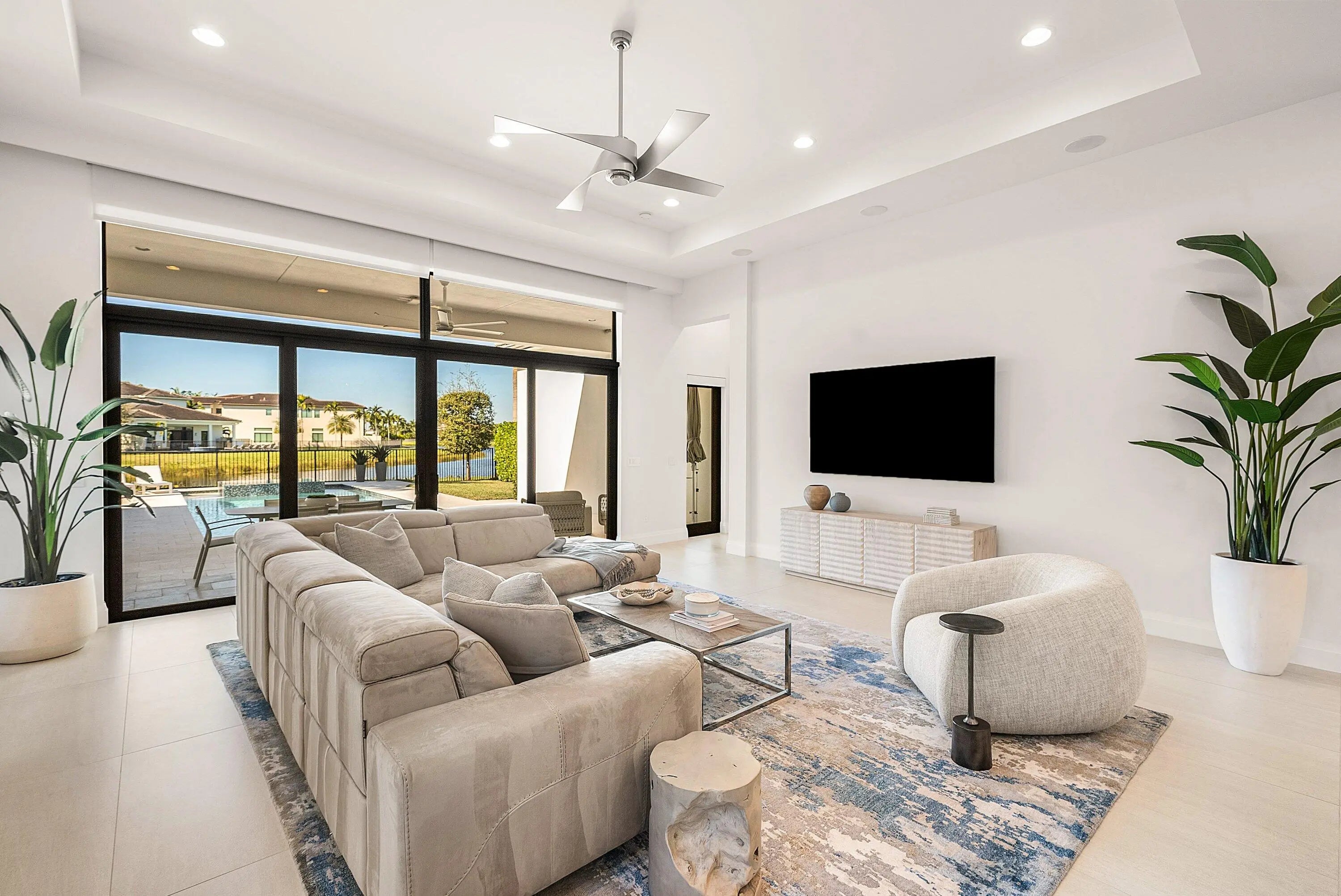 Welcome to 17135 Abruzzo Avenue, an exceptional Sevilla Contemporary residence in prestigious Boca Bridges on a premium lakefront lot. A thoughtfully curated SMART home, offering over-the-top upgrades, this single-story, 4 bedroom/3.5 bath (4th bedroom is currently set up as a den) is a masterpiece blending modern luxury, comfort and cutting-edge technology in one of South Florida's most coveted gated communities. The entry sets the tone: soaring ceilings, elegant Schonbek chandeliers, and an expansive sightline that draw the eye directly to the water. The main living space is anchored by oversized rectified 24x48 inch porcelain tile, while the bedrooms, wrapped in a wide-plank engineered white oak floors, offer warmth and quiet sophistication. Sunlight filters through motorized shades as the homes Lutron lighting system subtly shifts to match the moment. The kitchen is a masterpiece- equal parts architecture and culinary theater. Cambria Ironsbridge Quartz glows softly across the waterfall island, while a suite of Wolf and Sub-Zero appliances, including a steam oven, stands ready for the ambitious cook or catered event. Frameless custom cabinetry rises elegantly concealing storage that has been thoughtfully planned down to the smallest detail, including custom pullout sliding shelves. Every surface feels handcrafted; every choice, elevated. In the primary suite, serenity prevails. Gorgeous lake views spill into the space with custom closets soaring to the ceiling, and automated premium blackout shades to create an atmosphere of indulgent privacy. The bathroom feels like a boutique spa- anchored by a freestanding soaking tub, precise Kohler fixtures, a rain shower, and refined, modern vanities with the highest-level glossed cabinetry illuminated by soft, architectural light. Beyond the glass, a private resort awaits. The upgraded custom pool and reverse edge spa stretch across a Pearl Blanco marble deck, and the covered patio becomes a true extension of the home, complimented by a fully equipped summer kitchen. The expansive long lake views create a serene backdrop with endless open vistas. The residence is powered by one of the most comprehensive smart-home ecosystems in Boca Bridges. Control4 automation orchestrates lighting, shades, audio, video, and security with extraordinary fluidity. Dynaudio and Sonance in-ceiling speakers create cinematic sound throughout the home and outdoor spaces. A commercial-grade network ensures absolute connectivity, while strategically placed Mobotix cameras provide discrete, highly advanced surveillance. Even the essentials- such as the Carrier 5-stage variable HVAC and whole-house generator reflect a commitment to performance, comfort, and security without compromise. Inside and out, this is a home designed for those who appreciate the harmony of luxury and technology, serenity and sophistication, where every space exudes beauty and elegance. 17135 Abruzzo Avenue is absolute perfection! It is a statement of taste, a celebration of modern living, and a rare offering in one of Boca Raton's most prestigious communities. Refer to comprehensive Upgrades List attached as a pdf. Furniture negotiable. At the center of the community lies a spacious 27,000-square-foot clubhouse where residents can gather, socialize, and dine at the acclaimed five-star restaurant, "Cut 5". For those with an active lifestyle the community offer state-of-the-art fitness studio equipped with cardio and strength training machines, invigorating yoga sessions, an indoor basketball court, and six clay tennis courts (plus one asphalt court). Four courts are dedicated to the trending sport of pickle ball. The main pool area, including a lap pool, invites relaxation with an outdoor bar, while families can delight in the adjoining splash water park.