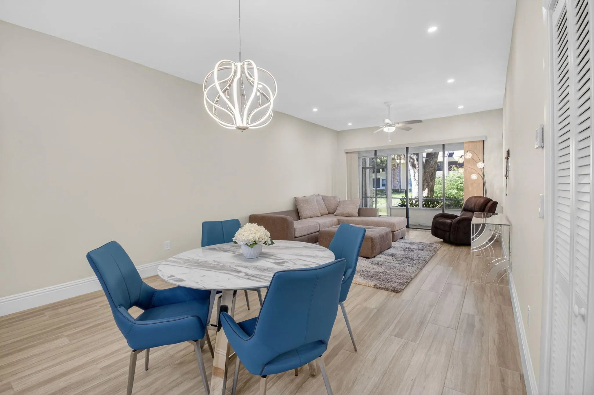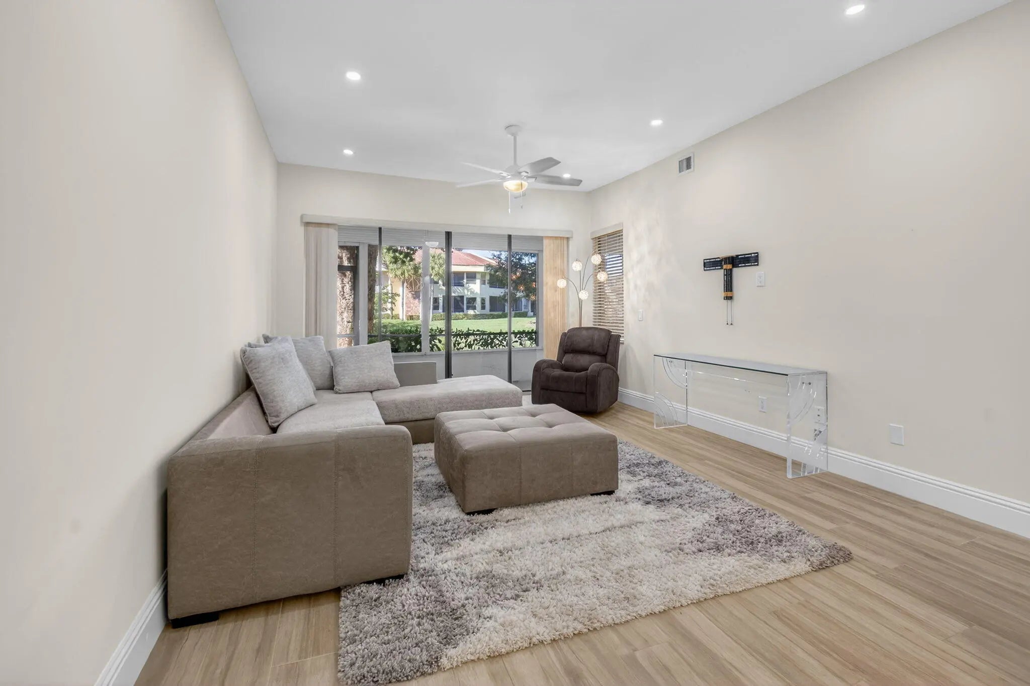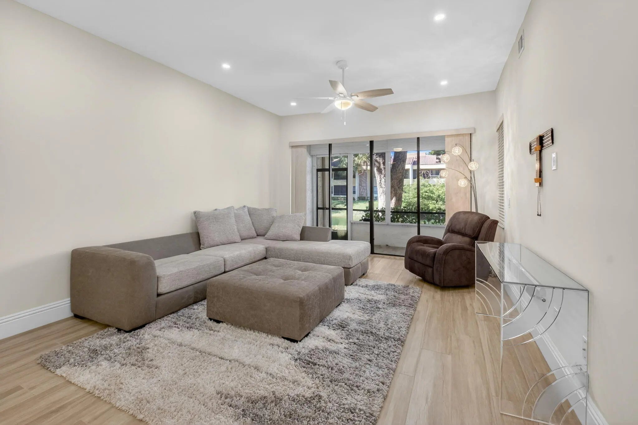 Experience luxury living in this stunning totally renovated rarely offered first floor lakefront residence. This beautiful home offers a clean contemporary aesthetic featuring wide plank porcelain flooring throughout, smooth ceilings and LED hi-hats. Beautifully upgraded kitchen offers LG stainless appliances, custom wood cabinets and gorgeous quartz countertops. The living area flows effortlessly to your private screened balcony perfect for relaxing and unwinding. Primary suite offers two custom fitted closets and well appointed spa-like bath. Updated powder room for your guests. Boca Pointe is just minutes to Town Center Mall, Boca's pristine sandy beaches, the absolute best restaurants and downtown Boca Raton/Mizner Park., Club membership available but not mandatory. A must see!