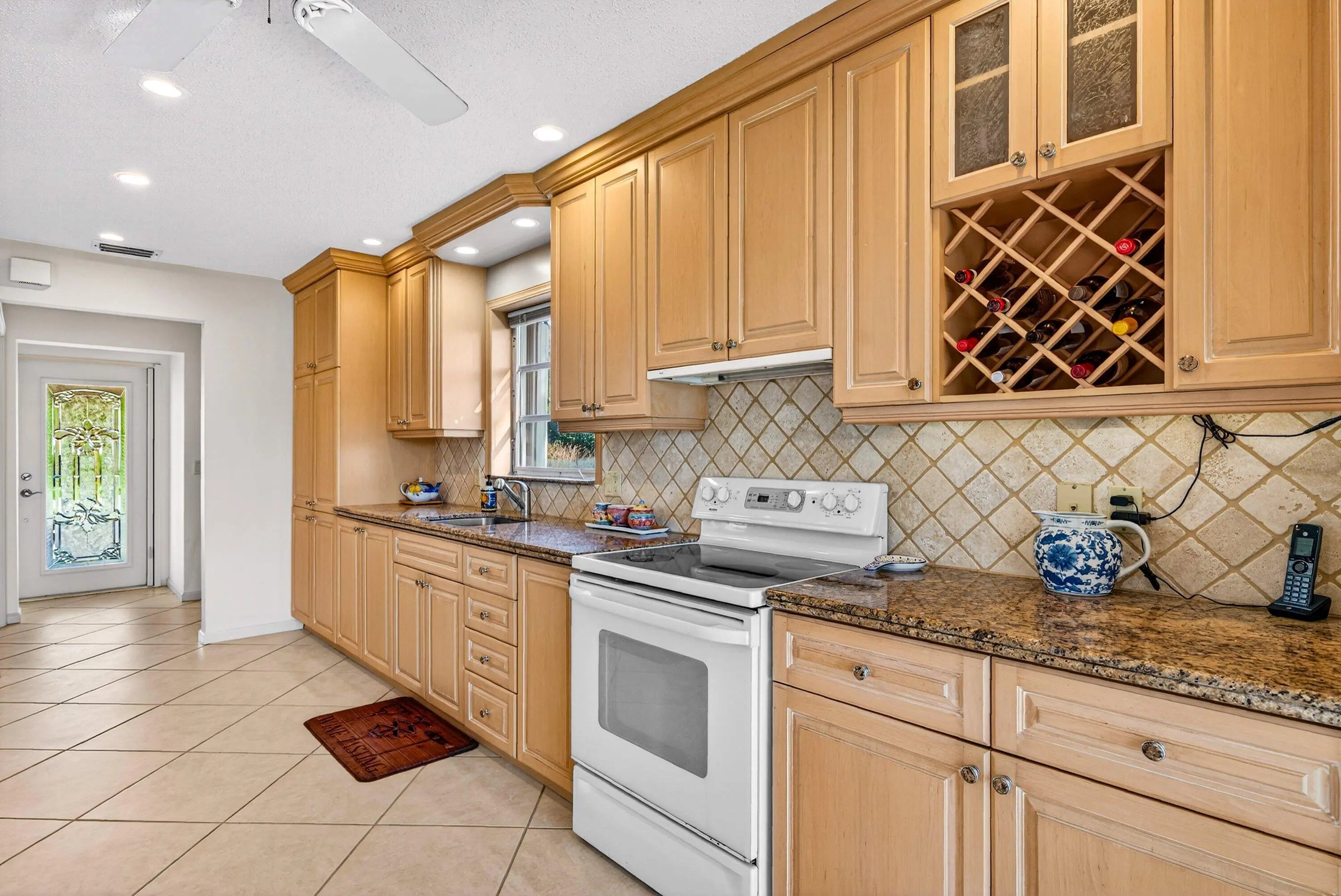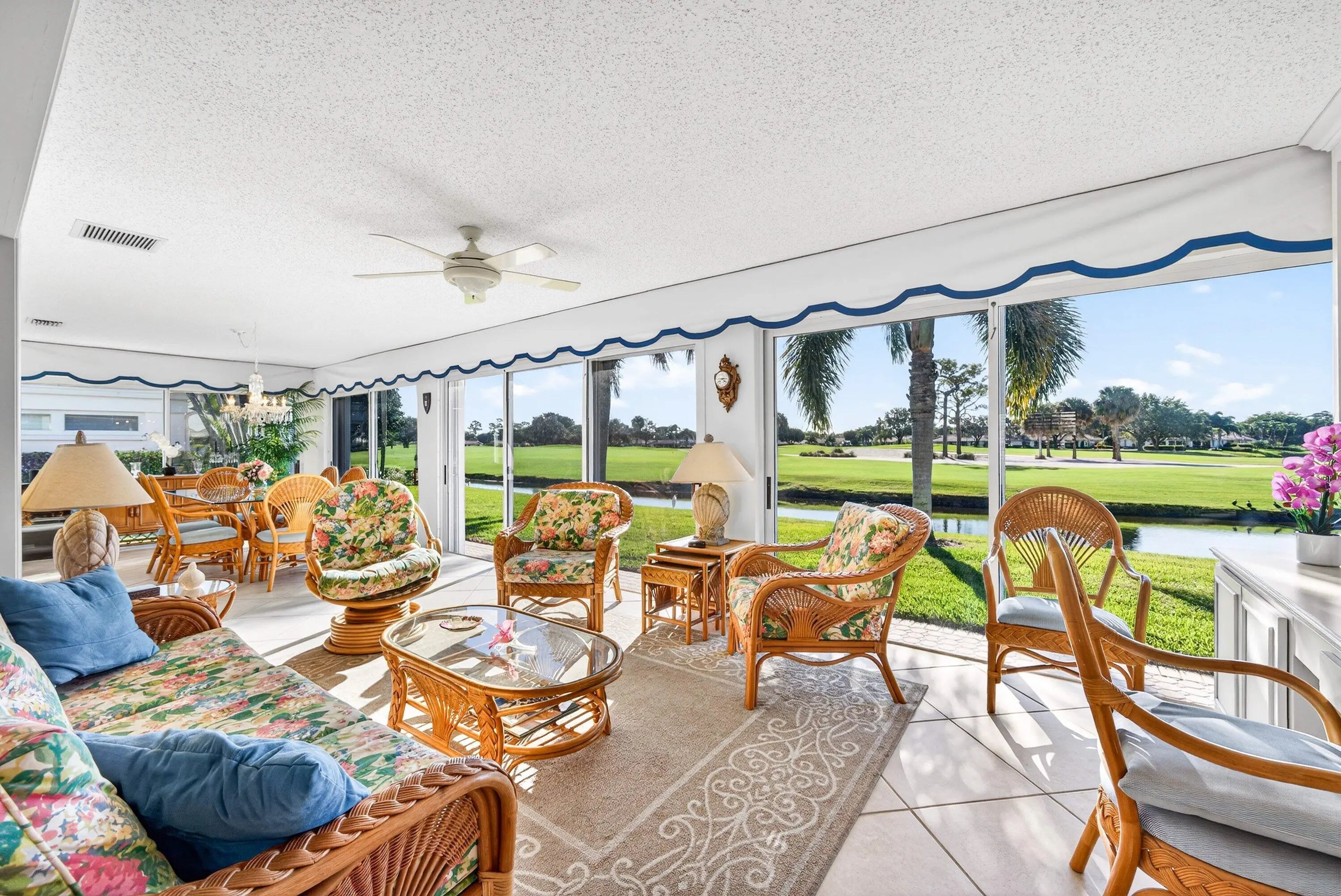 Beautiful villa with sweeping lake and golf course views, highlighted by a wall of glass sliders that fill the home with natural light. The kitchen offers granite countertops, light wood cabinetry, and a convenient snack bar. Built-in laundry cabinetry provides excellent storage. Both bathrooms have been updated, with the primary bath featuring a spacious dressing area and sit-down vanity. Recent improvements include a new A/C in 2025 and a new roof currently in process for 2026. Located in the popular and convenient Sanderling area of Quail Ridge. Quail Ridge is a mandatory membership community offering championship golf, racquet sports, fitness center and spa, and a clubhouse with fine dining and more.