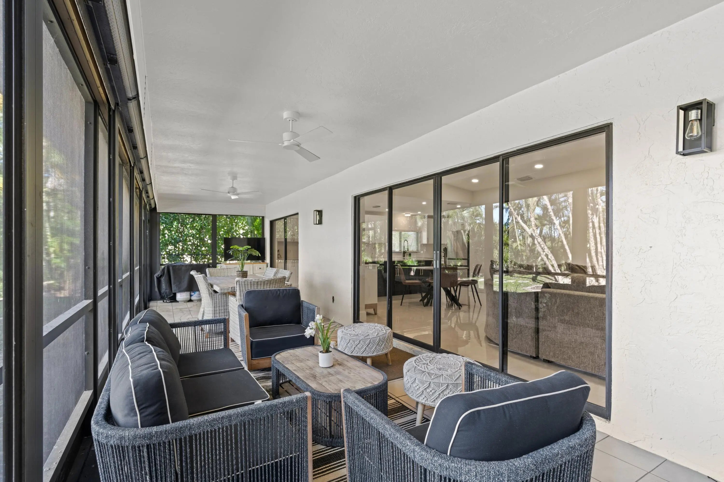 This stunning 2-bedroom, 2.5-bath residence sits on an oversized lot in one of the most centrally located and desirable areas, offering the perfect blend of luxury, comfort, and convenience. Completely renovated from top to bottom, this dream home features a brand new roof, new AC system, new water heater, full impact windows, new washer and dryer, and new flooring throughout the home, ensuring modern efficiency and long lasting peace of mind. Step inside to an open, sun filled layout showcasing high-end finishes and thoughtful design. The beautifully redesigned chef's kitchen is the true centerpiece, featuring elegant quartz countertops, stainless steel appliances, an oversized island perfect for entertaining, and an extra-large walk-in pantry that brings both function and style. Whether hosting gatherings or preparing everyday meals, this kitchen elevates the experience. The expansive primary suite offers a serene retreat with a custom-finished closet and a fully renovated spa-inspired bathroom, complete with premium tilework, modern fixtures, and private access to the patio ideal for morning coffee or evening relaxation. The second bedroom also enjoys its own beautifully renovated bathroom, providing comfort and privacy for guests or flexible use. A spacious 2 car garage with a professionally finished epoxy floor adds a polished touch and exceptional durability. Outside, the oversized lot provides ample room to enjoy the outdoors, garden, or create your own personalized oasis. Located within a secure, gated community, residents enjoy access to a clubhouse, sparkling pool, tennis courts, and pickleball offering a resort-style lifestyle right at home. The neighborhood is just minutes from a wide variety of stores, restaurants, and shopping destinations, making everyday living effortless and enjoyable. Move in ready and meticulously upgraded, this home delivers modern luxury, thoughtful craftsmanship, and unbeatable convenience in one exceptional package.