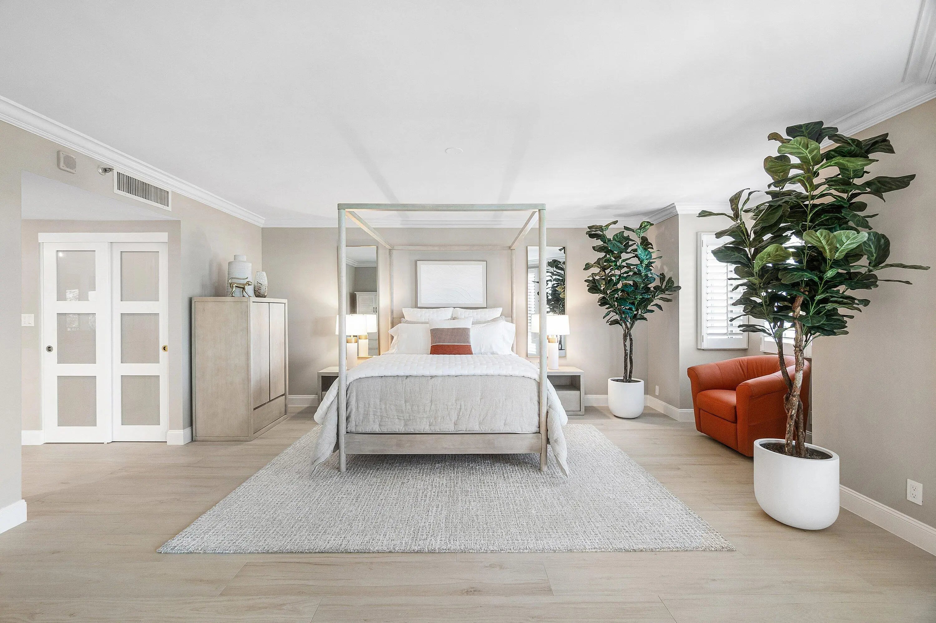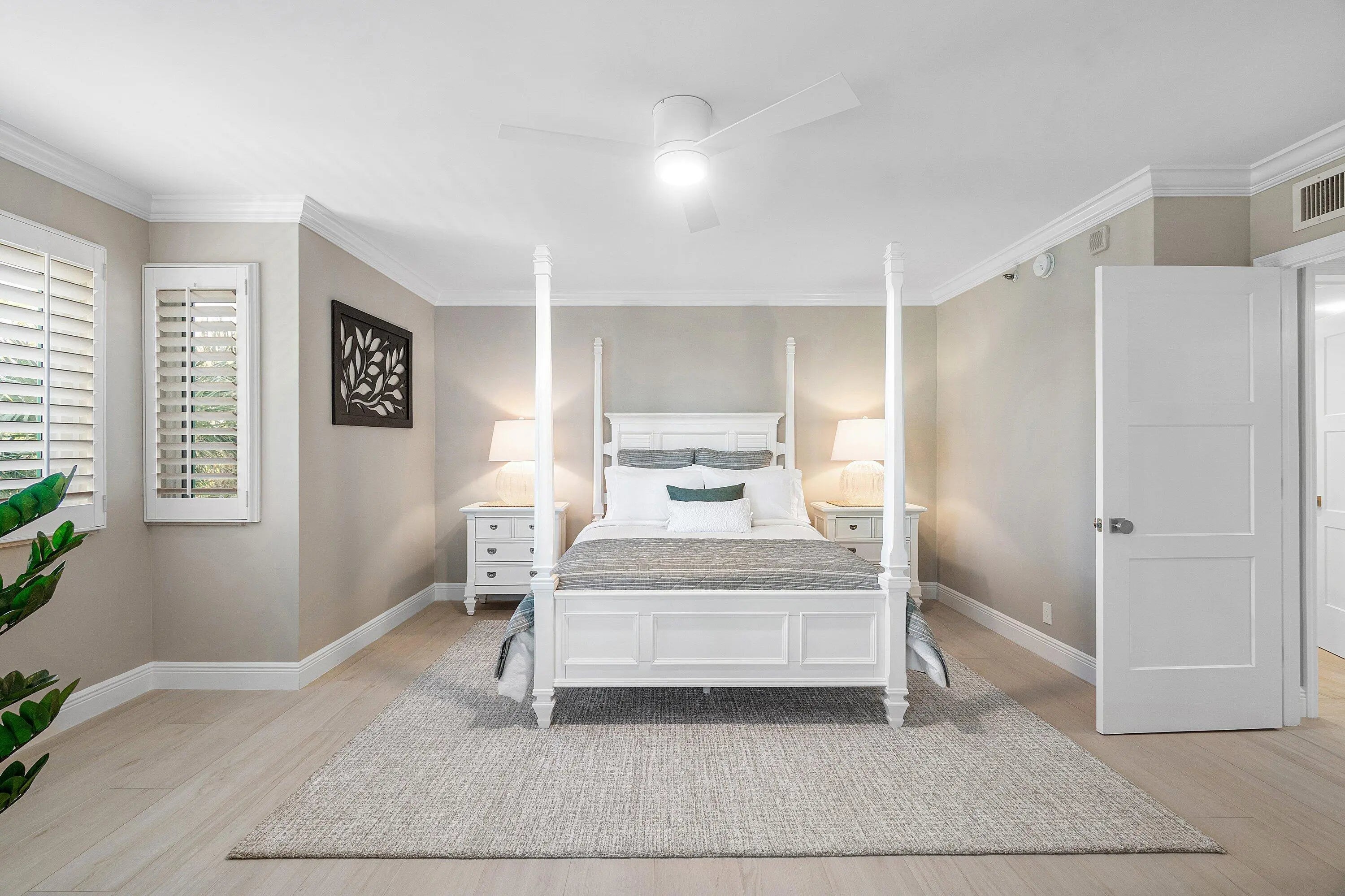 Rarely available and exceptionally just renovated, this extra-large 2-bedroom, 2-bath residence is the largest 2-bedroom line in the sought-after Mizner Court Condominium. This lower penthouse offers serene, private treetop views with a glimpse of the Intracoastal, creating the perfect blend of peaceful living and prime Boca Raton location. Designed with a desirable split-bedroom floor plan, this light-filled condo features high-end designer finishes throughout and an expansive balcony with access from every roomideal for indoor/outdoor living and entertaining. The purchase of the furniture separately is negotiable. Additional highlights include an eat-in kitchen, side-by-side washer and dryer, and spacious bedrooms with ample storage. Unit 404 is in immaculate condition and is ready for immediate occupancy. Mizner Court is ideally positioned on the grounds of the iconic Boca Raton Resort & Club, just steps to the beach, top dining, Mizner Park, and Royal Palm Place. Resort-style amenities include: 24-hour manned security, Fitness center, Social rooms & clubhouse, Tennis courts, Two Olympic-size swimming pools, Four hot tubs, Waterfront docks A truly special offering in one of Boca Raton's most desirable communities.