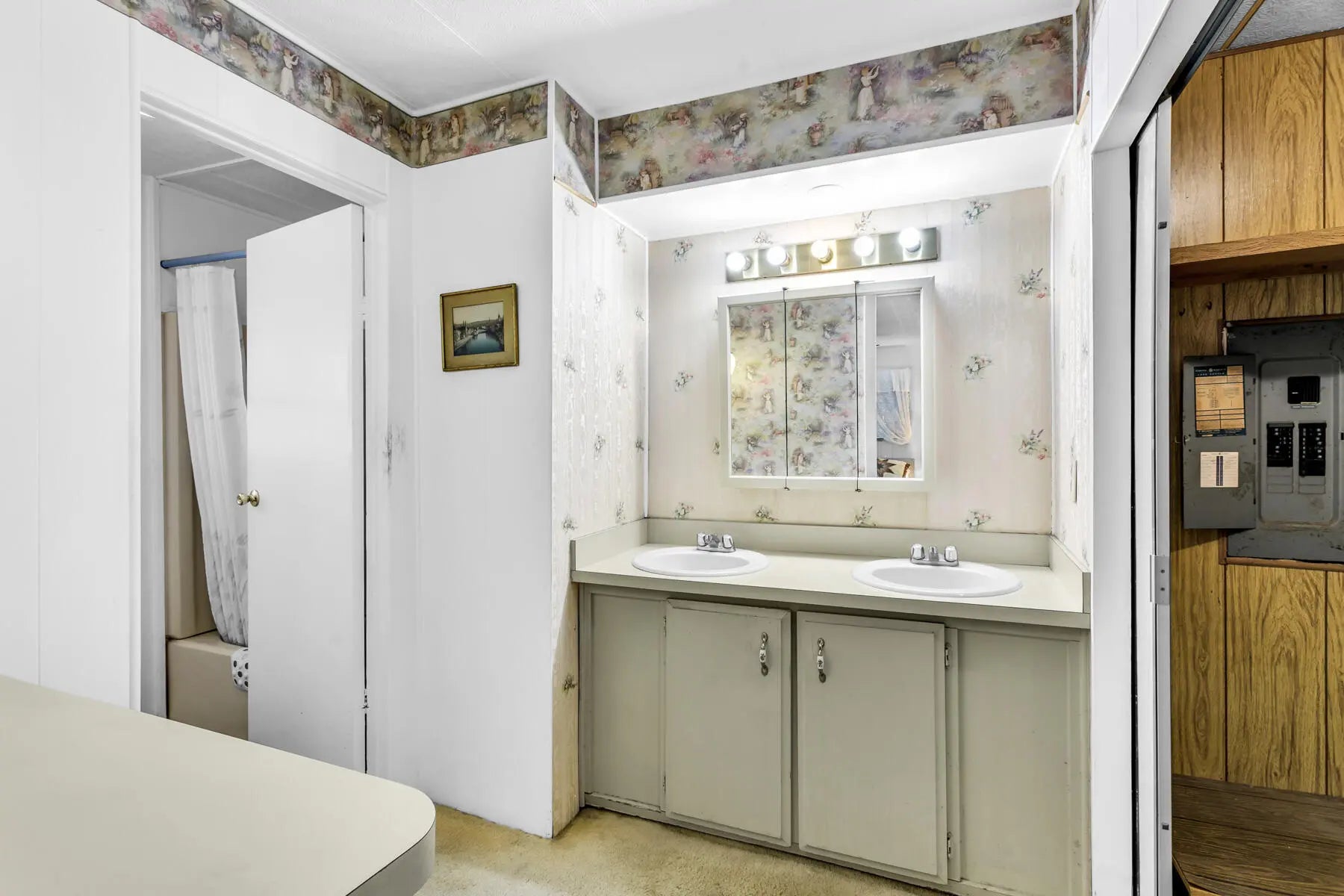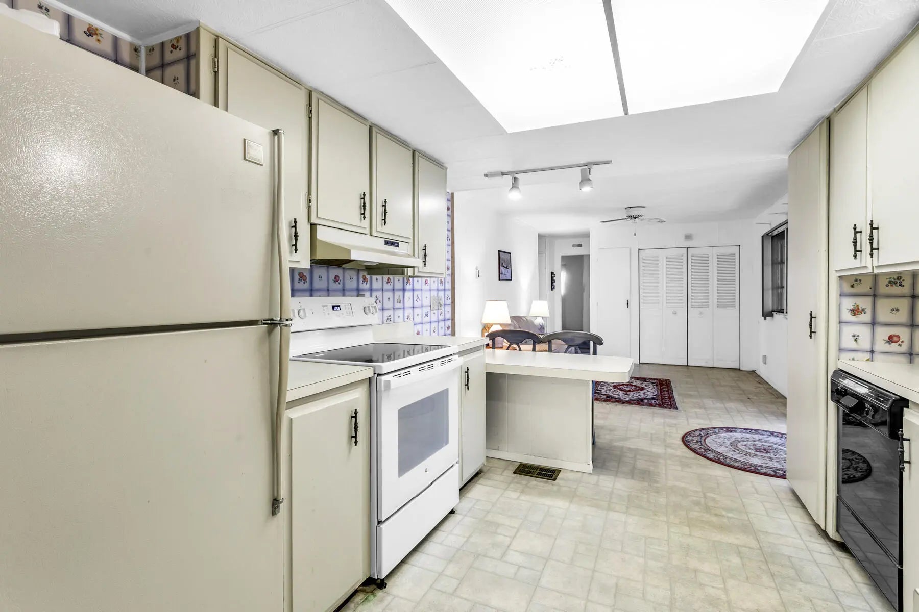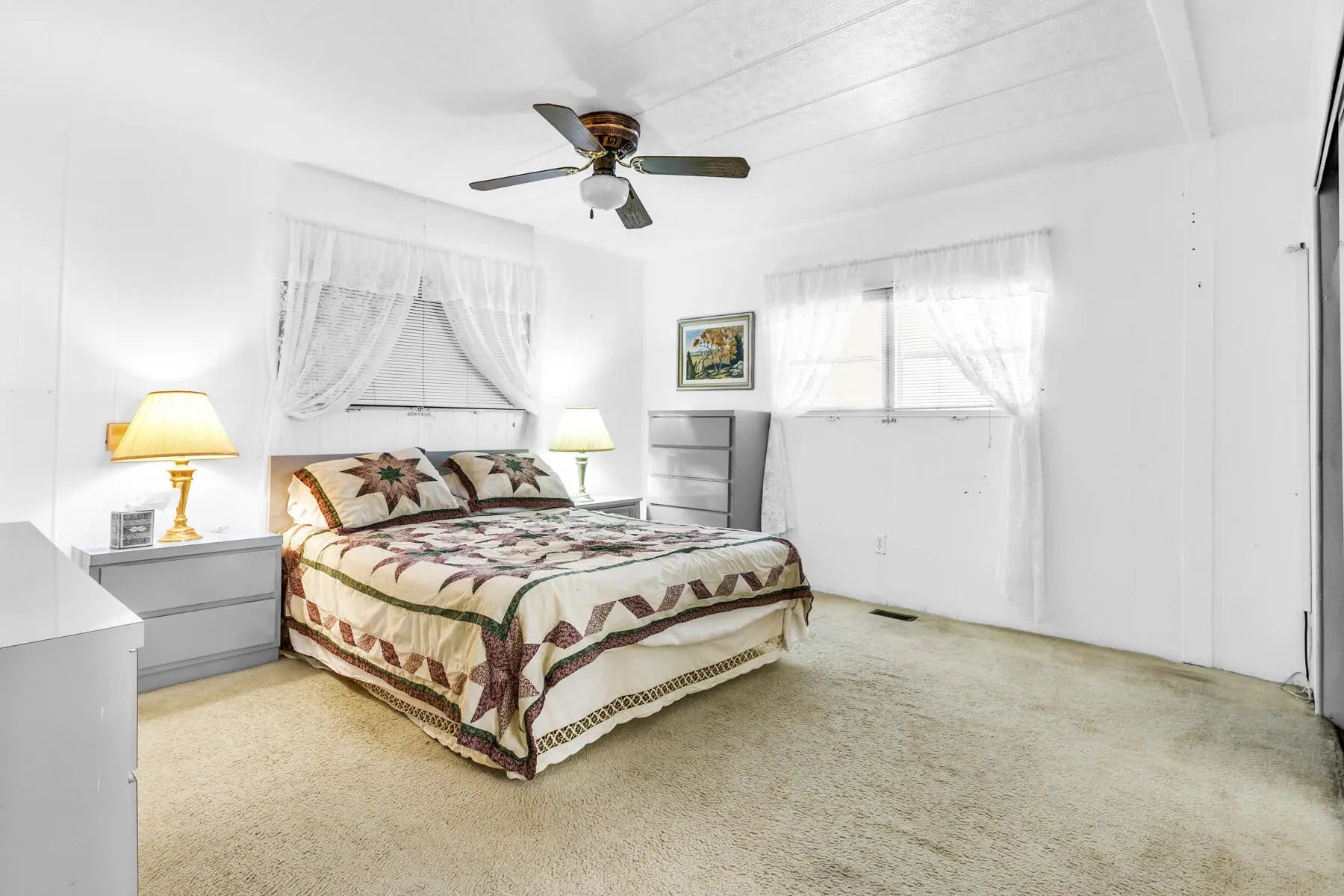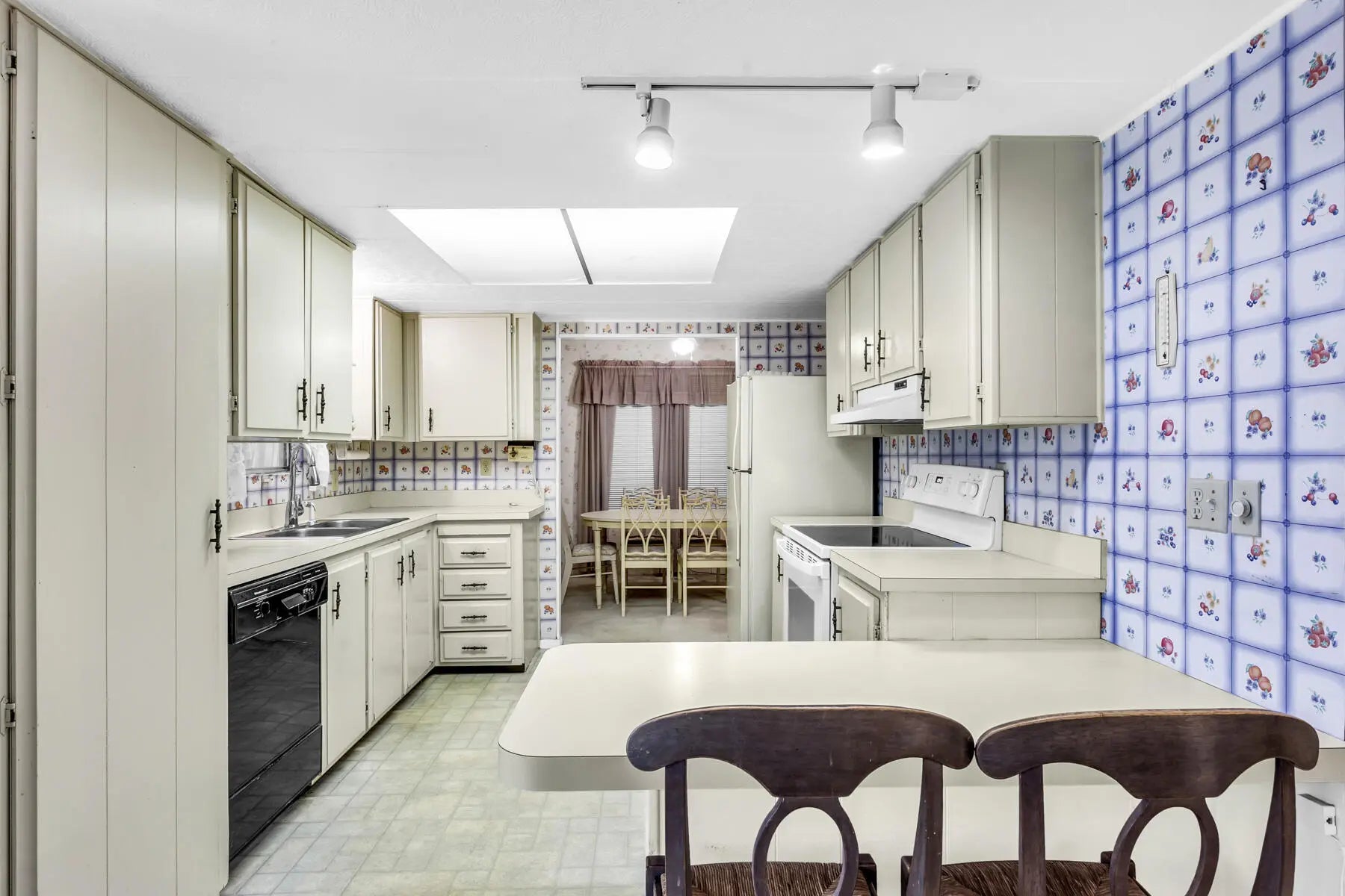 This property is an investor's dream, offering generous space and great potential. It features a living room and family room, an open kitchen with a dining area and built‑in buffet, plus two large bedrooms. The main suite includes a walk‑in closet and a roomy bath with a step‑in shower, while the guest room offers ample storage and guest bathroom has a tub/shower combo. Enjoy both a screened patio and a covered outdoor area. With two storage sheds, indoor laundry, and the possibility to convert to a three bedroom, this home has endless possibilities. This is a gated community with a low monthly fee. NO Land Lease. Active clubhouse with heated pools, pickle ball, shuffleboard, bingo, cards, dances and so much more. Close to plenty of shopping and dining and local beac