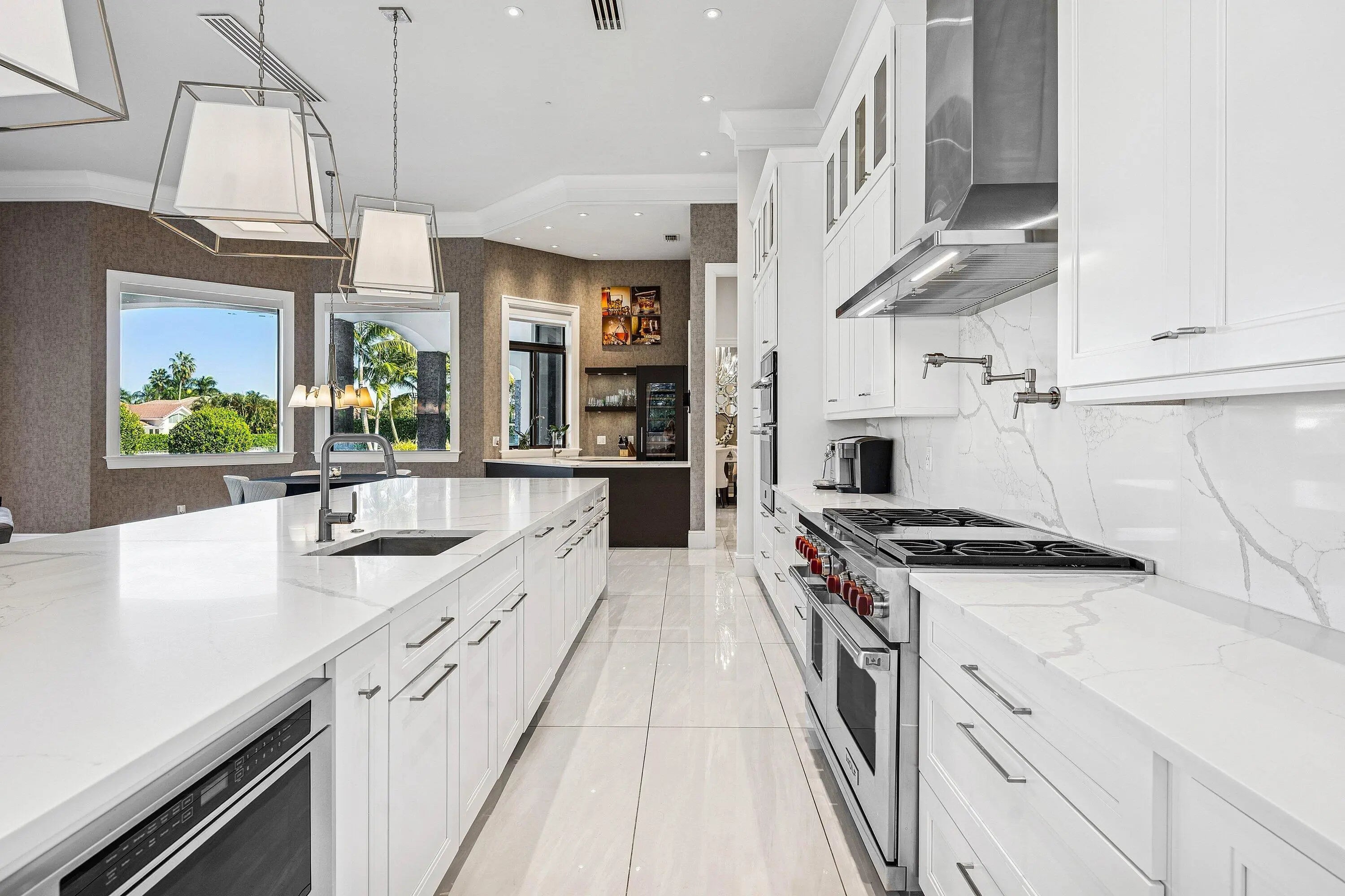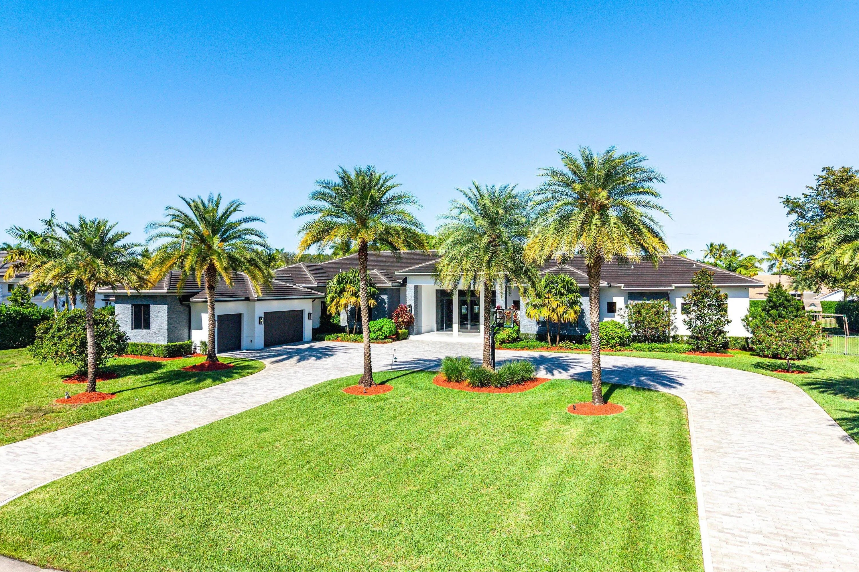 An extraordinary single-story estate offering soaring 13-foot ceilings and expansive living on a private 1-acre setting in a prestigious enclave in the heart of Boca Raton. Custom built in 2020, this residence delivers rare scale, privacy, and architectural presence, complemented by a full smart-home environment with Crestron lighting, integrated security, impact glass throughout, and a 48KW whole-house generator. Featuring 5-bedrooms, 5.5 baths, and a private office off the primary suite, the home is anchored by an expansive, beautifully appointed kitchen with top-of-the-line appliances, exceptional storage, and a massive statement island. The kitchen opens directly to a grand family room, creating a dramatic open-concept living space designed to host large gatherings. The backyard is a private resort unto itself, anchored by a sweeping lawn, resort-style pool and spa, and expansive covered outdoor living areas designed for year-round enjoyment. A fully equipped summer kitchen with Sedona gas grill creates an ideal setting for elevated outdoor entertaining, from intimate evenings to large-scale gatherings.