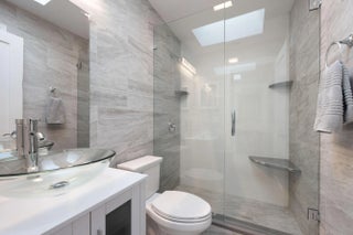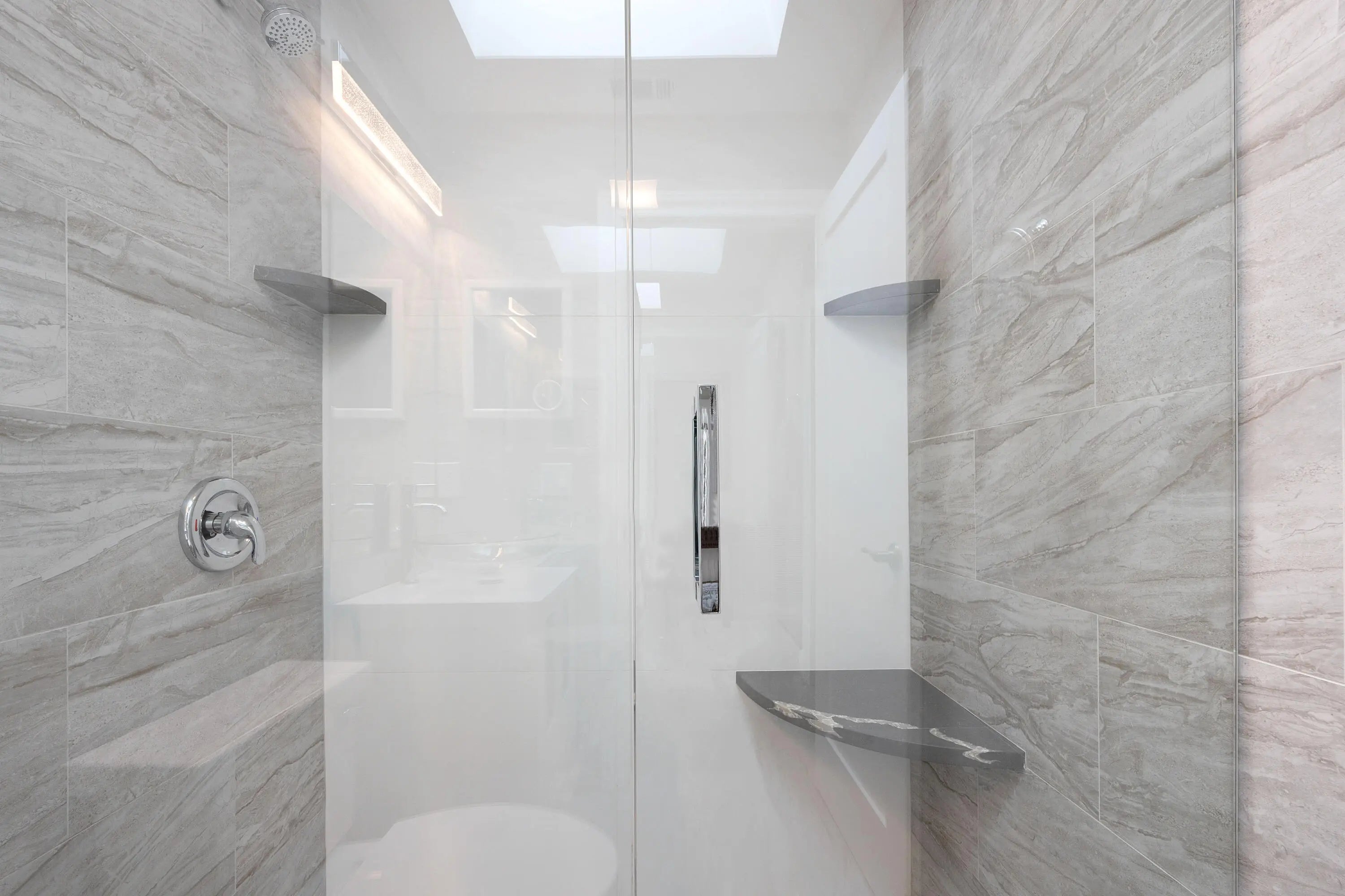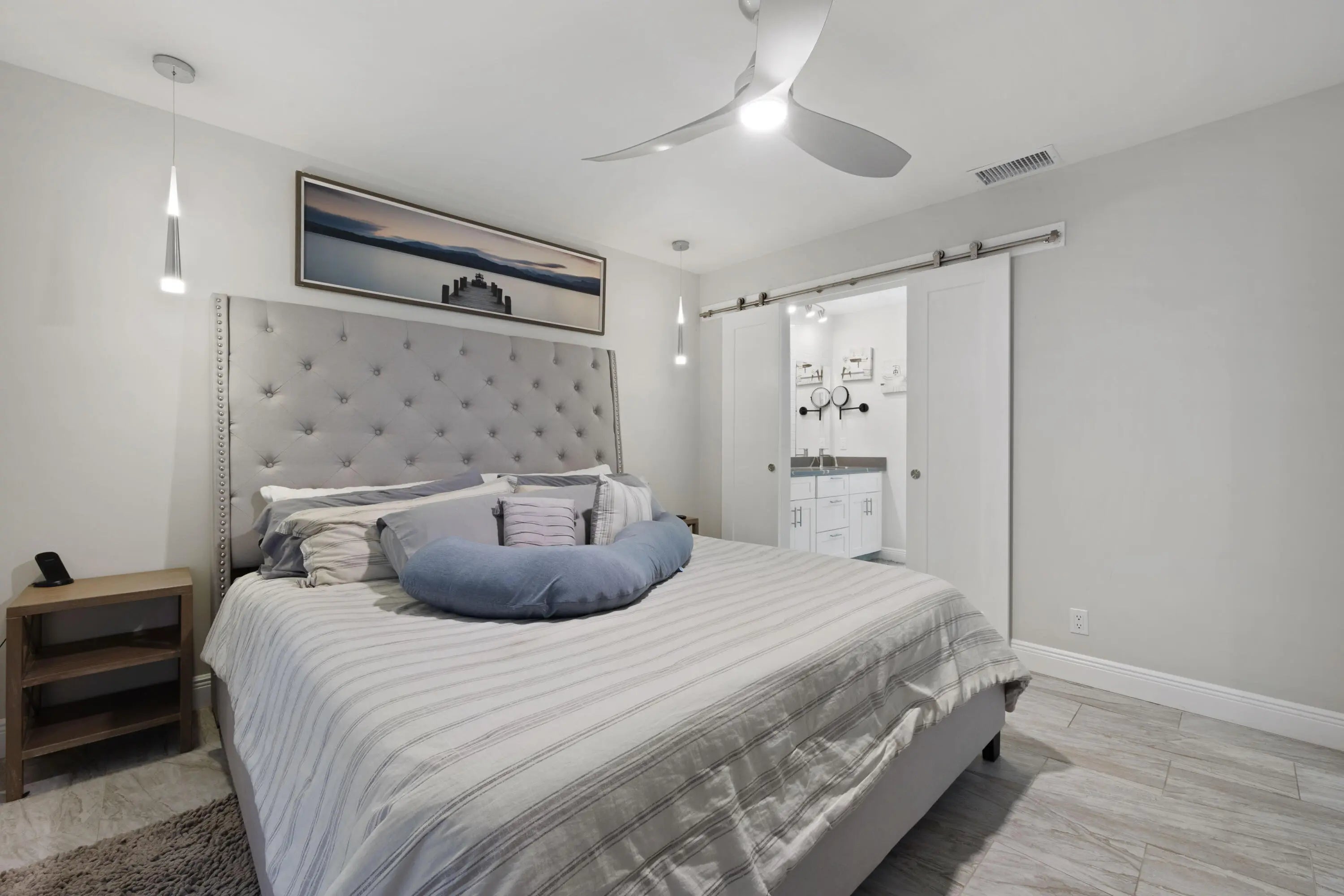 Exquisitely reimagined villa in the boutique community of Ridge Pointe Woods Villas! This open-concept residence showcases 12'' x 24'' porcelain tile throughout & a custom-designed chef's kitchen anchored by a 10' x 5' quartz island w/seating for 7, seamless slab finish, pop-up electrical outlet, soft-close cabinetry, and extensive additional storage. Kitchen additionally features a pot filler at the cooktop, stainless steel appliances, a smart wall oven with mobile connectivity, and a custom hood featuring hand-selected authentic Amalfi Coast tile. Living area is highlighted by elegant custom ceiling beams with crown molding, a smooth refinished ceiling, and a curated lighting including recessed and pendant fixtures, plus upgraded outlets and switches. Guest bathroom has been fully redesigned with floor-to-ceiling porcelain tile, offering a spa-like experience. Primary suite features a luxurious bath with a walk-in shower, multiple shower heads, bench seating, built-in shelving, dual vanities, and a private water closet. Throughout the home are shaker-style interior doors with substantial 3.5" casing and 5.5" baseboards, ceiling fans, and skylights that flood the space with natural light. Flex/Den room provides the ideal space for a home office, studio, or additional living area and opens to a private 12' x 18' paver patio with no rear neighbors. Ridge Pointe Woods Villas is a boutique community of approximately 100 villas located in east Boynton Beach, just minutes from beaches, shopping, dining, major roadways, and medical facilities. The HOA provides exceptional value, covering cable, internet, landscaping, roof maintenance, building insurance, water, sewer, and recreational amenities. Roofs were replaced in 2019. HVAC 2025.