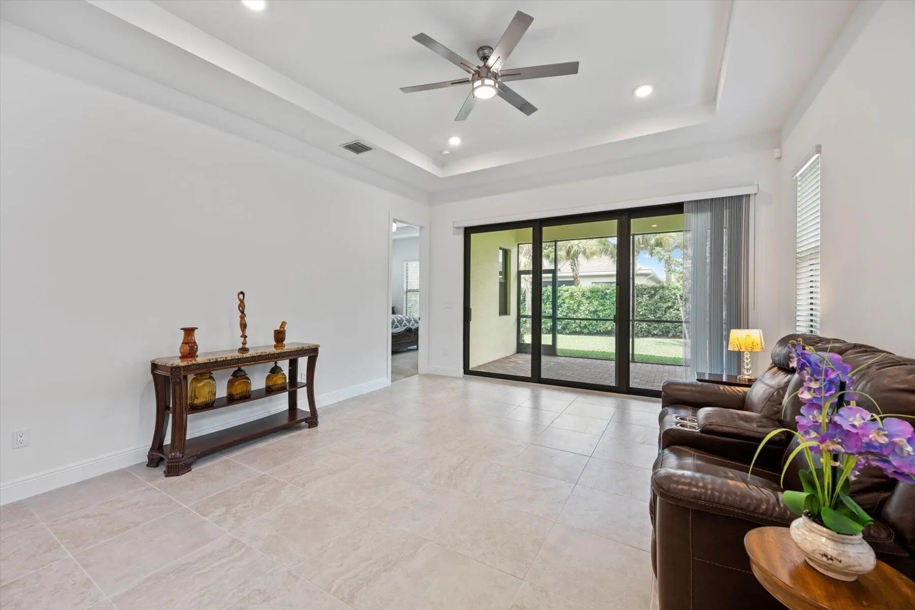 This beautifully maintained residence offers timeless style and modern comfort. Tile flooring flows seamlessly throughout the main living areas and den/office, creating a bright and cohesive feel. The kitchen is thoughtfully designed with rich 42'' cabinetry, granite countertops, an inviting eat-in space, and opens effortlessly to the spacious dining and family room—ideal for both everyday living and entertaining. The primary suite is a true retreat, featuring a generously sized bedroom, dual walk-in closets, and a spa-inspired bath with dual sinks, granite counters, and an expansive walk-in shower. Step outside to your screened-in patio and unwind while taking in Westlake's breathtaking sunset views. Additional highlights include a well-appointed laundry room, a garage with sleek epoxy flooring, and impact windows and doors throughout providing both convenience and peace of mind. Residents enjoy HOA-included high-speed internet, full lawn care, and access to two exceptional amenity centers. The community clubhouse, led by a full-time lifestyle director, features a SmartFIT Training Center powered by EGYM, event and game rooms, an arts and crafts studio, pickleball and tennis courts, a dog park, resort-style and resistance pools, a spa, and an outdoor event plaza. Ownership also includes access to Westlake's renowned Adventure Park, showcasing a lagoon-style pool with a three-story slide, splash pad, cabanas, outdoor concert pavilion, basketball courts, an adult-only lodge-style pool, playgrounds, dog parks, and a BMX pump park. Experience the best of resort-style living at Cresswind Palm Beach. This exceptional home is priced to sell. Schedule your private showing today.