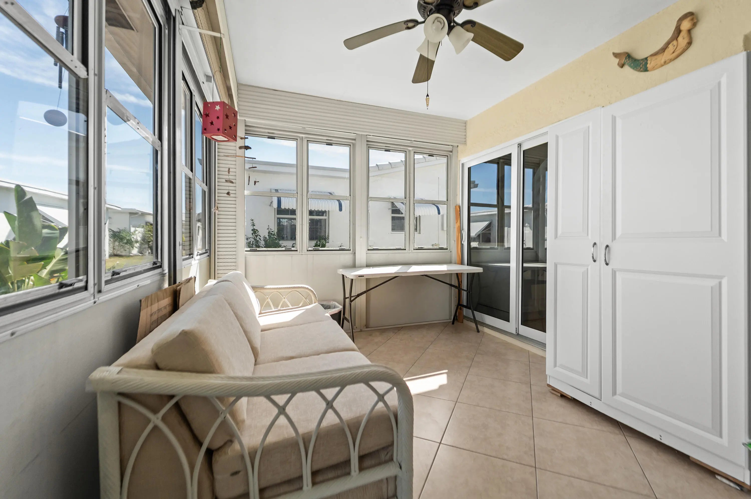 Beautifully maintained Edgewood Model, Fully Furnished, Move In Ready. Florida Room & fully enclosed Patio. Roof 2020/AC 2021/WH 2013/Impact Windows/Sliders. Newer White Kitchen Cabinets & Upgraded Appliances, Neutral Tile & Luxury Vinyl Flooring. Home on Quiet Interior Street, Paid Rec. Lease, Seller providing Assurant Home Warranty (Assurant Plan at Closing for One Year.) Active 55+ community with Low HOA fee, Free Hotwire Cable TV, Includes Fast Internet. Clubhouse, Heated/Cooled Pool, Spa, Exercise Room, Library, Game Room, Bocci Ball Courts, etc. Pets Allowed. So come and enjoy this active 55+ Community. No offers accepted unless buyer has previewed the home.