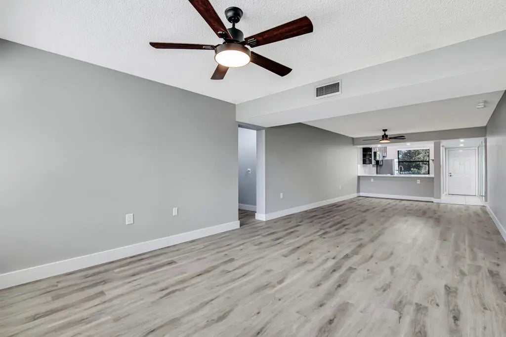 Beautifully renovated and spacious 2-bedroom, 2-bath condo with a den/office, offering comfort and modern living. This stunning unit features a brand-new A/C system, new in-unit laundry, impact windows, and stylish vinyl flooring throughout. The updated kitchen includes modern appliances, an open breakfast bar, and flows into a bright great room perfect for relaxing or entertaining. Both bedrooms are generously sized with updated vanities and excellent storage. Enjoy peaceful courtyard and golf course views from this second-floor unit, just steps from the pool and clubhouse. The community offers four heated pools, fitness center, game rooms, sidewalks, and beautifully maintained grounds. Conveniently located near shopping, dining, and the airport. Move-in ready and easy to love!