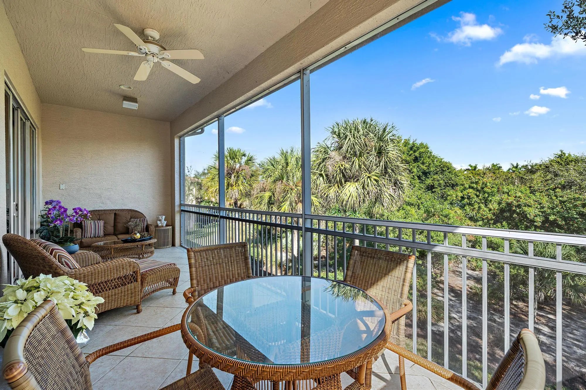 Move right into effortless, turnkey living in this fully furnished great room residence offering private golf course vistas and stunning designer enhancements throughout. This highly desirable Santa Cruz floor plan spans over 2,500 square feet under air and features three bedrooms, two baths, and a den, along with a private elevator, private staircase, and a private attached two-car garage—delivering the space and comfort of a single-family home with the ease of low-maintenance condo living. From the moment you enter, the residence is defined by its sophisticated Tropical British Colonial design aesthetic, blending rich natural textures, warm Caribbean-inspired wood tones, and relaxed luxury to create a home that feels like a private resort. Thoughtfully curated upgrades include granite and marble countertops, upgraded cabinetry, designer light fixtures, and custom window treatments throughout, all coming together in a polished yet inviting atmosphere that perfectly complements the surrounding views. Impact glass throughout provides daily convenience, storm protection, and lasting peace of mind, while the oversized screened 25-foot balcony invites tranquil mornings and sunset evenings overlooking the golf course with beautiful views of Tradition Course #8. Whether entertaining or unwinding, the indoor-outdoor flow makes this home feel like paradise found. Recent improvements add even more confidence and value, including a new oven, microwave, and hot water heater (2023), a garage opening system replacement (2022), and a whole-house surge protector unit located in the garagemaking this truly move-in ready with the right details already handled. Orchid Reserve residents enjoy a rare lifestyle advantage within Ibis: exclusive access to their own private community pool and clubhouse, making Orchid Reserve the only neighborhood in Ibis to offer both. As a resident of The Club at Ibis, you'll also enjoy access to a world-class suite of amenities including a 90,000-square-foot clubhouse, three Nicklaus-family championship golf courses, five restaurants, a state-of-the-art fitness complex and spa, and premier tennis and pickleball facilities. Beautifully furnished, thoughtfully upgraded, and designed for easy livingthis residence is the definition of turnkey luxury in one of Palm Beach County's most celebrated private club communities. IBIS MEMBERSHIP FEES ARE INCREASING. BUYERS WHO GO UNDER CONTRACT BY APRIL 1, 2026 AND CLOSE BY JUNE 12, 2026 CAN SAVE A MINIMUM OF $30,000.