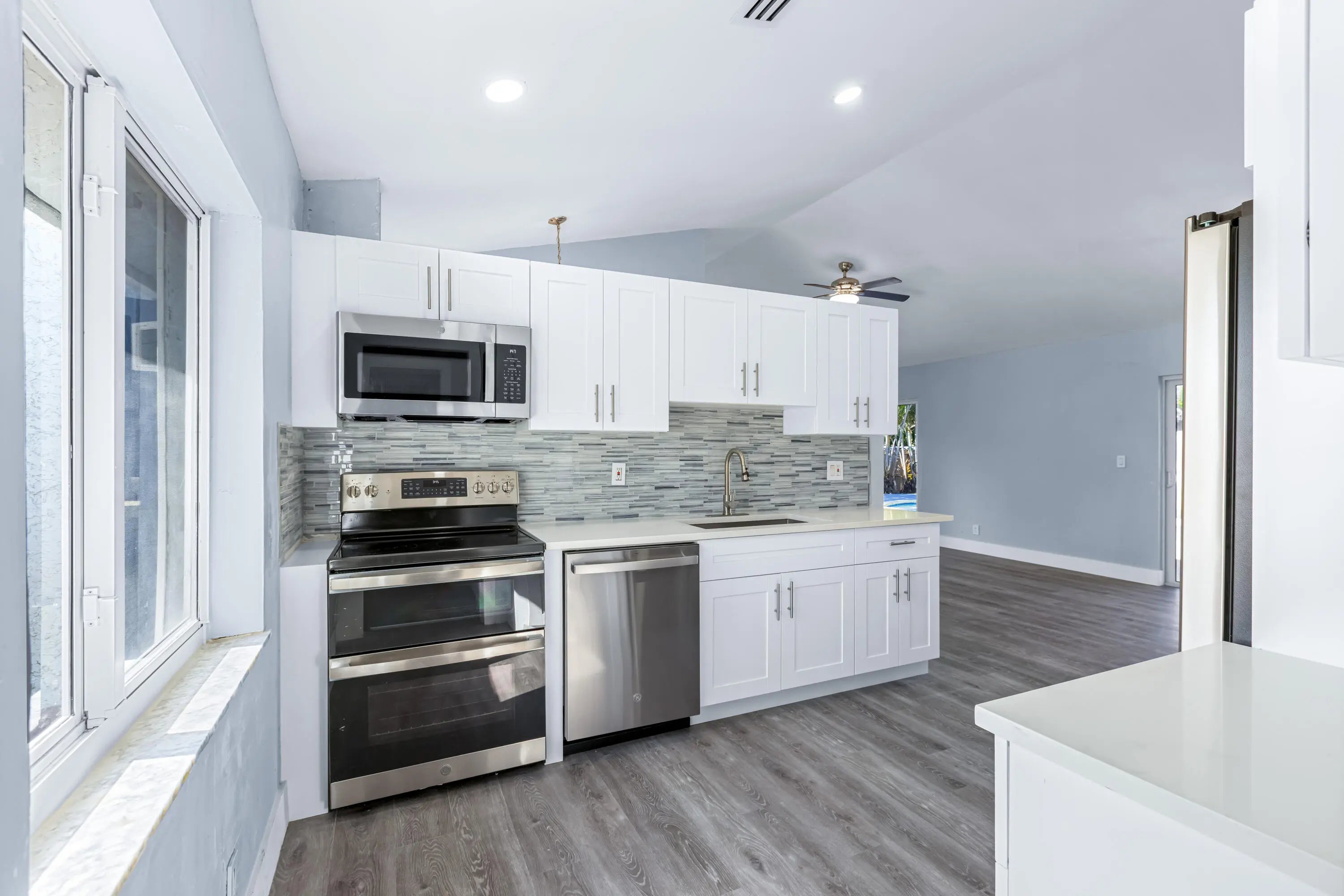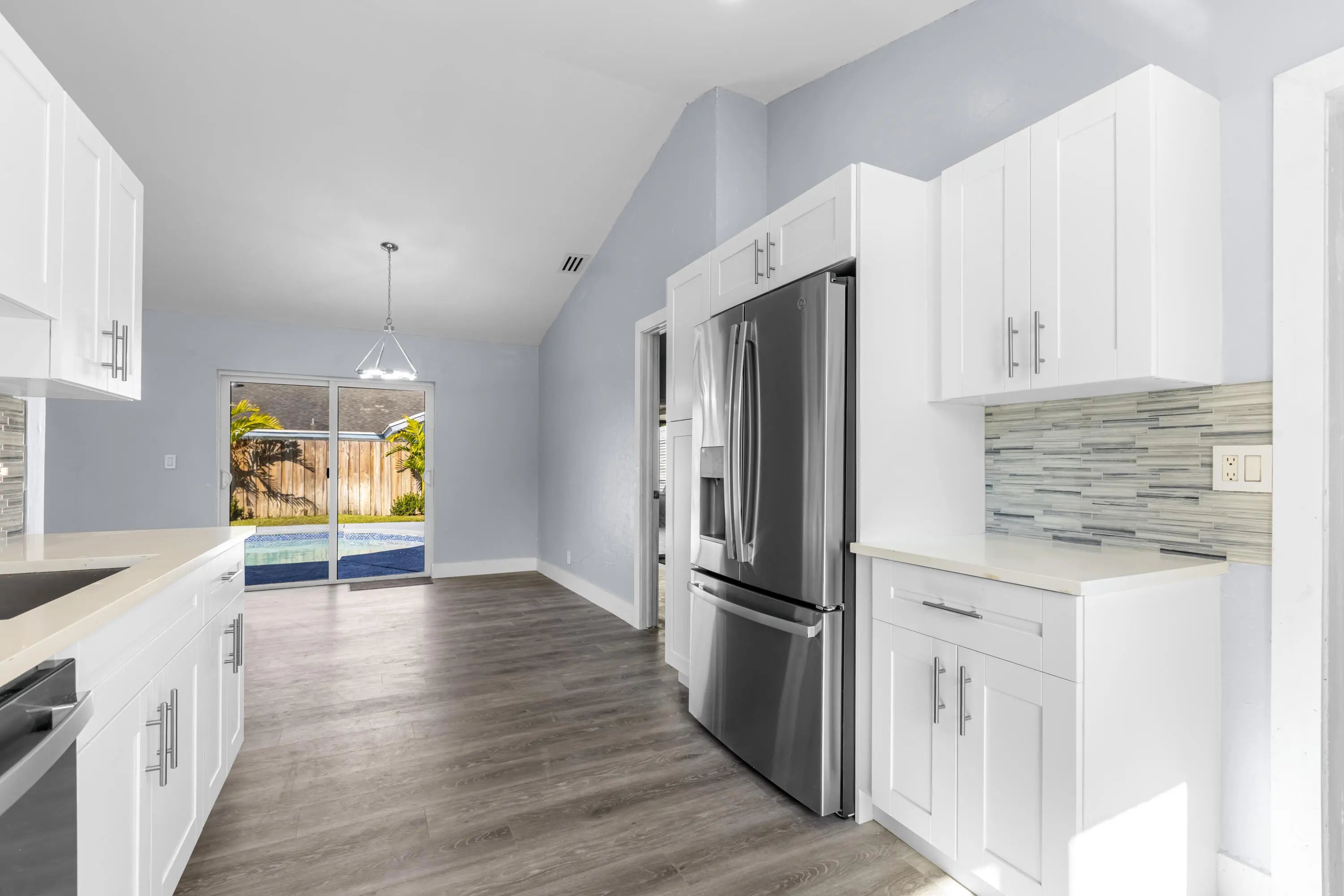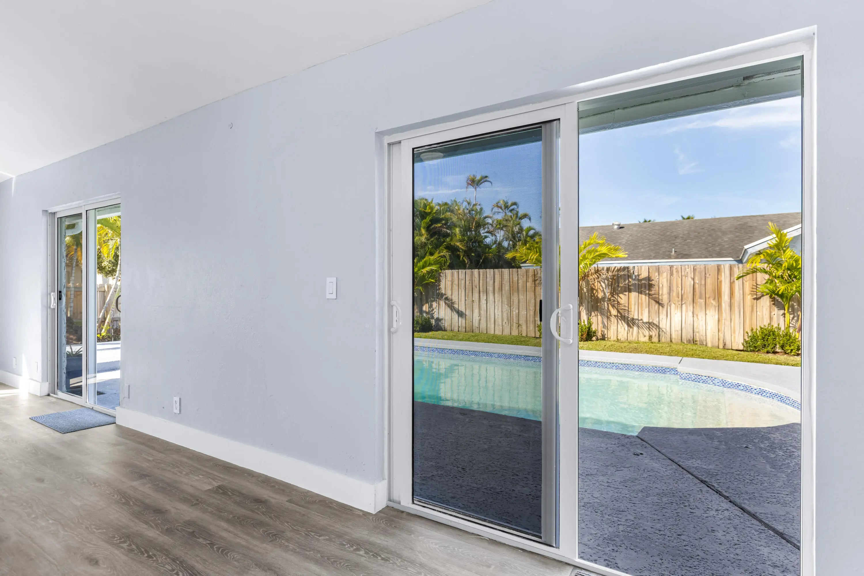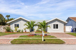 Your dream home is waiting for you in this beautifully upgraded and move-in ready home in an established neighborhood with sidewalks and NO HOA! This open concept 4/2 home offers modern finishes, IMPACT WINDOWS & SLIDING DOORS, NEW ROOF and a large FENCED-IN BACKYARD with a storage shed, pool with a waterfall and hot tub, perfect for entertaining! NEW BATHROOMS & KITCHEN newly updated. This spacious home is equipped with a washer and dryer, updated electric for TANKLESS WATER HEATER and HOT TUB! AC is less than 3 years old. Sprinkler water comes from a well! This corner lot with beautiful landscaping and a circular paver driveway has plenty of room for parking. Located within 30 minutes of the beach and major league sports and lots of restaurants and shopping! Come and see for yourself!!